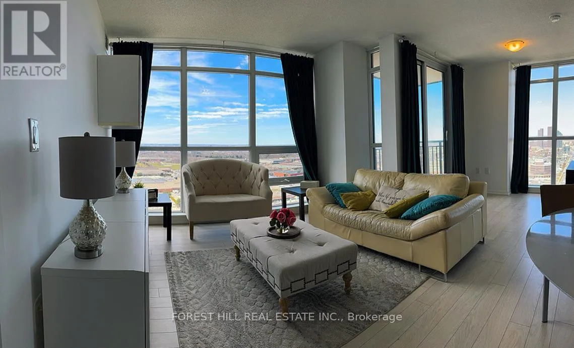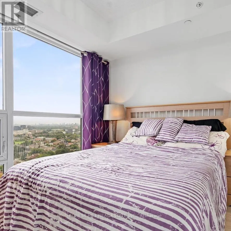 Dufferin And Lawrence This Maranello home in the sky is in the highly sought-after Treviso 2. With 800 sq. ft. of beautifully designed space, boasts impeccable views, two opposite side bedrooms & an additional versatile den for the perfect work space. Two Contemporary 4-Piece Bathrooms Designed with the sleekest finishes for maximum comfort. All comes together with a perfect blend of modern elegance and all the city conveniences from tanset to entertainment. Floor-to-ceiling windows fills this home with natural light, offering panoramic views from every room. The open-concept layout seamlessly connects the living, dining, and kitchen area's with an island ideal for both entertaining and everyday living. Sleek laminate flooring throughout adds a touch of contemporary sophistication to your bright & spacious Living Area. Unwind while soaking in the breathtaking cityscape. Modern Kitchen Featuring designer cabinetry, premium appliances, and ample counter space for all your culinary adventures. Primary Retreat with expansive windows and a large closet. Second Bedroom, Perfect for kids, guests, family, or another stylish home office. Enjoy the added convenience of a dedicated parking spot and a locker for extra storage. This Treviso corner unit has been well cared for and offers an unbeatable combination of style, space, and city views. Whether you're looking for a luxurious home or a prime investment opportunity, this one is a must-see! (id:27476)