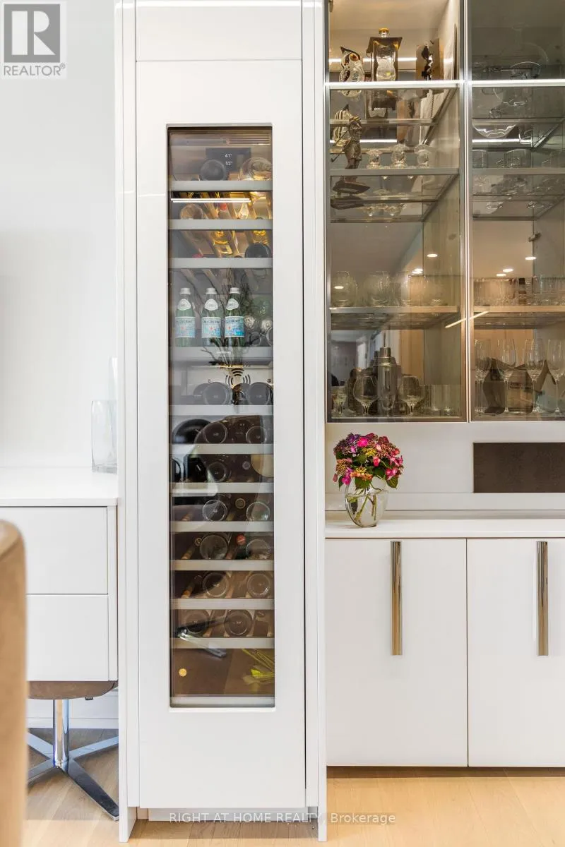 King & Jarvis An Extraordinary Offering at King George Square, Impeccably Renovated Corner Residence Redefines Luxury Urban Living with a Remarkable approx. 1,400 sqft Private Terrace-a Truly Rare feature in the Heart of Downtown Toronto. Designed for those who value Sophistication, Scale, and Seamless Indoor-Outdoor Living, this 2-bedroom, 2-bathroom suite delivers an Unparalleled Lifestyle Experience. The Refined interior Showcases a Thoughtfully Curated Open-Concept Layout, Bathed in Natural Light from its Southeast Exposure. The Bespoke Chef's Kitchen is outfitted with Premium Gaggenau Integrated Appliances including a 24" Gaggenau Wine Fridge, Sleek Custom Cabinetry, and Elegant Finishes, flowing effortlessly into the living and dining spaces-perfect for both Intimate Evenings and Elevated Entertaining. Custom built-ins, including a Stylish Bar and Wine Storage, add a layer of understated Luxury and Functionality. All Designer Bathrooms & Kitchens Imported from Italy. The Primary Bedroom Sanctuary features direct access to the Terrace and a beautifully appointed ensuite, offering a serene retreat above the city. The second bedroom, enhanced with a custom CLEI Rotational Bed, Imported from Italy, provides versatility as a Sophisticated Guest Suite or Executive Home Office. This Exceptional Residence is complemented with 1 underground parking space, a storage locker, along with Exclusive Building Amenities including 24-hr Concierge Service, Fitness Centre, Party & Meeting rooms, and a Rooftop Garden. Perfectly positioned just steps from St. Lawrence Market, the Distillery District, Premier Dining, Transit, and The Waterfront, this is a Rare Opportunity to own a Statement Home offering Privacy, Prestige, and Expansive Outdoor Living in the City's Core. (id:27476)