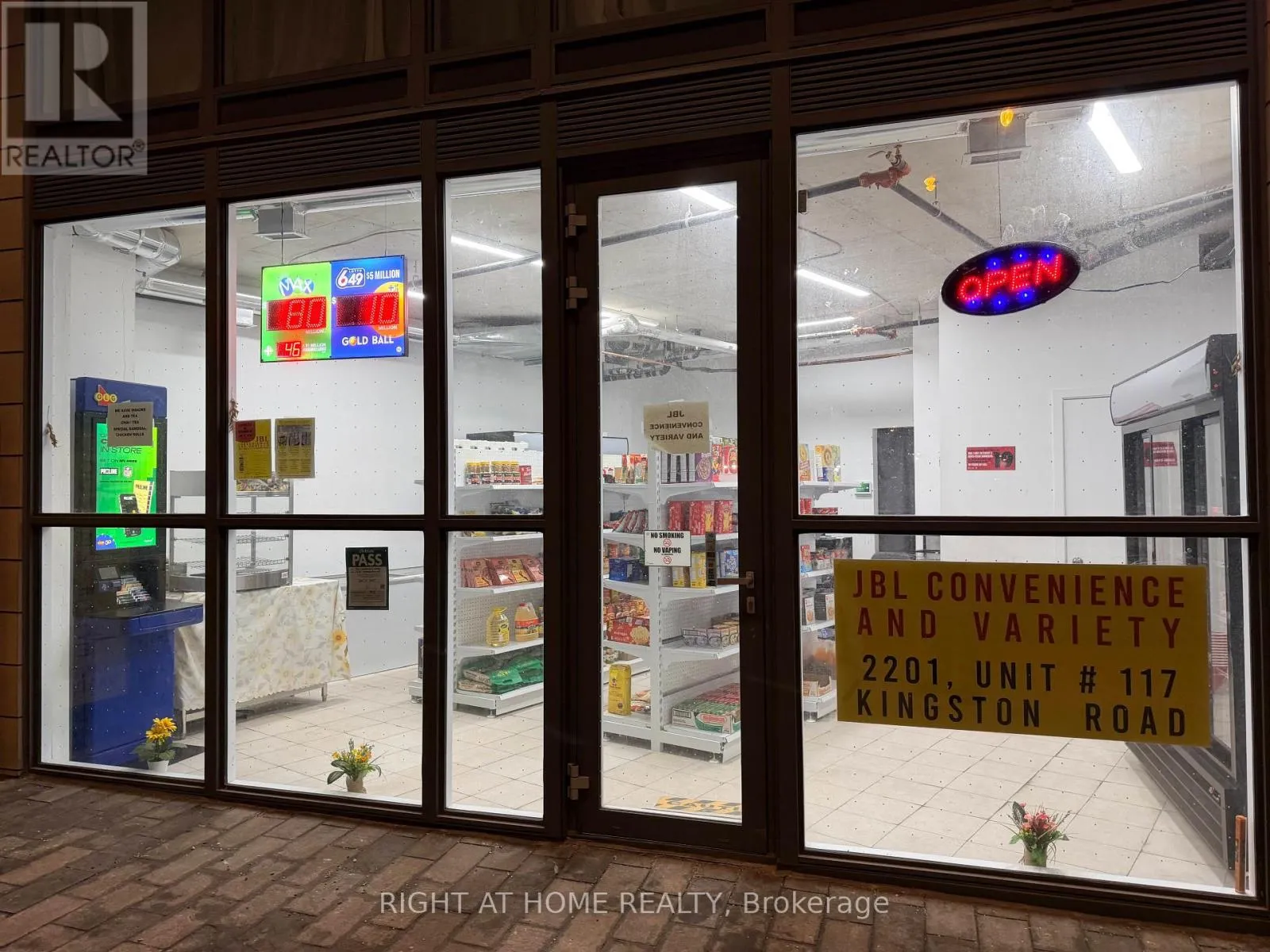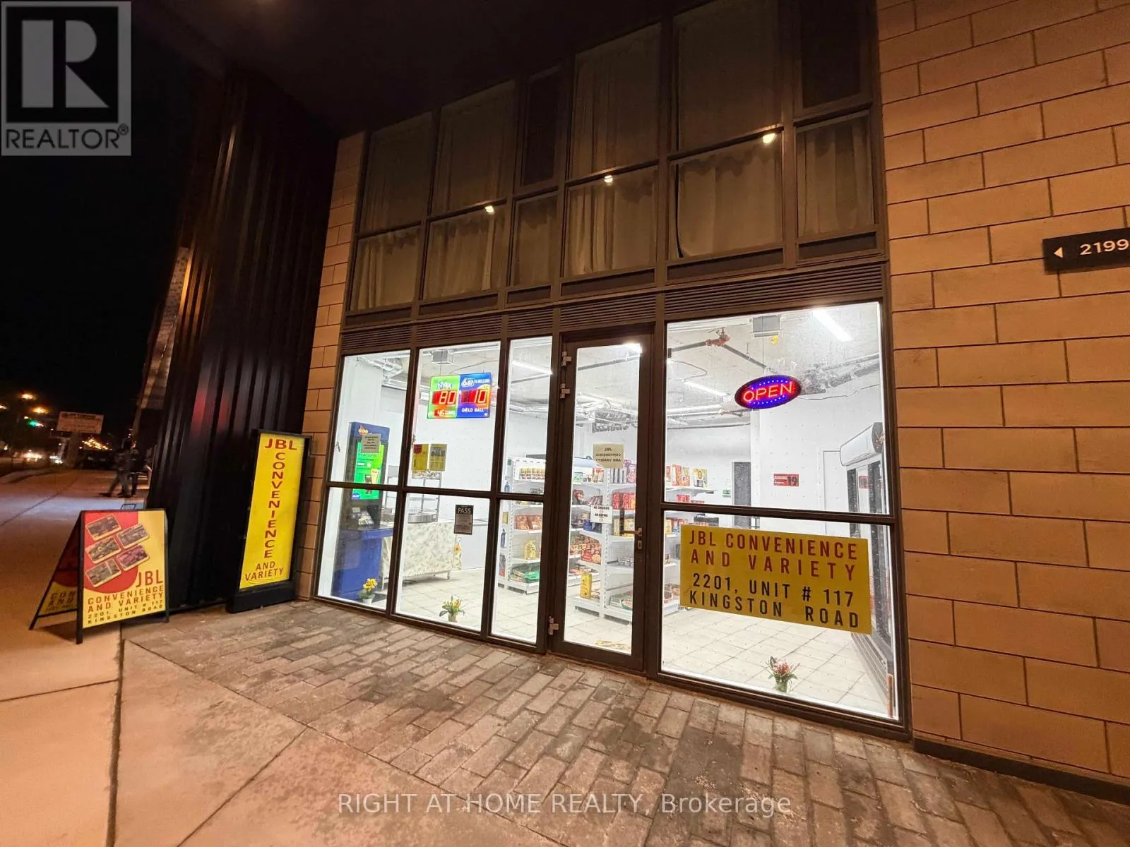 Kingston/Cliffside Rare turnkey business opportunity in a prime Kingston/Cliffside location at 2201 Kingston Rd! High-traffic destination surrounded by 164 residential units in the building and multiple high-rise buildings nearby, ensuring a strong, built-in customer base. Exceptionally well-located near Variety Village and schools with constant foot traffic and outstanding exposure. Fully renovated in 2025, no expenses spared by the current owner. Alcohol license ready, lotto machine in place, and food counter equipped to sell sandwiches and snacks. Current gross sales approx. $25,000 with huge upside potential by extending hours (currently 9 AM-11 PM). Very affordable rent at only $2,950/month (TMI + HST included). Lease includes 2 years remaining plus a 5-year renewal option. All fixtures, equipment, and inventory included-truly turnkey. Zoning allows for a wide variety of uses including retail, restaurant, medical, personal service, educational, and more. Seller relocating, motivated sale. Exceptional value in a sought-after area. Serious buyers only. (id:27476)