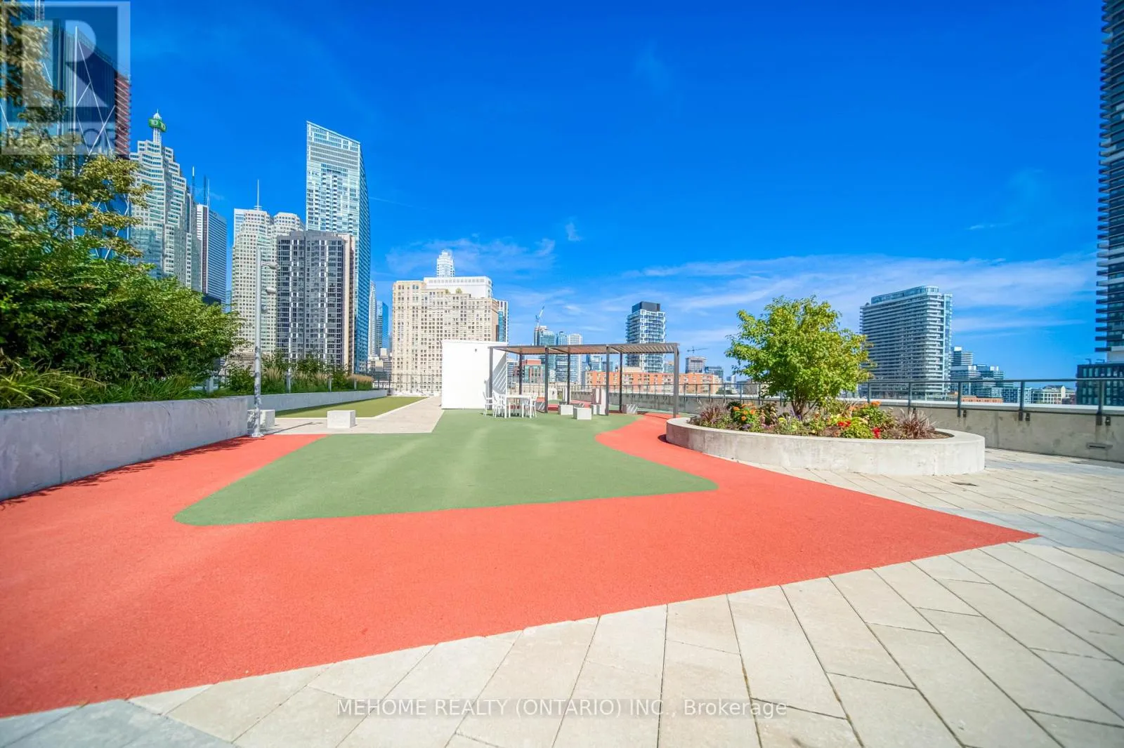 Yonge St. and Lakeshore Blvd. Experience luxury waterfront living at The Prestige at Pinnacle One Yonge with this spacious 646 sq. ft. south-facing 1+1 bedroom suite featuring breathtaking lake and city views through floor-to-ceiling windows. Designed with both style and function, the open-concept kitchen offers quartz countertops, a modern backsplash, stainless steel appliances, and integrated fridge and dishwasher, while sleek laminate flooring flows throughout. The large den provides versatile use as a home office or guest space, and the extra-deep 137 sq. ft. balcony extends your living space outdoors. Perfectly situated in Toronto's vibrant South Core and Harbourfront district, you are steps from Sugar Beach, Union Station, Scotiabank Arena, Rogers Centre, the CN Tower, and the Financial District, with future direct PATH access and easy connectivity to the Gardiner Expressway. Residents enjoy world-class amenities including an indoor pool, double gym, outdoor track, dog park, and community lounge, offering the ideal blend of urban convenience and waterfront tranquility. (id:27476)