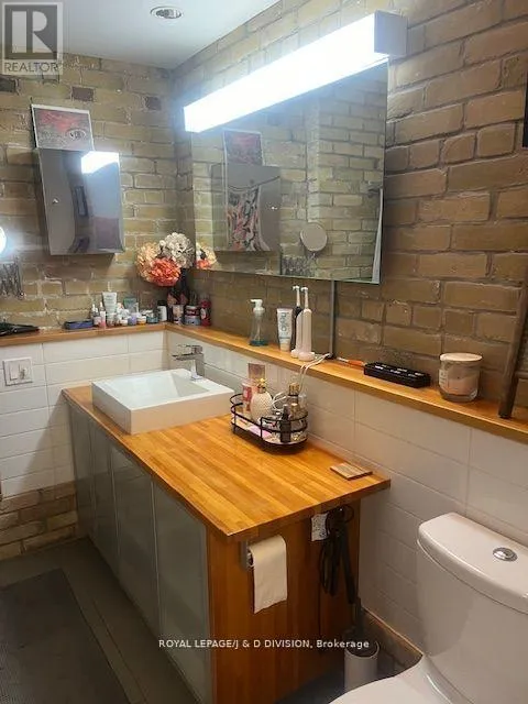 Queen St E & Woodfield Prime Leslieville Location. Luxury 1000 Plus living - modern one bedroom with open concept living. Soaring 8 Foot ceiling with exposed brick. Polished concrete floor and porcelain tile. Unit has its own heat/AC controls. Back Up sump pump protection. Walk out to private deck. Radiant Floors. Ductless AC unit. Ensuite Laundry. Stainless Steel Appliances. Extensive Sound Proofing between floors. Large Exterior Storage Locker with gated parking spot (1 vehicle). Steps to Queen Streetcar, TTC and Waterfront. (id:27476)