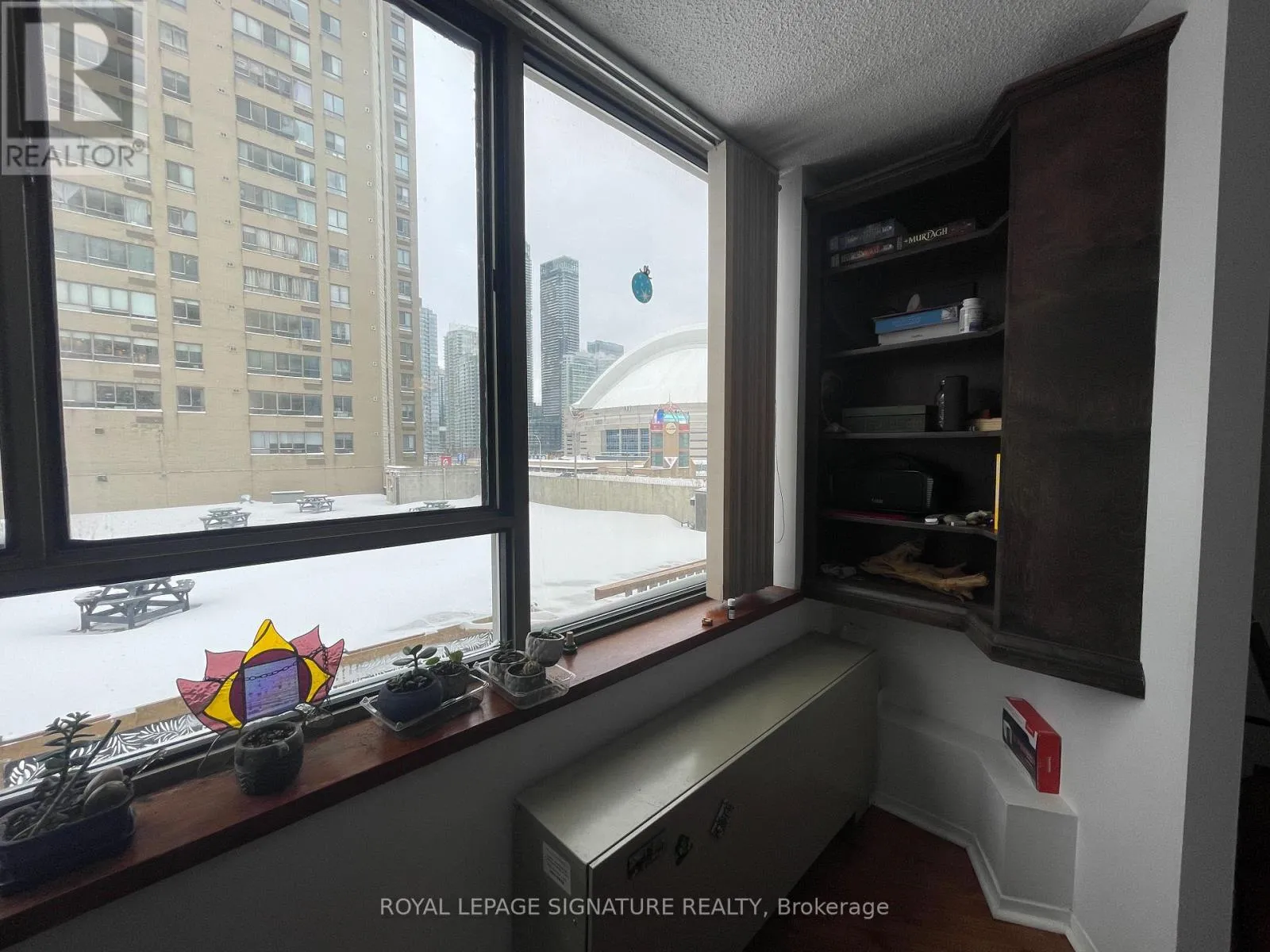 Queen Quay W/Rees St Luxury on the Waterfront! This fabulous west-facing 1+1 bedroom suite is exceptionally spacious, offering beautiful water views and an abundance of natural light. The updated kitchen features newer stainless steel appliances, a sleek cooktop, ample cabinetry, and a stylish glass tile backsplash. The open-concept living and dining area is impressively sized-no "mini" furniture required-making it ideal for both everyday living and entertaining. The versatile den, which doubles as a solarium, provides the perfect space for a home office, guest area, or cozy retreat. Wide-plank flooring flows throughout the suite, while the generous primary bedroom features an abundance of built-in closet space. Solid construction and excellent noise-proofing ensure a quiet, comfortable living experience. Enjoy exceptional value with Bell high-speed internet included, plus a large extra locker conveniently located on the 3rd level, and bike storage for added convenience. Outstanding building amenities include 24-hour concierge, a rooftop deck and garden with BBQs, gym, and sauna. Located in the highly sought-after Harbourfront neighbourhood, this home perfectly blends vibrant urban living with lakeside leisure. The Martin Goodman Trail is right across the street, with steps to the CN Tower, Harbourfront, Waterfront Trail, Toronto Island, Rogers Centre, restaurants, and entertainment. Easy access to Union Station, TTC, and the Gardiner Expressway completes this exceptional offering. Rental parking is easy to secure in the building! (id:27476)
