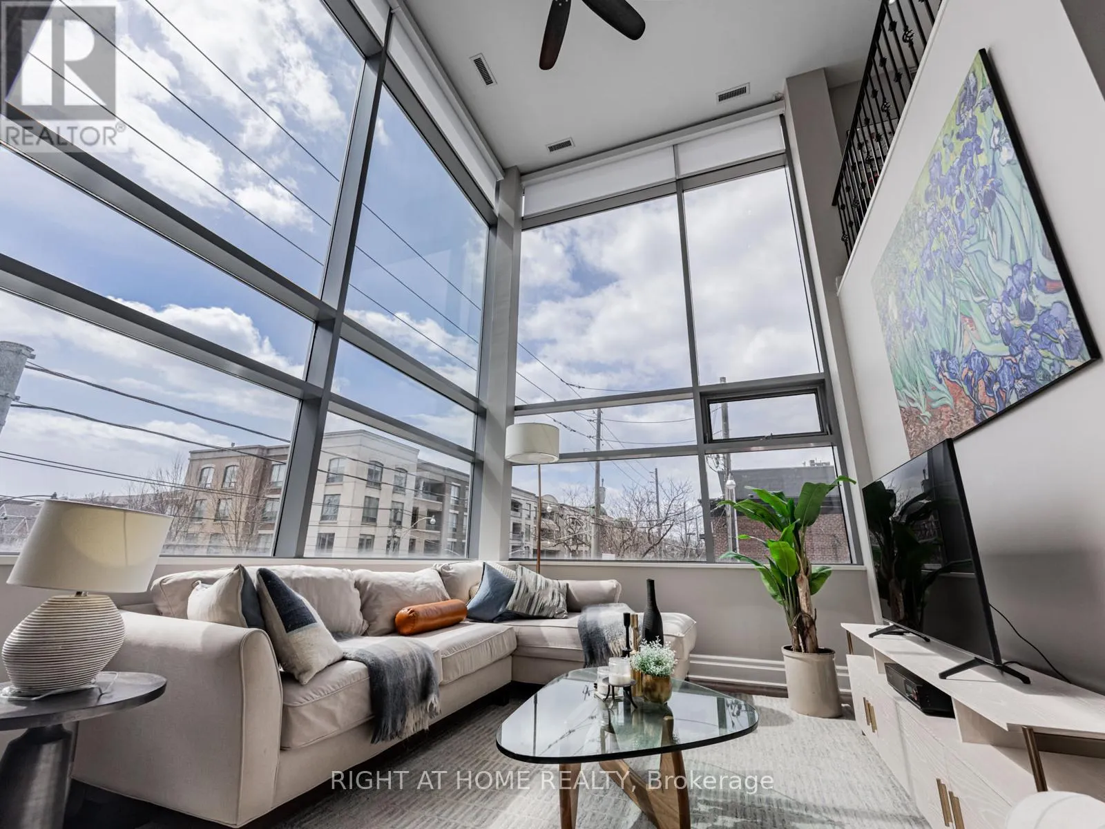 Queen & Woodbine Welcome to Suite 204 - A One-Of-A-Kind Luxury Corner Suite That Feels Like Living in a House! Located in Toronto's Fabulous Beach Neighbourhood, this 2 Floor Suite, Boasts ~ 1800 Sq.Ft. + 200 Sq. Ft. of Balconies, South-West Views, 9 Ft Smooth Ceilings, with an 18Ft. Atrium in the Living Room and an 18 Ft. High, Marble Fireplace Wall. This Stunning Home is Move-In Ready & Outfitted with Technology, Luxury Miele Appliances, a Miele Gas Cooktop, Electric Blinds, a Wine Fridge, 2 Balconies with a BBQ Hookup with Water for Gardening and Lighting for Day & Night Enjoyment. For ultimate privacy, the Bedrooms are Separated with a spacious bedroom on the main floor and a Primary Suite on the 2nd Level with a 5 piece Ensuite, Juliette Balcony overlooking the Atrium and a Full Walk-Out Balcony. The 2nd Floor also includes a Spacious Family Room/Den and a Laundry Room. Walk Everywhere - Bruno's Grocery Fine Foods, The Beach, Restaurants, Nature, Coffee Shops, Galleries + More! TTC transit is at your doorstep. This is a Must-See Suite with Parking & Locker Included! (id:27476)