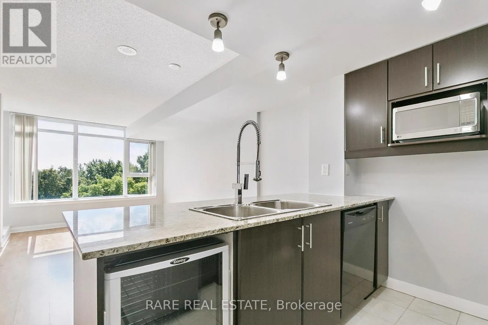 Cross Streets: 401& McCowan. ** Directions: McCowan &. Welcome to this impressive 1 bed + den condo, just steps from Scarborough Town Centre, subway, and GO Station. Enjoy unobstructed south-facing views in an unbeatable location. The kitchen features upgraded cabinetry, a built-in microwave shelf, New fridge, wine fridge & breakfast bar! The sizeable bedroom offers a large closet & beautiful south views , while the versatile den can easily serve as a second bedroom or office. This well-managed building provides top-notch amenities, including 24/7 concierge and security, a beautiful private terrace with BBQs, an indoor pool, party room, games room, theatre and so much more!!! Perfect for first-time buyers, downsizers, or investors seeking convenience and comfort---Definitely a must see...!! (id:27476)