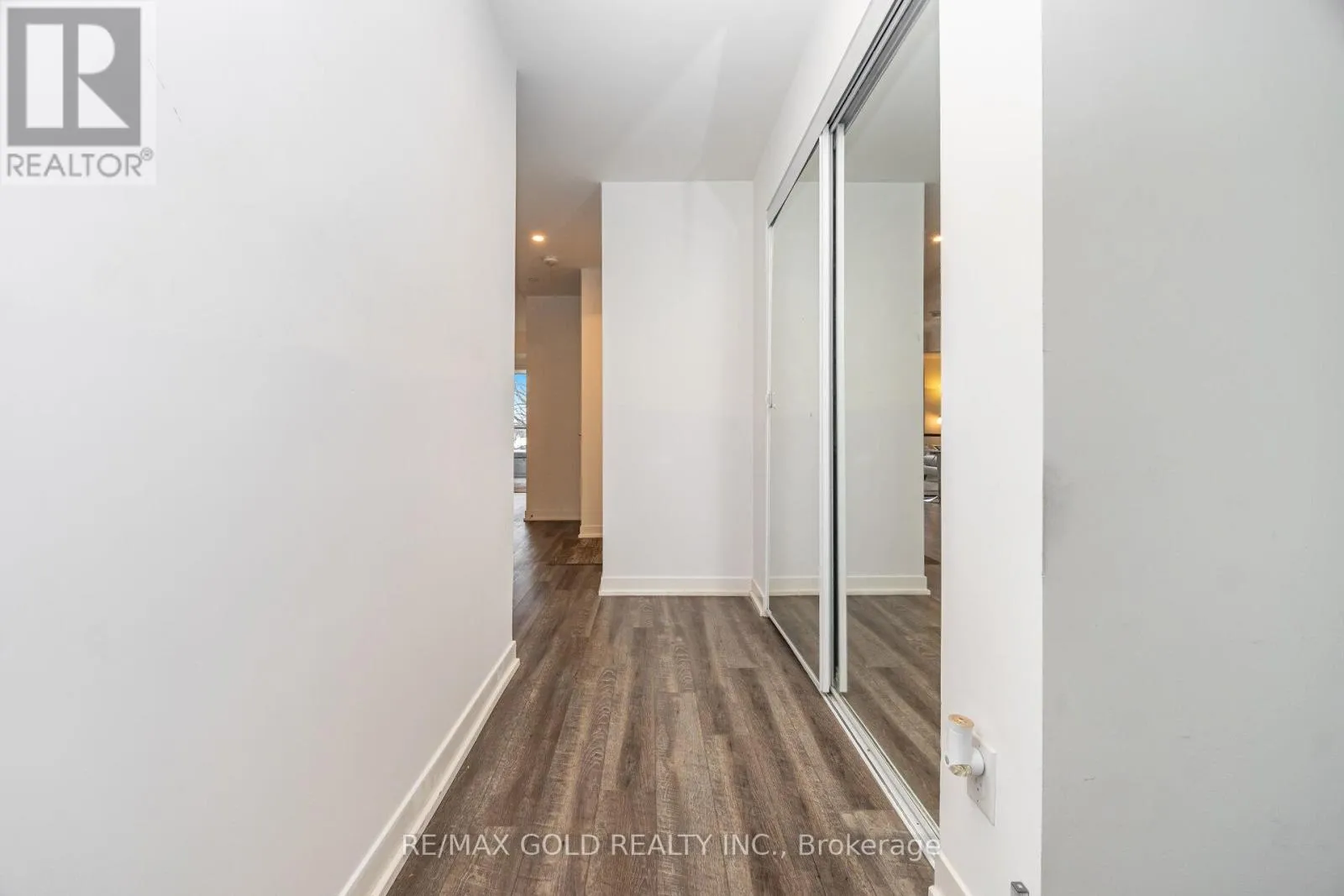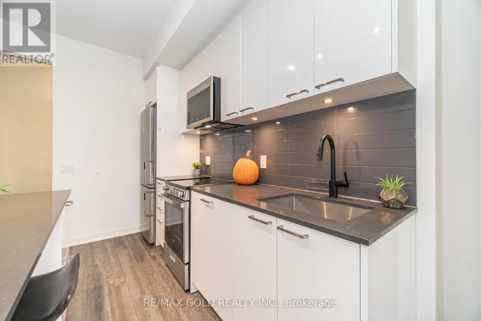 St Clair W & Old Weston Rd This cozy 2-bedroom 2-bathroom corner suite at Reunion Crossing Condos has an open concept kitchen + living room with natural light. The suite is maximally quiet and private. Its Large 90 Sq Ft balcony is fully enclosed & not overlooked from any side. The windows from floor to ceiling face the north and reveal a pleasant view which will not be disturbed in the future. The kitchen has enough storage cabinets for people who cook. All fixtures and fittings are from the upgraded line. Stainless steel makes the appliances easy to clean and last longer. The quartz countertops are more durable than standard ones. The subway tile backsplash will last and be easy to clean. The island counter with a breakfast bar is multifunctional. The master bedroom has a closet with shelves, hanging rails, and a mirror. The second bedroom can serve many purposes with its closet and wall that allows light in. The suite has a stacked washer + dryer and 1 storage locker on the parking level. The building has a bicycle storage room, an urban room for many purposes, a parcel room, a games area in the lobby, a modern gym, a party room, a ground-floor patio with a BBQ, a pet station, and a rooftop terrace with a BBQ and space for gardening. All this is a fantastic deal with Internet from Rogers included in the maintenance fees. The 512 St Clair streetcar stops outside the building. TTC buses connect the building to Subway Line 2, Bloor GO station Eglinton LRT in about 10 minutes. The Stockyards neighborhood offers cafés, restaurants, banks, shopping streets, a public library & parks. This totally private suite at Reunion Crossing Condos will be a great asset to anyone who buys it. Amenities: Modern fitness centre, Party room with kitchen/lounge, Games area, Ground-floor outdoor patio with BBQ, Rooftop terrace with BBQ + community gardening space, splash pad, bicycle storage room, Parcel delivery room, Urban multi-purpose room, Pet wash station, Secure storage lockers, Rogers high-speed internet (id:27476)