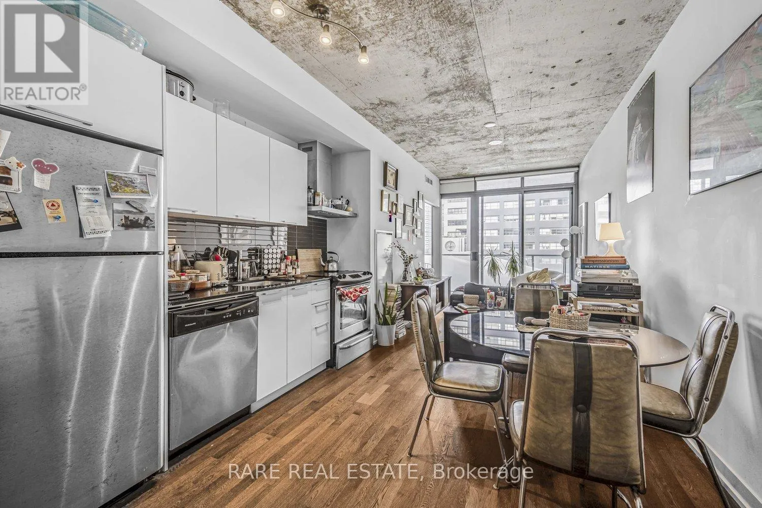 Cross Streets: King St W & Bathurst. ** Directions: North side of King East of Bathurst. Discover urban living at its best in this stylish 1-bedroom condo at the sought-after 650 King West residences. Perfectly located at King & Bathurst, this modern suite offers an unbeatable balance of comfort, efficiency, and vibrant city life.The open-concept layout maximizes every inch of space, featuring floor-to-ceiling windows that flood the home with natural light and create a bright, inviting atmosphere. The sleek kitchen is equipped with modern cabinetry, integrated appliances, and ample counter space ideal for cooking or entertaining. The living area flows seamlessly to a private balcony, offering a perfect spot to relax or take in the energy of King West.The bedroom is well-designed with room for a queen bed and storage, while the spa-inspired bathroom boasts premium finishes. Additional features include in-suite laundry, a heat pump for efficient heating and cooling, and thoughtful design details that elevate the living experience.Low monthly condo fees cover essentials, keeping costs manageable, and property taxes remain very reasonable. Residents of 650 King enjoy the convenience of a boutique building with secure entry, underground parking options, and excellent noise insulation thanks to its concrete construction.Step outside and you're in the heart of one of Torontos most dynamic neighbourhoods surrounded by trendy restaurants, coffee shops, boutiques, and nightlife. With a near-perfect Walk Score and TTC at your doorstep, commuting and city exploring are effortless.Whether you're a first-time buyer, investor, or looking for a pied-Ã -terre in downtown Toronto, this suite offers incredible value in one of the citys most desirable areas. (id:27476)