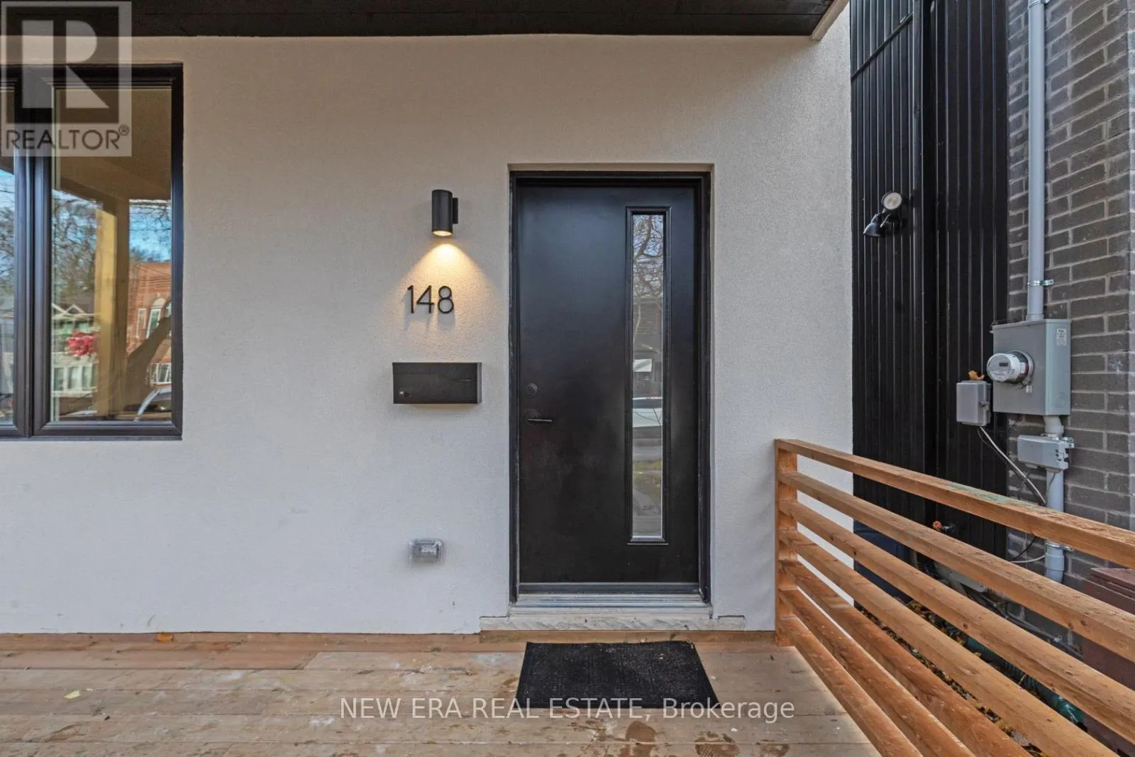 Rhodes/Dundas Welcome to a Fully Renovated Leslieville Gem! Offering a total of ~2,460 sq ft of living space including the finished basement, this beautifully updated 3+1 bedroom detached home provides spacious, modern, and comfortable living in one of Toronto's most desirable neighbourhoods. Featuring 9 ft ceilings, the home offers bright principal rooms, quality finishes, and a versatile sitting room that can also serve as an additional bedroom. The renovated basement with a separate entrance is perfect for in-laws, guests, or rental potential. You'll also enjoy ample storage throughout, with all permits fully closed and available for review for complete peace of mind. The charming screened porch offers bonus living space and can be converted into a heated four-season room or kept as-is. Situated on a 25 x 110 ft lot with 2 private parking spots at the rear, this home places you in the heart of Leslieville-steps to cafés, boutique shops, parks, transit, and top-rated schools including George Ãtienne Cartier French School, Roden Alternative Public School, and Monarch Park CI. Minutes to downtown and major expressways. (id:27476)