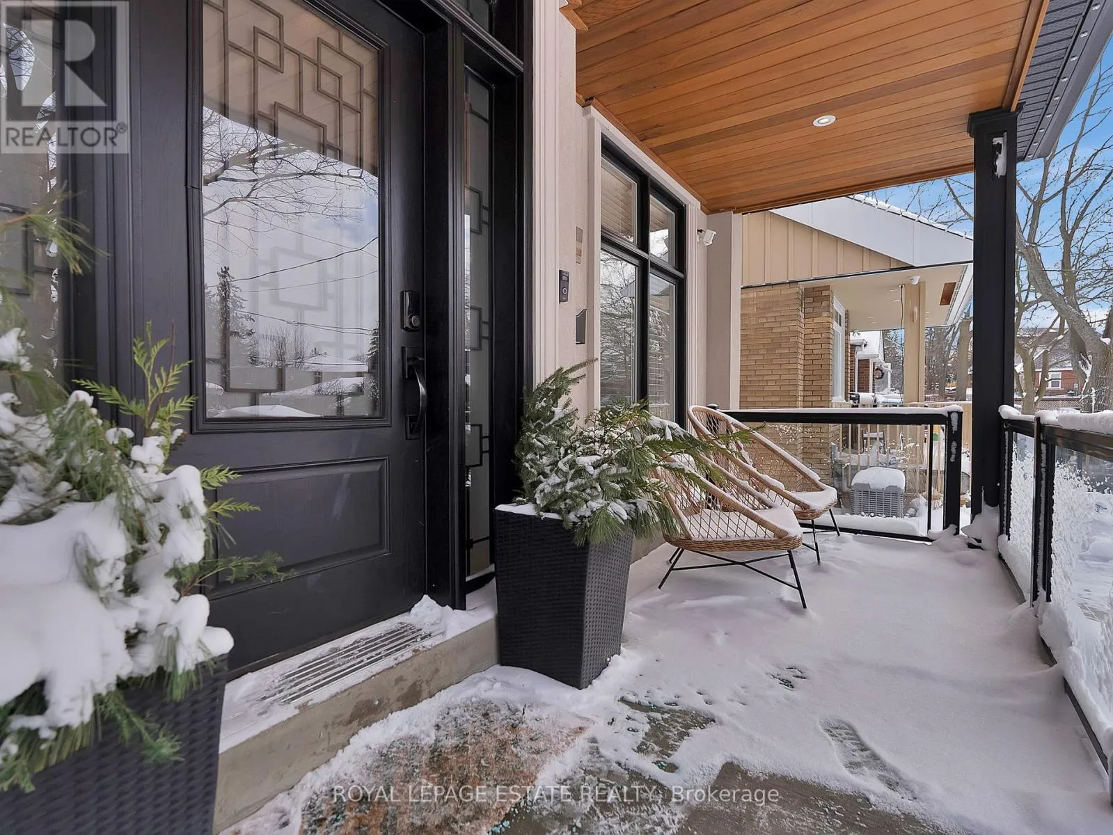 Cross Streets: Warden/Kingston. ** Directions: Main entrance access. This impeccably renovated 4-bedroom, 5-bathroom family home is an entertainer's dream, set on a gorgeous tree-lined street and ideally located near top-rated schools, parks, cafés, gyms, and transit, and finished top to bottom with high-end craftsmanship. Featuring two floors of custom-finished hardwood, high ceilings, wainscoting, and plaster crown moulding, the home offers a chef's kitchen with Caesarstone countertops and backsplash, newer fridge, dishwasher, and microwave, and a walk-out from the family room to a composite deck with lifetime warranty. The thoughtful layout includes second-floor laundry, two skylights, one fireplace with a second roughed-in in the basement, and custom built-ins in the primary bedroom and ensuite, guest bedroom, and living area. Recent upgrades include a renovated primary bathroom (2023), renovated main-floor powder room, new washer and dryer (2024), new AC unit (2024), making this move-in-ready home the perfect blend of luxury, comfort, and family living. (id:27476)