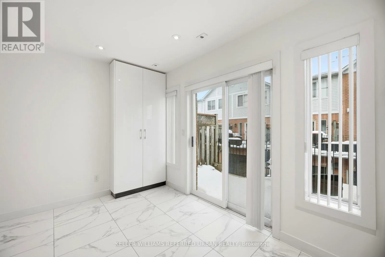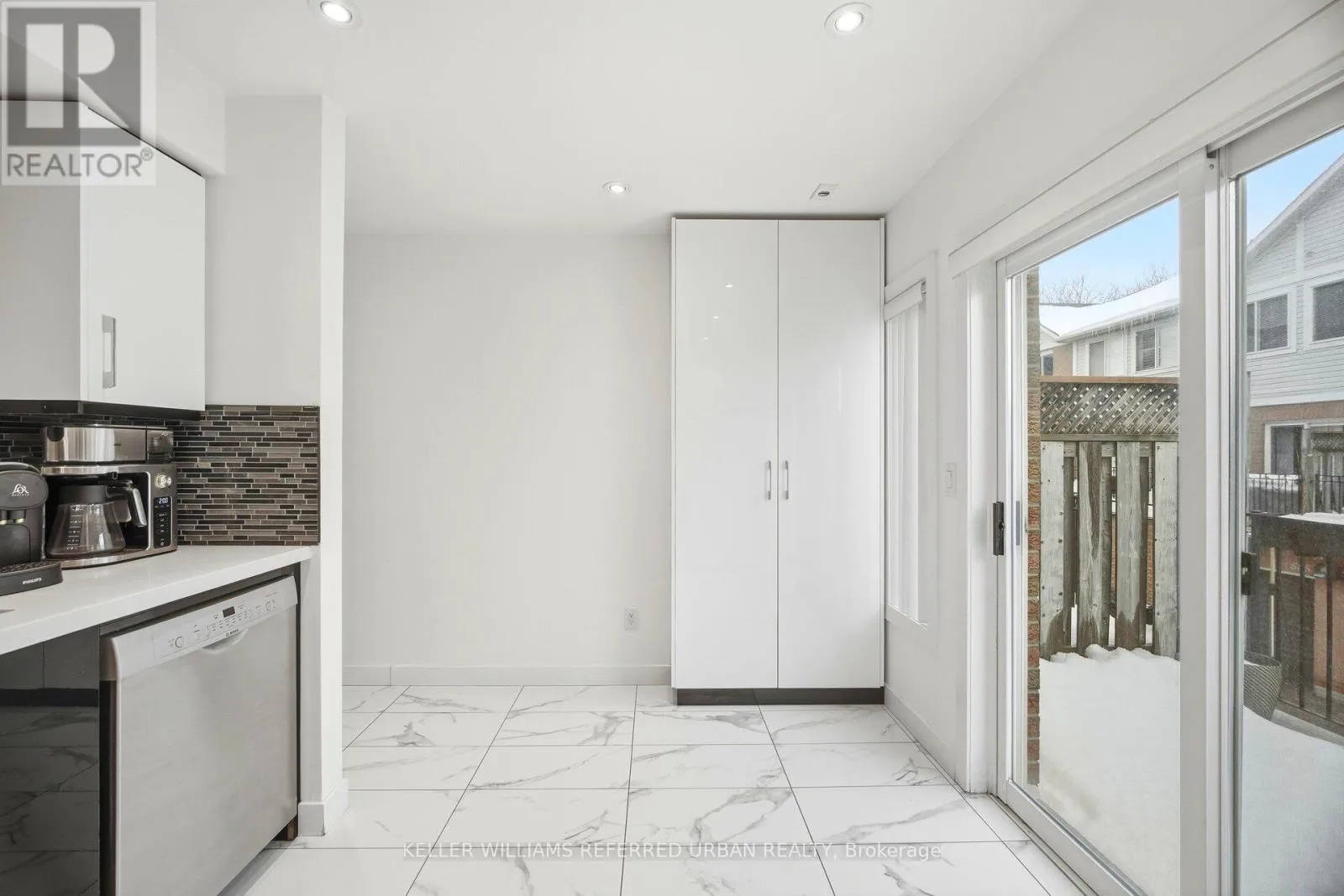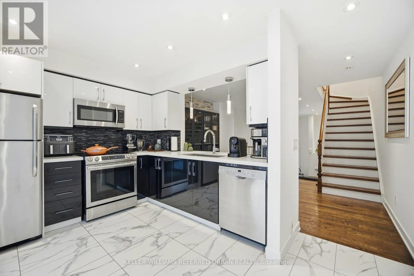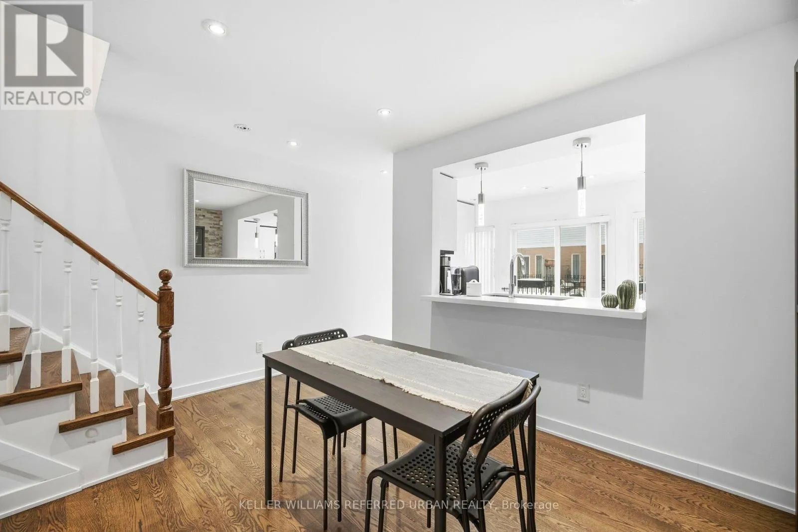 Birchmount & Ellesmere Spacious, updated two-storey townhome offering a practical layout with a walk-out basement and clean, modern finishes throughout. The main level features an oak staircase, engineered hardwood flooring, and cathedral ceilings. The kitchen is sleek and functional, with quartz countertops, a contemporary backsplash, and a dedicated breakfast area that works well for everyday living. Upstairs, the primary includes his-and-hers closets and a 4-piece ensuite, offering plenty of storage and privacy. Additional highlights include convenient direct access to the garage from inside the home and ample storage throughout. Situated within a secure, well-managed community offering 24-hour gated security and concierge services, this home is ideally located just steps to TTC transit, shopping, dining, and everyday conveniences-an exceptional opportunity for turnkey living in Scarborough. (id:27476)