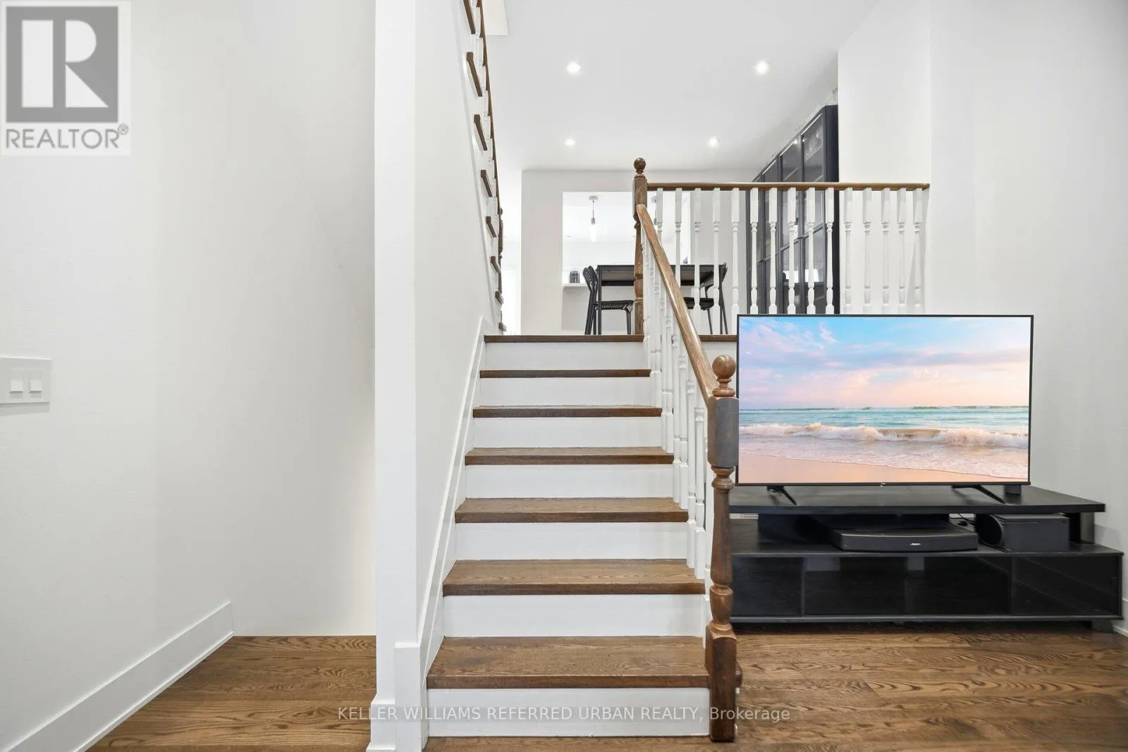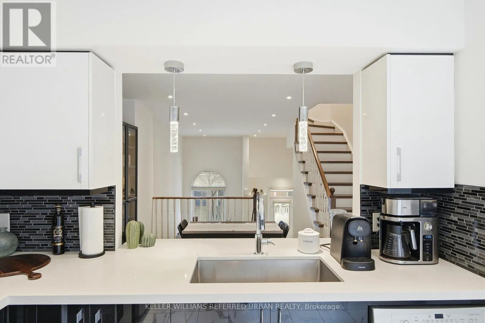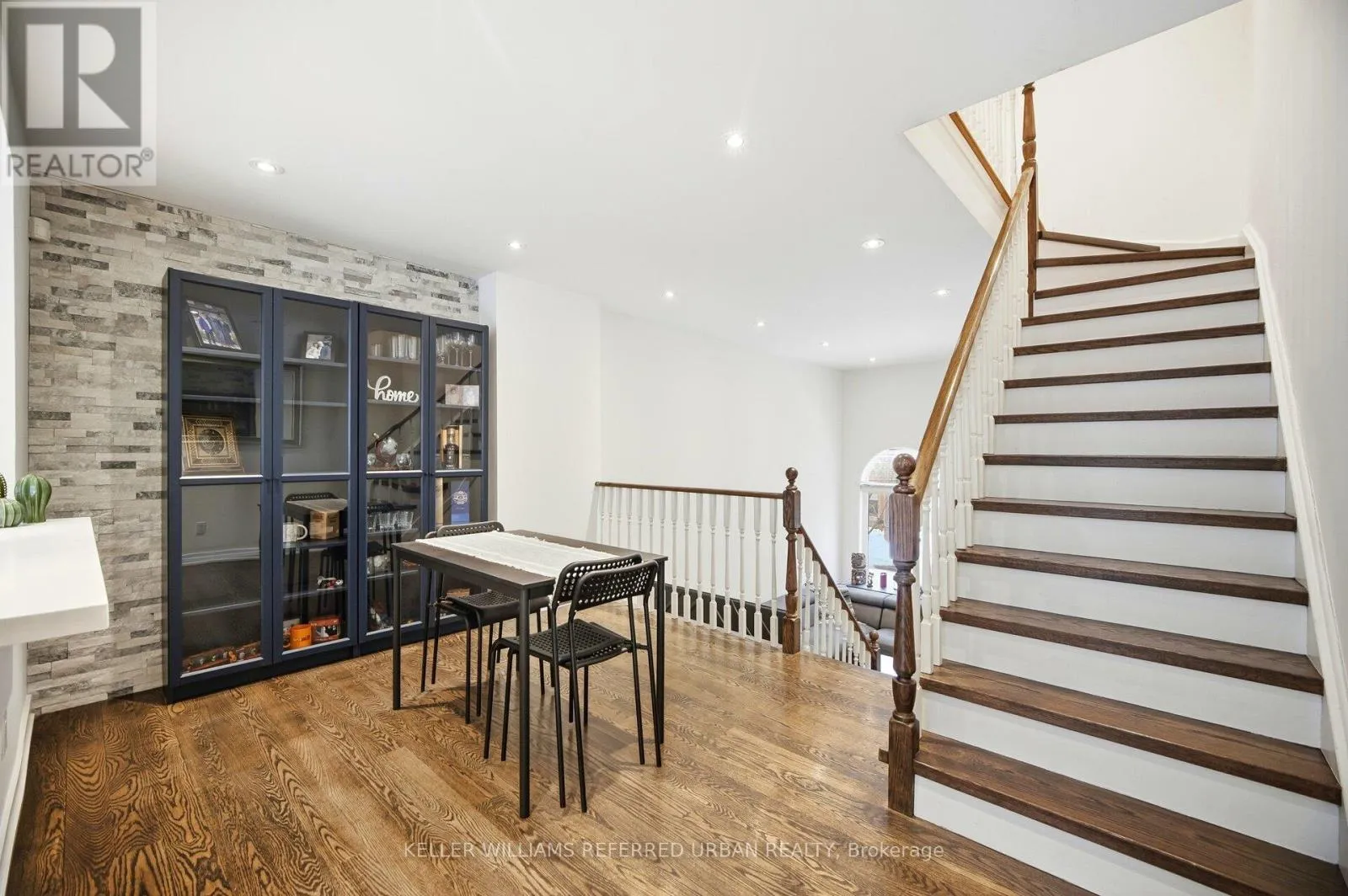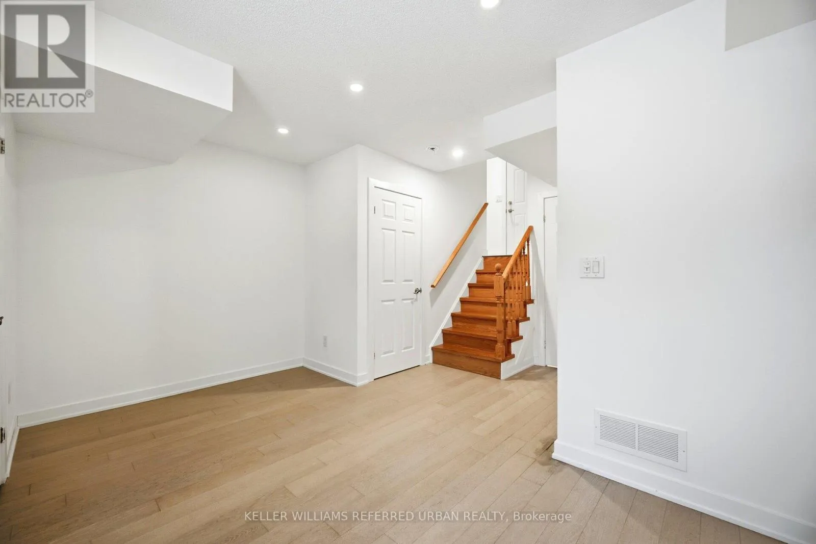 Birchmount & Ellesmere Spacious, updated two-storey townhome offering a practical layout with a walk-out basement and clean, modern finishes throughout. The main level features an oak staircase, engineered hardwood flooring, and cathedral ceilings. The kitchen is sleek and functional, with quartz countertops, a contemporary backsplash, and a dedicated breakfast area that works well for everyday living. Upstairs, the primary includes his-and-hers closets and a 4-piece ensuite, offering plenty of storage and privacy. Additional highlights include convenient direct access to the garage from inside the home and ample storage throughout. Situated within a secure, well-managed community offering 24-hour gated security and concierge services, this home is ideally located just steps to TTC transit, shopping, dining, and everyday conveniences-an exceptional opportunity for turnkey living in Scarborough. (id:27476)
