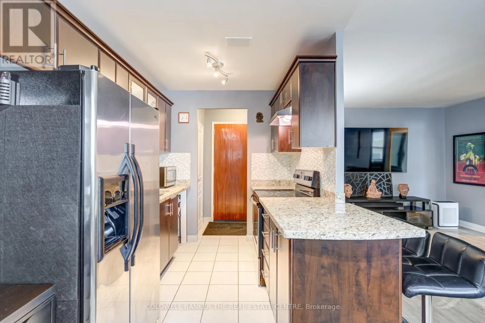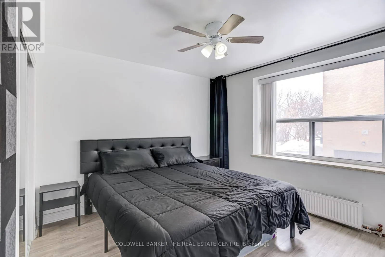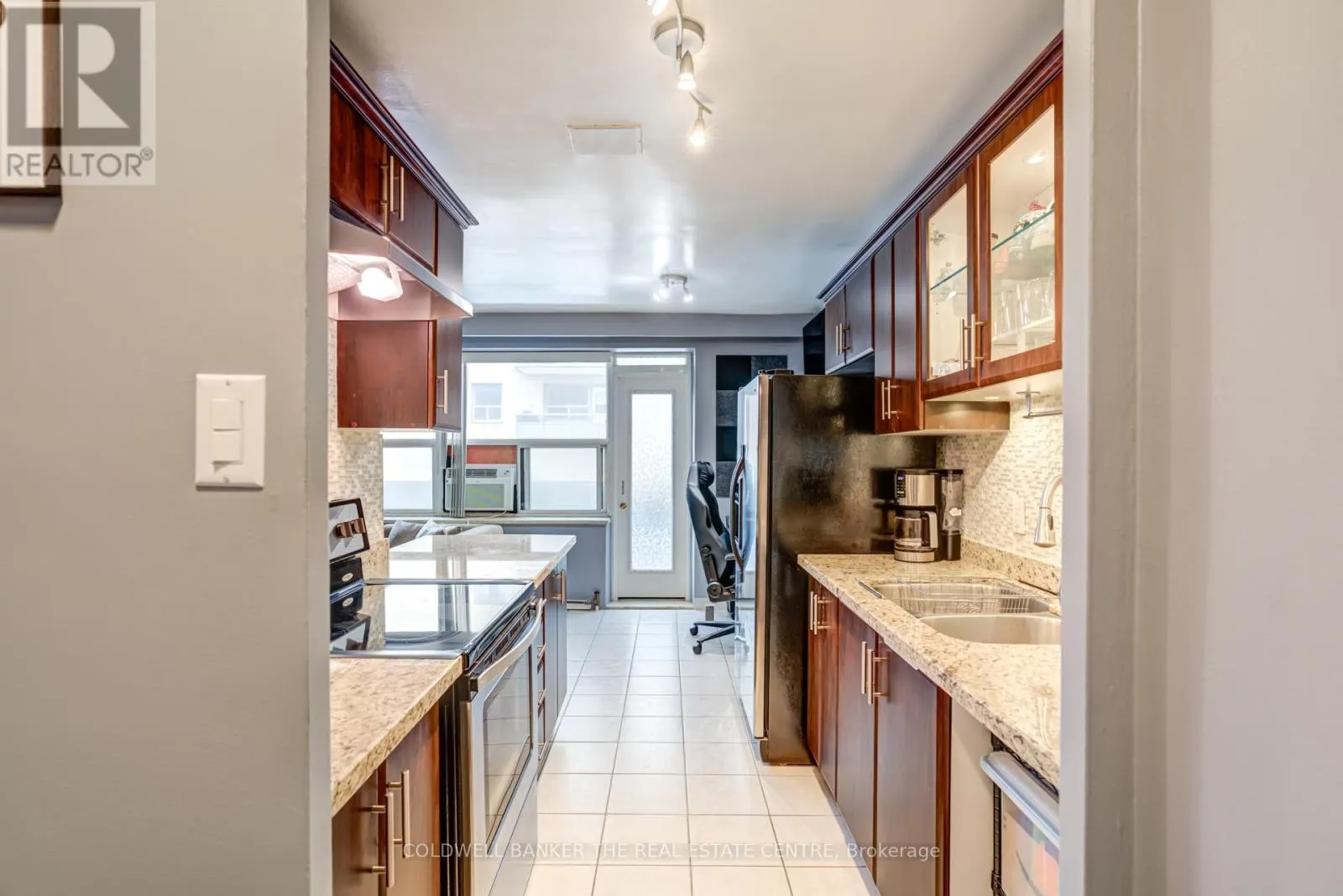 Cross Streets: Keele & Gulliver Rd. ** Directions: Between Lawrence & Eglinton, West of Keele. Welcome to the Park View Towers at 50 Gulliver! Fully renovated, spacious 715sqft 1-bedroom unit near the highly sought-after Eglinton West corridor! Move-in-ready unit features modern finishes throughout: granite countertops, ceramic backsplash, rough-in for dishwasher ready to go, newer laminate floors (no carpet!), smooth ceilings throughout and a beautifully updated bathroom to modern standards. Original dining area has been smartly converted into a den/office - perfect for working from home, studying, or simply use as dining space. Enjoy the convenience of in-suite laundry and the bonus of two parking spots (one garage spot with garage door opener + one surface spot), plus additional storage in garage for seasonal items like winter tires. Large (19'05"x4'07") East-facing balcony, great for entertaining. Spacious principal bedroom accommodates King size bed with side tables, features double mirrored closet, large window and blackout curtains. Located on easy-to-access second floor (no elevator needed). Building offers maximum safety with 24-hour surveillance. Additional coin laundry room on main floor. Maintenance fees include heat & water. TTC accessibility at your doorstep, close to major highways, shops, parks, and schools - everything you need, outside your door. Affordable, stylish, and turn-key - a perfect fit for first-time buyers, down-sizers, or savvy investors. (id:27476)