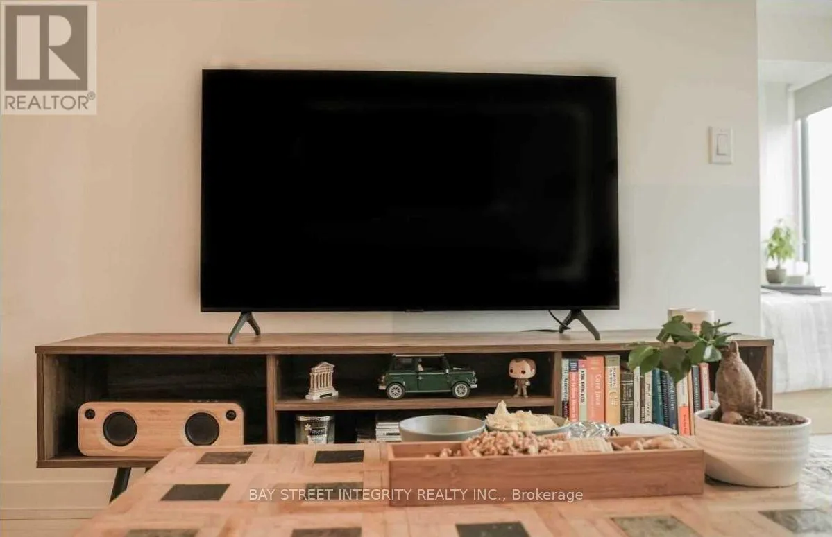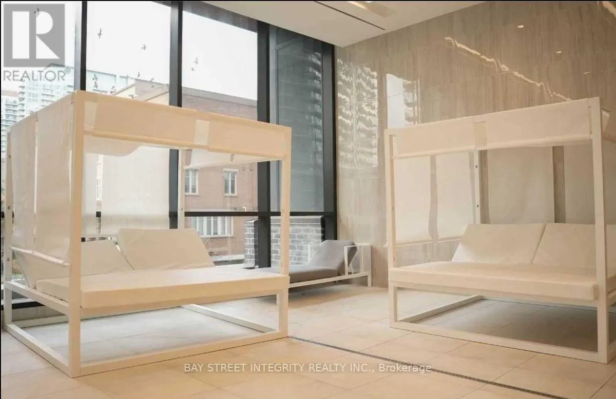 Cross Streets: West Liberty / Strachan. ** Directions: East. Welcome to Liberty Village! Bright one bed + large den (size 9'7"*8'3". can be 2nd bedroom with sliding door) and 2 Full Bathrooms,the open concept living& dining walks out to the balcony featuring direct views of spectacular lakefront, CN Tower & toronto city views. Large floor to ceiling windows. Amazing amenities including 5 star european-style 3000 Sf Spa, indoor hold/cold plunge pools, steam, private massage rooms, 5,000 Sf. fitness/200 m open-air jogging track outdoor with city views, outdoor yoga space, spin studio, free weights, 24-7 concierge & security and more! trendy shops & restaurants at every corner, Gardiner, Exhibition, convenient access to TTC and steps away from the lake.Don't miss your chance to experience it. (id:27476)