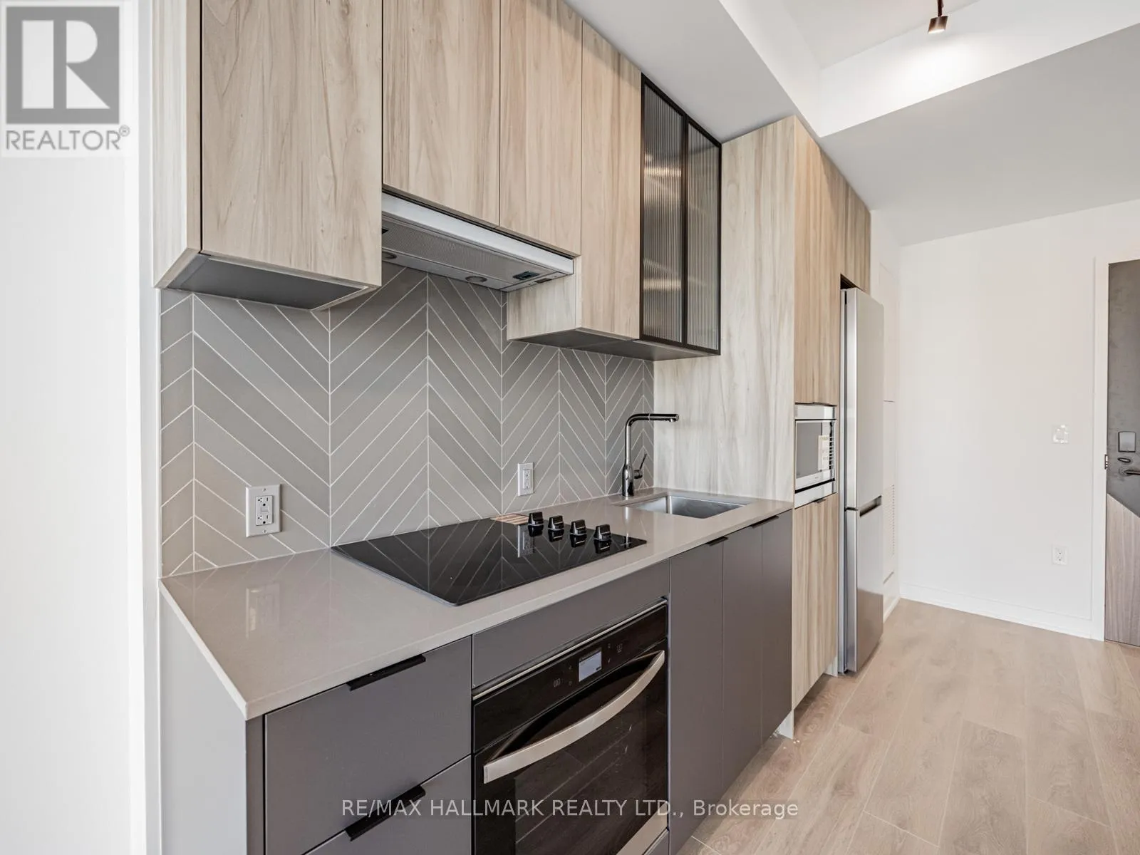 The Queensway and Islington Bright, modern, and never lived in - this brand-new 1-bedroom condo featuring a same-floor storage locker offers stylish, low-maintenance living in a growing west-end community. This north-facing suite showcases 9-ft ceilings, large windows, and a smart open-concept layout with wide-plank laminate flooring throughout. The contemporary kitchen is finished with quartz countertops, a designer backsplash, stainless steel appliances, and a large island with additional storage. Step out to a spacious balcony - perfect for relaxing or entertaining. Enjoy the added convenience of ensuite laundry, built-in blinds, and functional modern finishes. Built by RioCan Living, this newly completed building offers premium amenities including a full fitness centre, yoga studio, co-working lounge, party room, rooftop terrace with BBQs, pet wash station, and 24-hour concierge. Ideally located steps from Costco, No Frills, Cineplex, restaurants, cafés, and TTC, with quick access to Sherway Gardens, Humber College, the Gardiner, and Hwy 427. A great opportunity to live in a connected, modern neighbourhood. Immediate occupancy available. (id:27476)