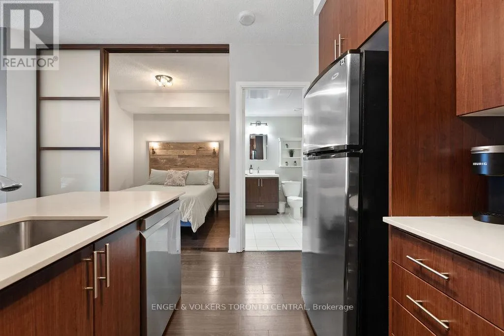 Cross Streets: Front Street West & Portland Street. ** Directions: East along Front Street West from Bathurst Street. The Rêve King West, where downtown energy meets everyday livability - perfectly packaged by Tridel. This spacious one bedroom plus den offers exceptional versatility, with the den currently arranged as a second bedroom - ideal for guests, a home office or flexible city living. Updates such as a new washing machine, dryer and dishwasher, light fixtures, remote blinds and a wall-to-wall built-in closet with organizers in the primary bedroom, add the finishing touch to an already thoughtfully planned suite. Crafted by Tridel, the building reflects a commitment to quality construction, smart layouts and enduring value, with a certain celebrity status. An array of amenities including a fully-equipped gym and fitness centre with sauna, lounge, dining room, games room and rooftop terrace, means you never have to leave home. Set at the crossroads of King West, The Well and the Toronto Waterfront, you are steps to 1 Hotel, Equinox, STACKT, Victoria Memorial Square and some of the city's most sought-after restaurants, cafés and nightlife. 560 Front Street West is an address that balances style, convenience and long-term appeal in equal measure. (id:27476)