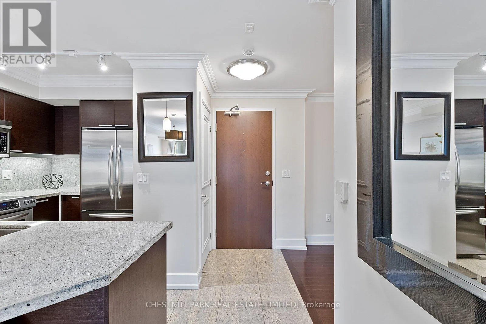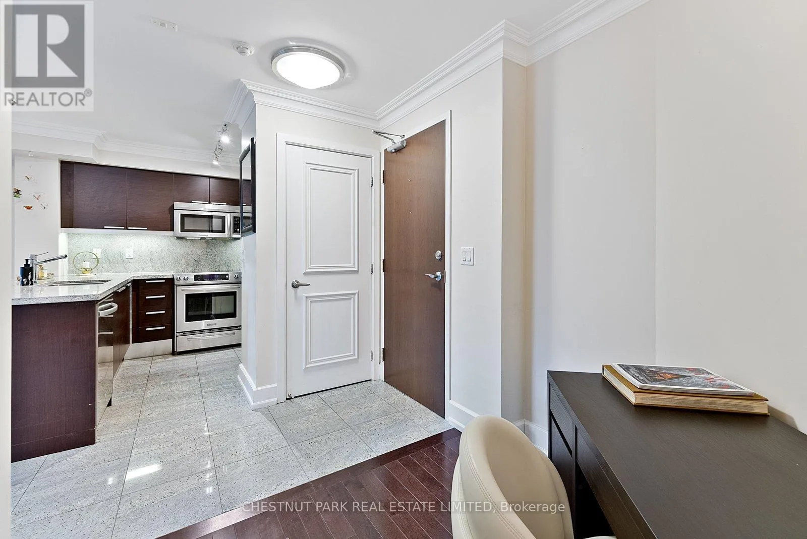 Cross Streets: Bayview / Sheppard. ** Directions: East of Bayview Ave. on Sheppard Ave. E. This bright and inviting 1+Den condo offers approximately 572 sq. ft (plus 56 sq.ft of Balcony) of well-planned living space. South-facing, it's filled with sunlight all day, highlighting the large windows and a sunny balcony-perfect for your morning coffee or relaxing in the evening. The open-concept layout feels airy and functional, while the kitchen features granite countertops and stainless-steel appliances, ideal for cooking or entertaining. The den is versatile and can serve as a home office, guest room, or cozy reading nook. Built by renowned developer Shane Baghai, the unit showcases exceptional craftsmanship and attention to detail throughout. One parking spot and one locker are included for convenience. Residents have access to excellent amenities, including a rooftop garden with BBQs, a fully equipped gym, 24-hour concierge service, and secure underground parking. Located in the heart of Bayview Village, you're just steps from shopping, the subway, Loblaws, the YMCA, and more, with quick access to Highways 401 and 404. With only 169 units across 7 floors, the building offers a quiet and private living environment. (id:27476)