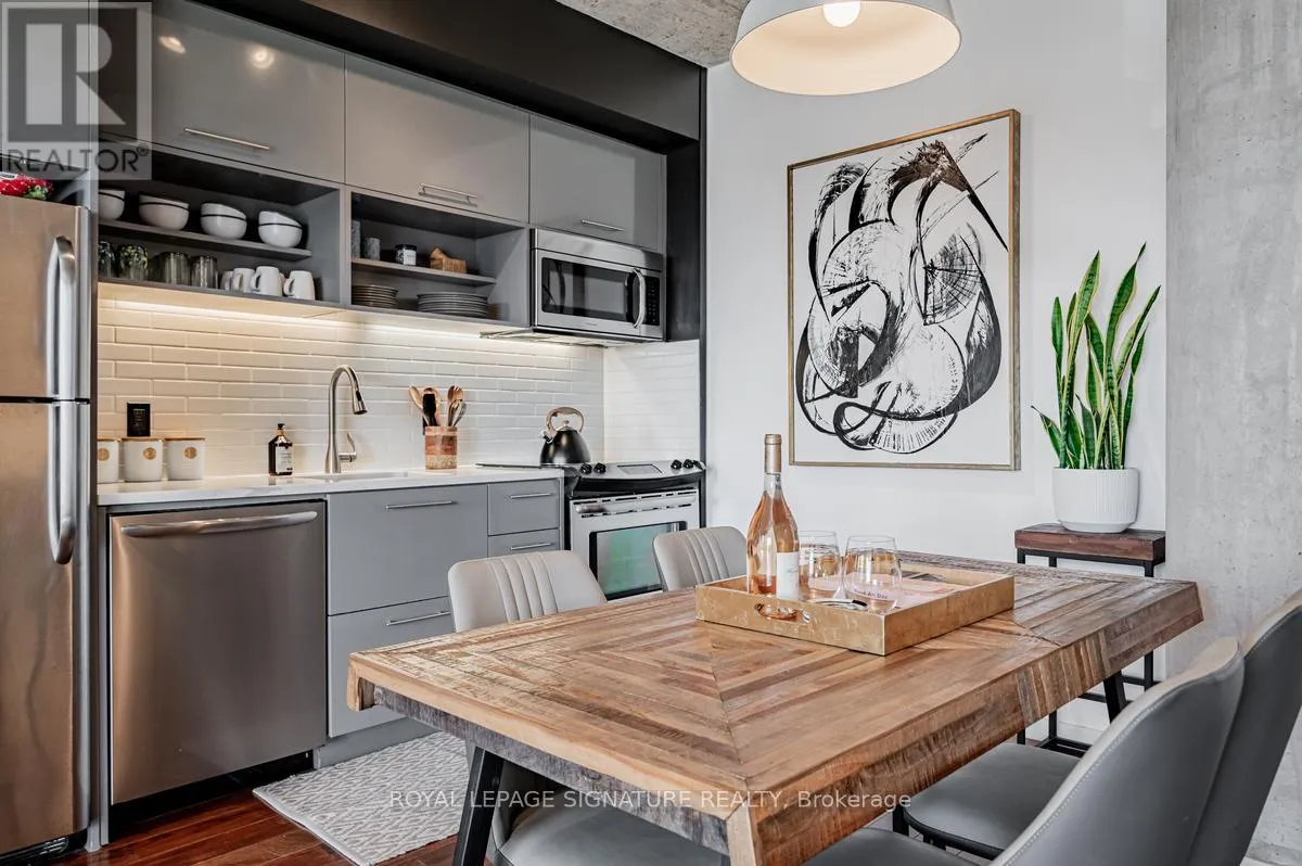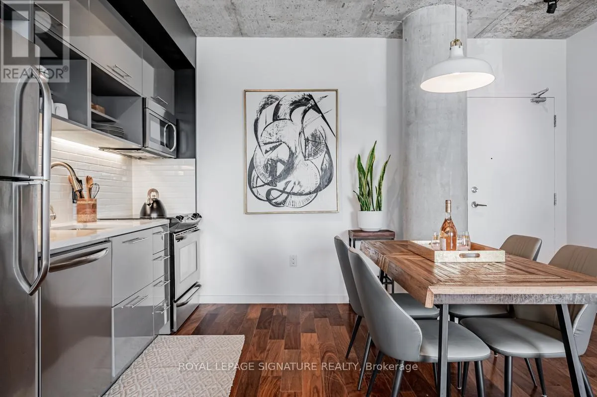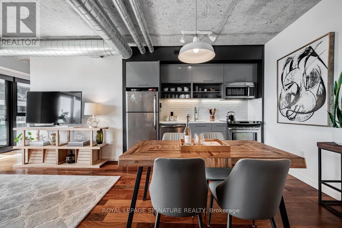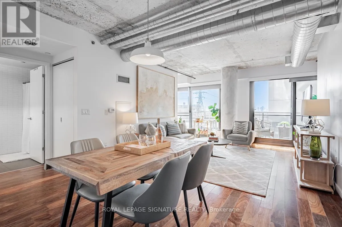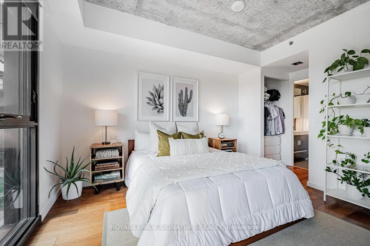 Cross Streets: Lower River St And King St E. ** Directions: South of King St E on Lower River St. On the left hand side. Welcome to River City Condos where sustainable living meets modern urban style! Step inside one of Toronto's first Gold LEED-certified residential communities, perfectly located in the city's vibrant downtown east. This bright and spacious suite offers true loft vibes, featuring exposed concrete ceilings and ducts, floor-to-ceiling windows, and hardwood floors throughout. Enjoy the ideal split-bedroom layout for added privacy and versatility. The primary suite features walk-through double closets and a fully tiled ensuite bath, while the second bedroom includes a double closet and a charming Juliette balcony. The modern kitchen has been thoughtfully updated with quartz countertops, a ceramic tile backsplash, and a stainless steel sink and faucet. Step out to your private balcony and take in the unobstructed southeast views - ideal for sunrise coffees or afternoon cocktails with friends! Don't miss the epic sunrise photos! Residents of River City enjoy fantastic amenities, including a gym, party room, guest suites, and visitor parking - along with shared access to an outdoor pool and BBQ area. Unit 405 is on just one of three floors with easy access via the connected bridge to all amenity spaces, the parking garage and additional elevators. Nestled in the heart of the West Don Lands and Corktown neighbourhoods, you're just steps to Underpass Park and Corktown Commons. With a Walk Score of 98 and Bike Score of 97, you're perfectly positioned for city living - surrounded by great cafes, dining, shops, and recreation, plus direct access to the Lower Don Trail and other city bike paths. Bonus: this unit comes with two bike racks and two storage lockers - so you'll never run out of space! Only minutes to some of Toronto's coolest neighbourhoods - Distillery District, St. Lawrence Market, Leslieville, and East Chinatown, with quick access to transit and the DVP. (id:27476)