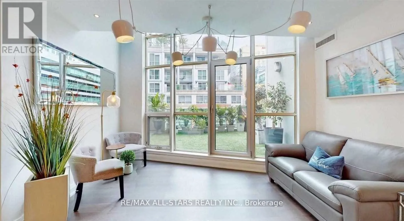 Cross Streets: Blue Jays Way/ Wellington. ** Directions: Blue Jays Way/Wellington. Prestigious living at the iconic Soho Residences and Hotel in Toronto's Entertainment District. This exceptional two-level corner suite is one of the largest in the building, offering approx. 2,500 sq.ft. of total space including an expansive 1,000 sqft private wraparound terrace, the largest terrace in the building. barbecues are permitted on the terrace. bright open concept layout with floor to ceiling windows throughout. All 3 bedrooms feature large windows with abundant natural light dining room, family room and entertainment area with floor to ceiling windows. Selba designed kitchen with custom cabinetry, premium appliances, and an island with eat in breakfast area. Powder room conveniently located on the main level. All 3 bedrooms located on the second floor, each with access to 3 full bathrooms. main bedroom retreat with walk in closet and spa style ensuite featuring a Victoria & Albert soaking tub, Vanico Maronyx sink, and fossil wood accents. Two staircases, including a private staircase to the main bedroom. Building amenities include indoor pool & sauna, fitness centre, business lounge and on site Moretti Cafe & Restaurant. Steps to King West, Rogers Centre, CN Tower, Ripley's Aquarium, Scotiabank Arena, Theatres, Union Station, TTC, top restaurants, shops and Toronto's Financial District (id:27476)