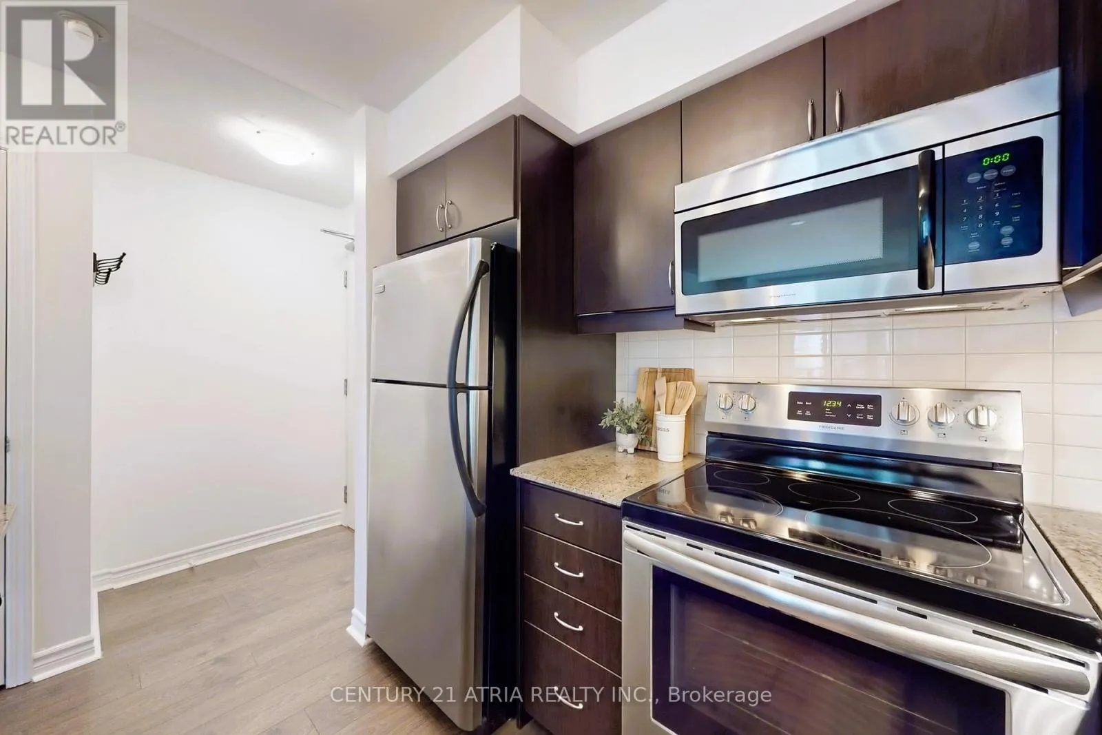 Cross Streets: Bayview/Sheppard. ** Directions: as per google maps. **OFFERS ANYTIME** Experience the epitome of convenience and sophisticated living nestled in the vibrant heart of Bayview Village + Charming 1-bedroom condo + 1 washroom + 1 parking + Spacious and functional layout with chic modern finishes + 529 sq ft + New hardwood floors (August 2023) + Meticulously maintained + Stunning open concept kitchen featuring: full size stainless steel appliances, U-shaped kitchen with breakfast bar, ample cabinet space with undermount lights, sleek granite countertops and tile backsplash + Newly painted walls + Covered balcony that can be enjoyed in any season + Generous sized bedroom with large windows + Unparalleled convenience just steps away from Bayview Village Shopping Centre (across the street), Loblaws, various shops, 1 min walk to the closest bus stop, steps to Besarrion TTC subway station, and minutes to Highway 401 + Spectacular amenities: Gym, roof top sundeck, penthouse party room, cinema and game room + Extras: Stainless steel fridge, stove, built-in microwave/range, dishwasher, washer, and dryer, and electrical light fixtures (id:27476)