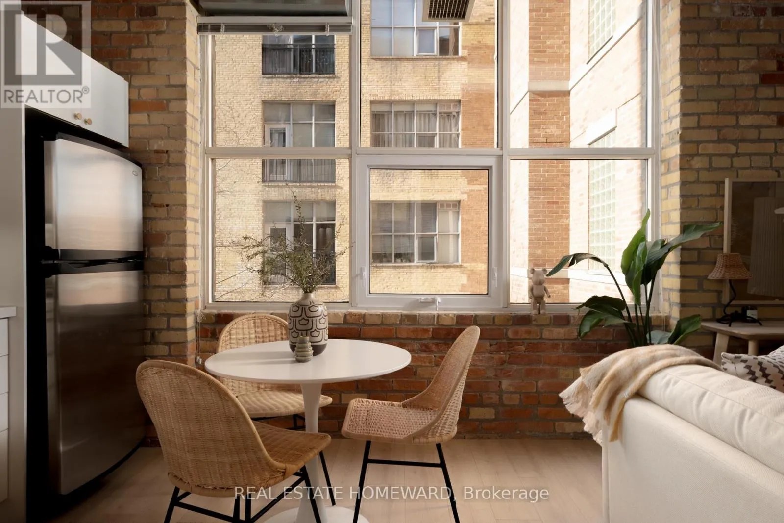 Cross Streets: Queen St W and Crawford St. ** Directions: Head West on Queen St W, turn South on Crawford St. A true hard loft in one of Queen West's most iconic buildings - the Chocolate Company Lofts. Units here don't come up often! This renovated suite blends authentic brick-and-beam character with modern, thoughtful upgrades. Soaring ceilings, exposed brick, original wood beams, and oversized windows deliver the classic loft aesthetic - while recent renovations make it completely turnkey.The open-concept living/dining/kitchen space has been beautifully updated with new flooring, brand-new cabinetry and countertops, and a new heat pump ($8,500) providing efficient heating and cooling. The washroom has a brand new glass shower enclosure. This layout is flexible and functional, with ample space in the main living area for a dedicated work-from-home desk without compromising the flow of the space. The bedroom is well-proportioned and quietly set back, offering comfortable separation from the living area and generous closet space. In-suite laundry adds everyday convenience. Set directly across from Trinity Bellwoods Park, this location is very hard to beat. Step outside to Queen West's best cafés, restaurants, shops, and transit, with the park as your front yard. A rare opportunity to own a renovated hard loft in a landmark building-where original character meets modern comfort in one of Toronto's most sought-after neighbourhoods. (id:27476)
