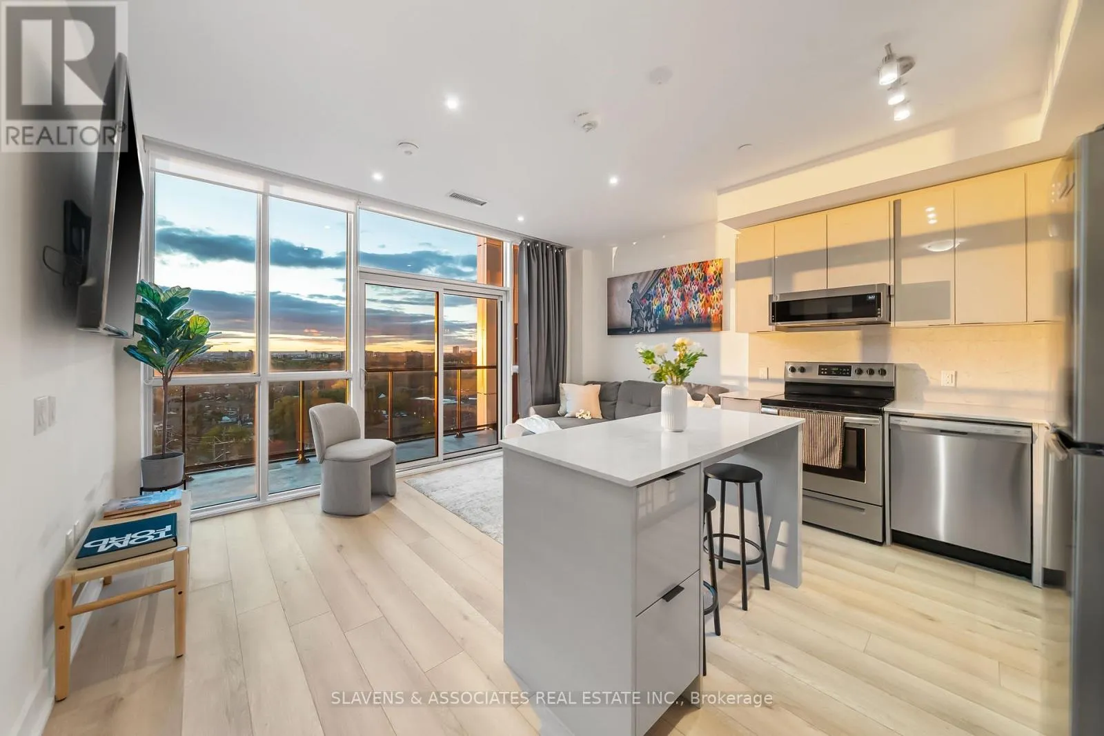 Keele and Wilson Welcome to 60 George Butchart Ave, where boutique living meets modern elegance in the heart of Toronto's vibrant Downsview Park community. This beautifully designed 1-bedroom + den, 1-bathroom suite offers a functional open-concept layout with a sleek eat-in kitchen island, ample storage throughout, generous sized primary bedroom, and floor-to-ceiling windows that flood the space with natural light. The spacious den is perfect for a home office or creative nook, while top-of-the-line finishes and modern touches elevate every corner of this stylish home. The true showstopper is the expansive 163 sq ft private terrace with sweeping residential and city views - your front-row seat to stunning sunsets and a peaceful escape from the city buzz. Set in a contemporary boutique-style building, residents enjoy access to premium amenities including a fitness centre, co-working lounge, party room, rooftop patio, and more. Just steps to parks, trails, TTC & GO transit, Yorkdale Mall, and local cafes, this condo offers the perfect balance of lifestyle, luxury, and location. (id:27476)