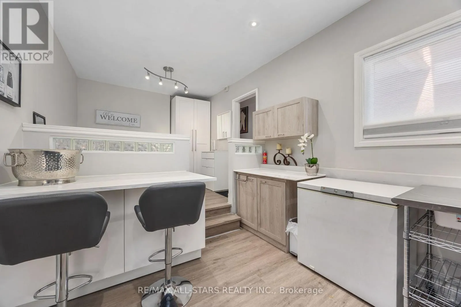 Cross Streets: Eglington / Victoria Park. ** Directions: -. Looking for more space without giving up city convenience? This five bedroom North York townhouse gives you room to grow, work, relax, and entertain all in one smart, updated layout. The custom designed main floor feels bright and connected with an open concept kitchen, sit up island, and a comfortable family room anchored by a double sided gas fireplace. A separate dining area makes family dinners easy, and the bonus garage converted main floor room with a nearby full bathroom is perfect for multi-generational living offering a main floor bedroom or use it as a home office, studio, gym, or whatever your life requires! Upstairs, four bedrooms offer flexible living arrangements and the upgraded primary ensuite bathroom adds a touch of spa like comfort. The fully finished basement is a major bonus, giving you a full entertainment zone with a wet bar, sit up island, electric fireplace, steam shower with heated floors, plus laundry, storage, and workspace. The backyard delivers an unexpected retreat in the city - overlooking green space, enjoy a multi level composite deck, pergola, and hot tub that create a private outdoor hangout for year round use. All of this comes with a prime location near the upcoming Eglinton LRT, transit options, shopping, parks, schools, Aga Khan Centre and Museum and quick access to major highways (DVP & Hwy. 401). A rare chance to get the space you need in a neighbourhood that keeps getting better. (id:27476)