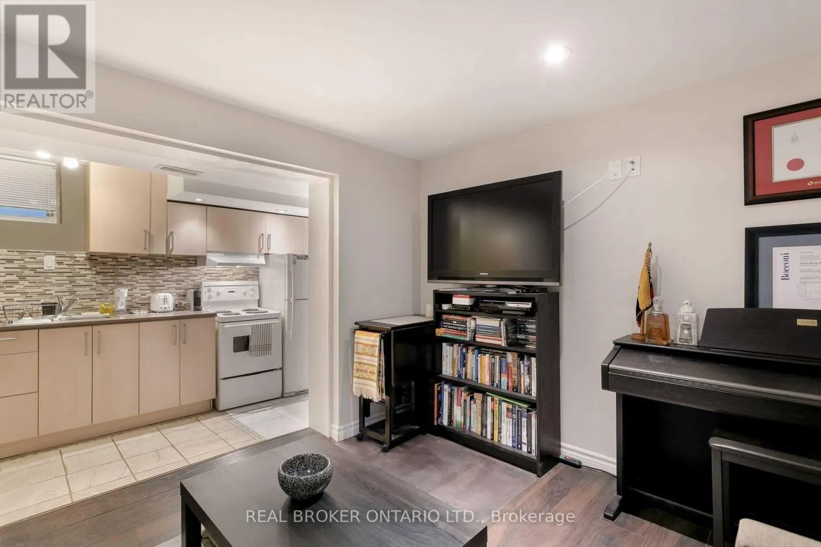 Cross Streets: Eglinton Ave W/Allen Rd. ** Directions: The house is nearest the intersection of Oakwood and Lanark Avenues. Bright and Pleasant 1-bedroom Unit in Lively Oakwood. This home has an efficient open concept living area with contrasting dark flooring, white walls, and pot lights. The modern renovated kitchen is well-lit with a lovely backsplash, laminate countertops, and overhead/under-counter cabinetry for plenty of storage. The washroom is also updated. The bedroom is spacious with a roomy mirrored closet and enough space for a work desk area. It has shared access to the large backyard and laundry room. Ideally located close to all essentials and Hwy 401 via Allen Rd. Steps to restaurants, cafes, shops, and more. Only an 8-minute walk to Eglinton W Subway station, 1 minute to the Oakwood LRT station, and15 minutes to Cedarvale Park, trails, and ravines. Utilities and appliances included! (id:27476)