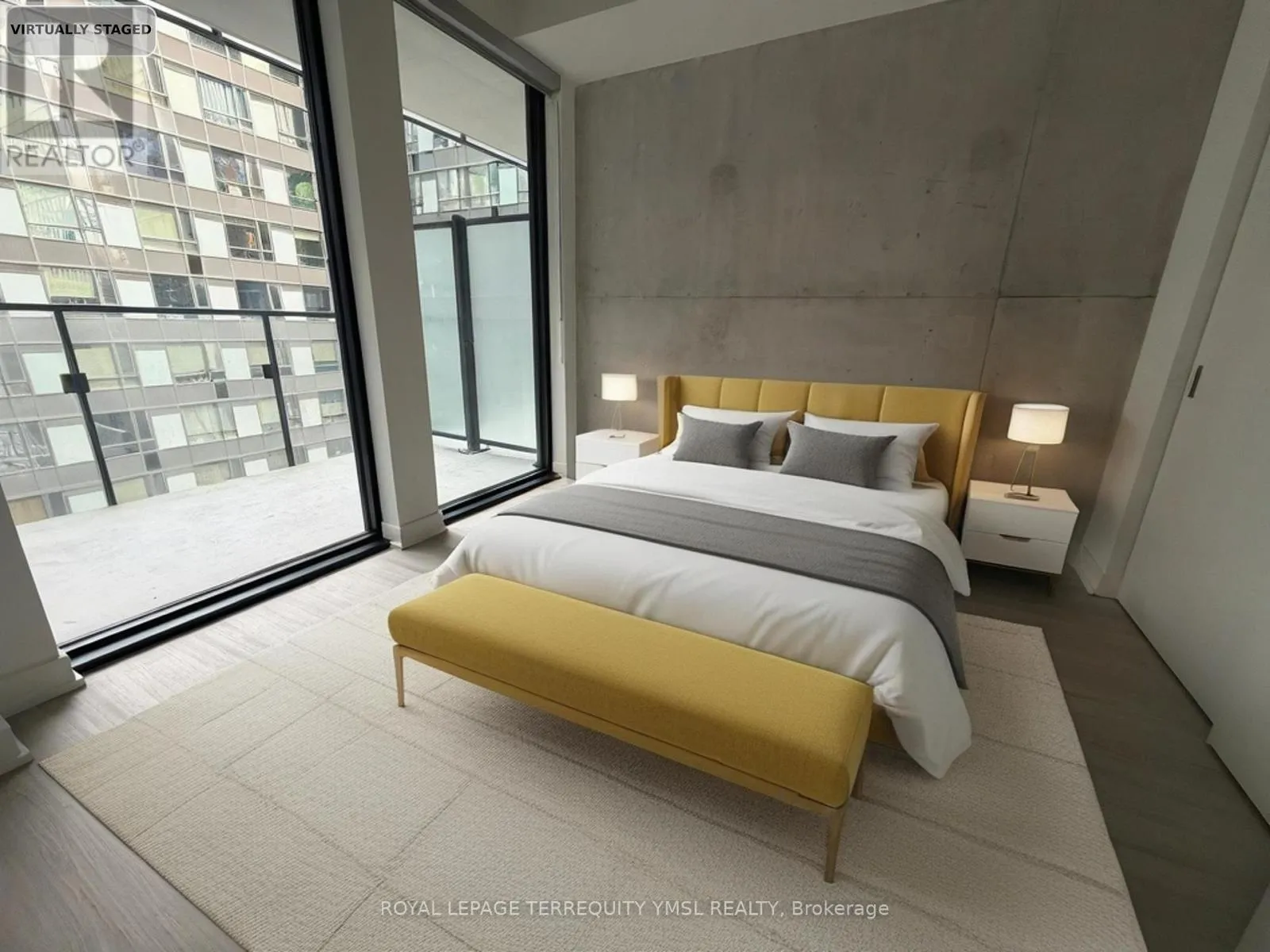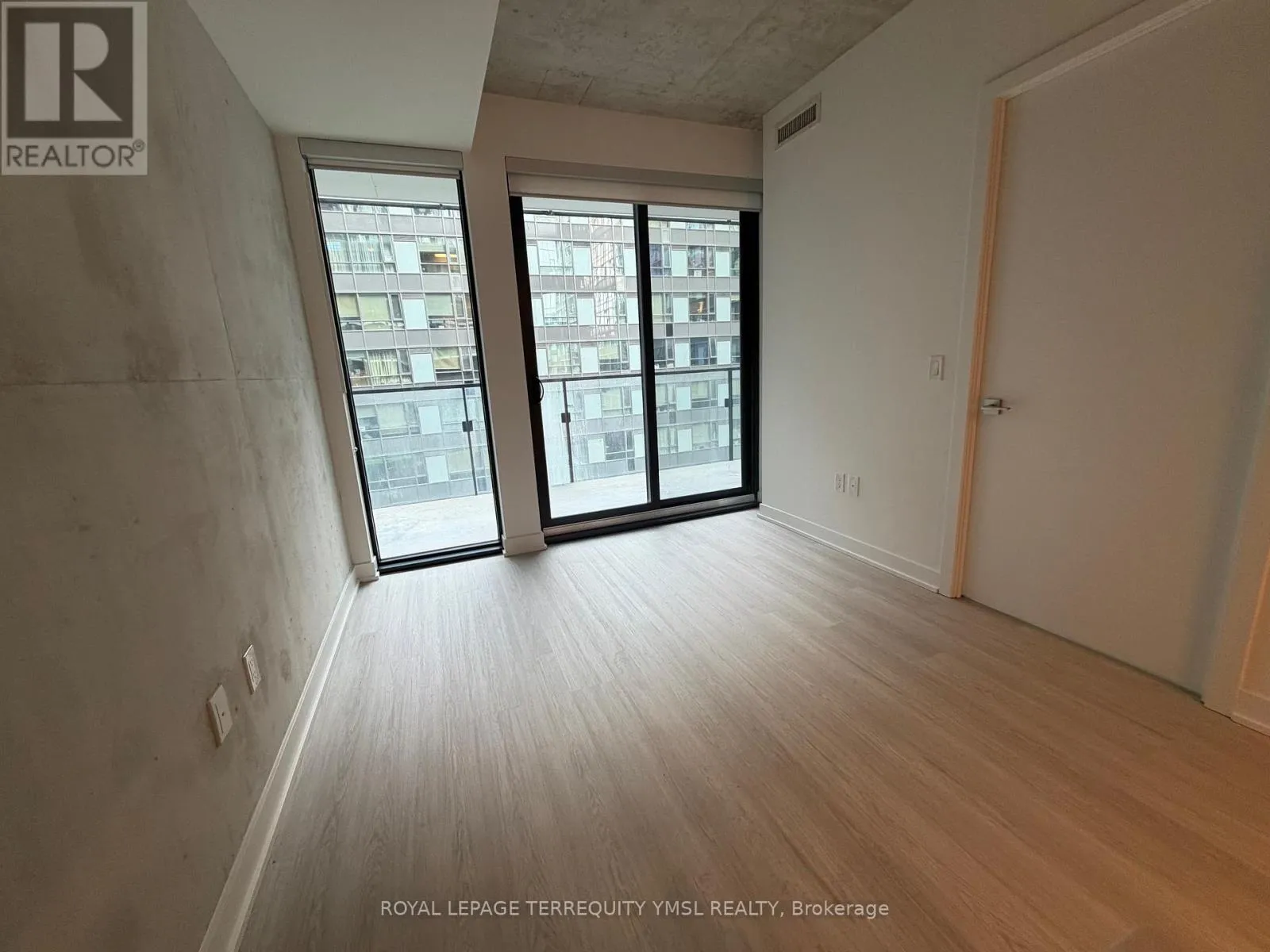 King E. & Berkeley "Bauhaus Condos" - a brand new, luxurious 1-bedroom plus den suite filled with natural light and thoughtfully designed for modern urban living. This stylish home features expansive windows with professionally installed window solar blinds, soaring 9' exposed concrete ceilings, and featured concrete walls, complemented by wood flooring throughout. The smart open-concept layout includes a versatile den ideal for a home office, and a spacious living area with a walk-out to a private balcony, perfect for relaxing or entertaining. Residents enjoy 24-hour concierge service and lifestyle amenities including a fitness centre, party room, resident lounge, and an outdoor terrace. Ideally located with 24-hour streetcar service right at the doorstep and just minutes to the Financial District, St. Lawrence Market, George Brown College, shopping, dining, and entertainment. An unbeatable Walk and Transit Score of 99 makes city living effortless. A perfect suite for a downtown professional seeking space and style. (id:27476)