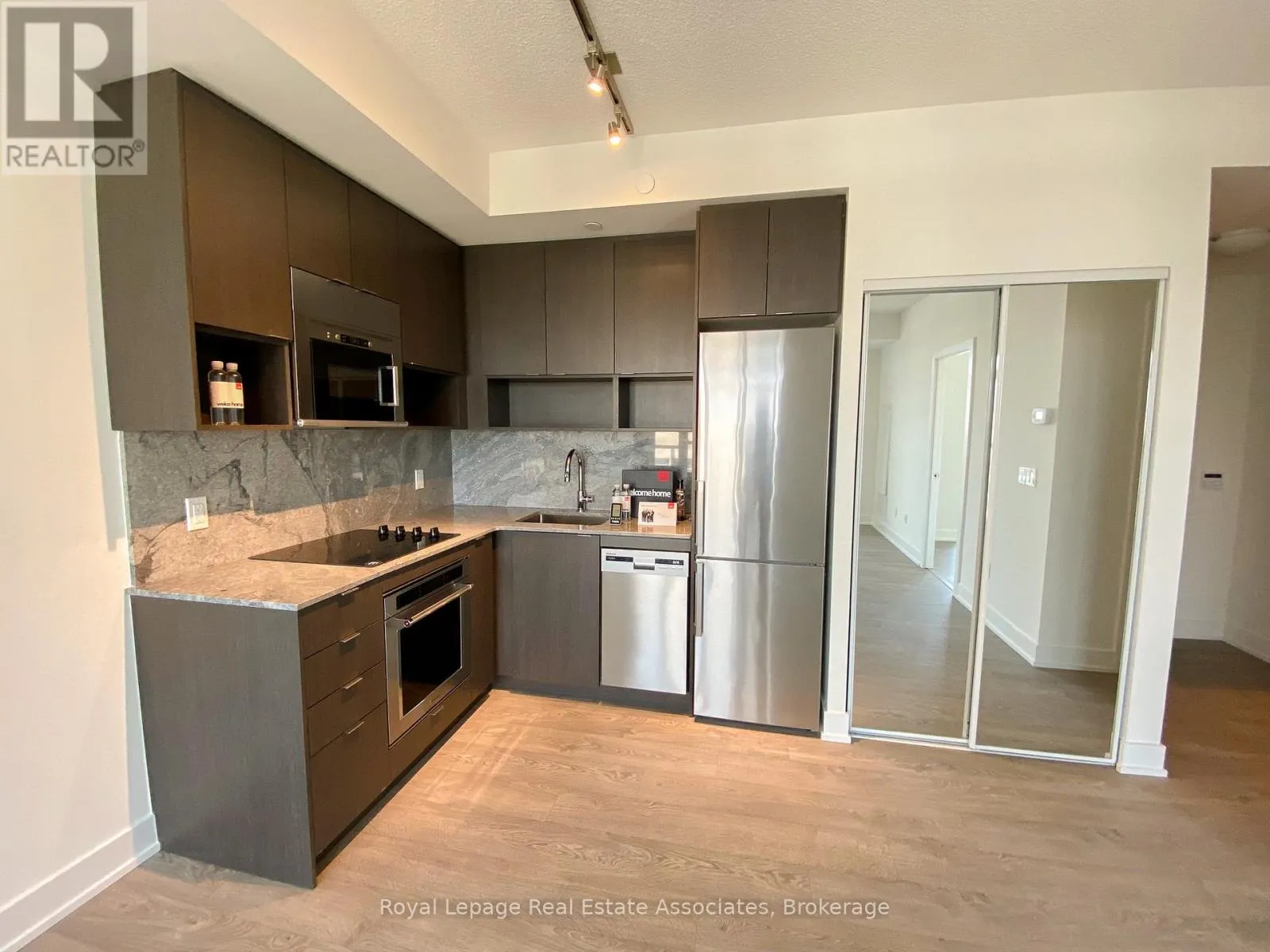 Bloor & Islington Welcome to Islington Terrace by Tridel, a well-established residence offering efficient, modern living in the heart of Islington-City Centre West. This bright 1-bedroom suite spans 530 sq. ft. and features a clean, open-concept layout designed to maximize space, natural light, and everyday comfort. The contemporary kitchen is finished with full-height cabinetry, integrated stainless steel appliances, and quartz countertops, seamlessly connecting to the combined living and dining area. Wide-plank flooring and expansive windows enhance the airy feel of the space, while the Juliette balcony allows fresh air and an added sense of openness throughout the suite. The bedroom offers a well-proportioned layout with a large closet and floor-to-ceiling window, complemented by a modern 4-piece bathroom with sleek tilework and a streamlined vanity. In-suite laundry is neatly tucked into a dedicated closet, and the suite includes one locker for additional storage. Residents enjoy access to a curated collection of amenities including a fitness centre, games room, guest suites, and 24-hour concierge service. Steps from Islington Station, parks, grocery stores, cafés, and everyday conveniences, this suite offers comfortable, well-connected urban living in one of Etobicoke's most accessible neighbourhoods. (id:27476)