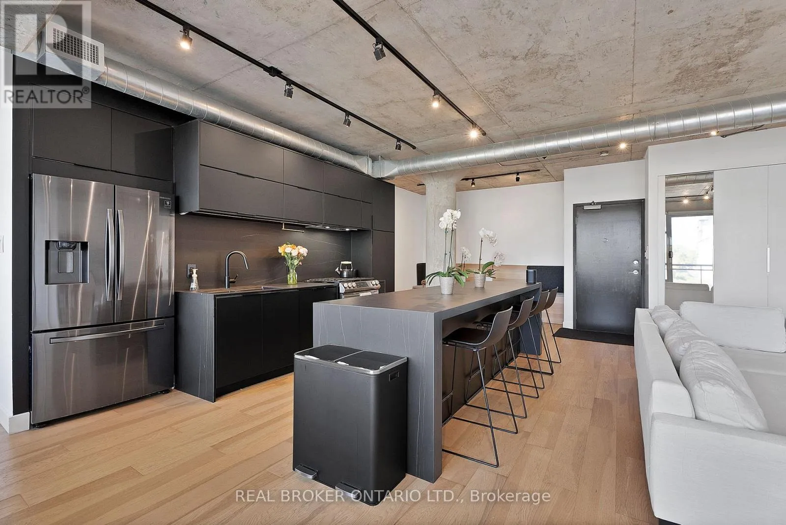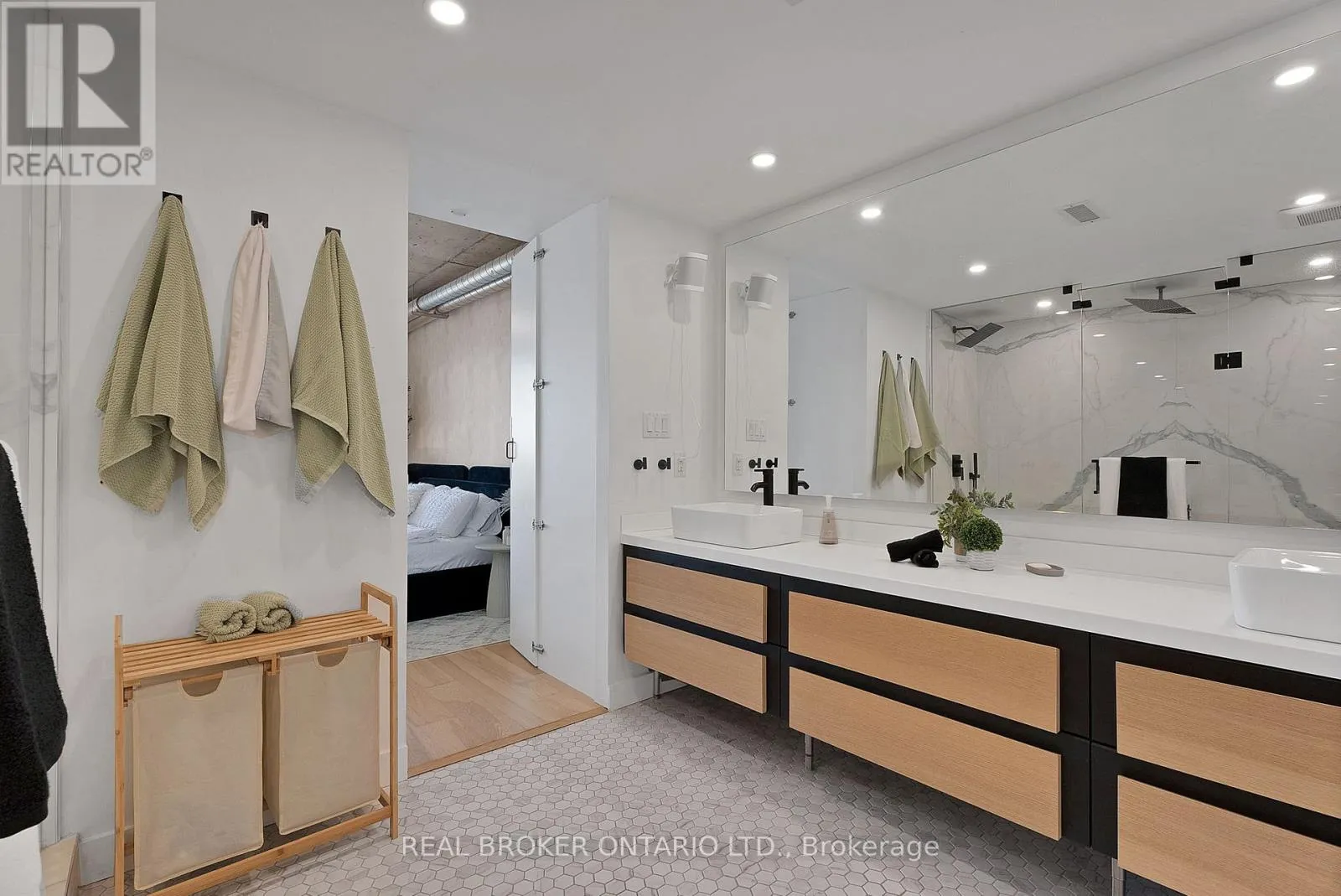 Cross Streets: Spadina Av & Richmond St W W. ** Directions: Spadina & Richmond. Welcome To This Exquisite (1204 Sf) Open-Concept Zen Loft, Discreetly Tucked Away On A Quiet Street. Designed With A Coveted Split-Bedroom Layout, This Sophisticated Home Offers Both Privacy & Seamless Flow, Complemented By Soaring 9-Foot Ceilings & Dramatic Floor-To-Ceiling Windows That Flood The Space With Natural Light & Seamlessly Extend Outdoors To An Expansive Terrace With A Built-In BBQ Hookup, Ideal For Summer Entertaining Or Candlelight Dinners.The Home Showcases Exceptional Porcelanosa Porcelain Imported From Spain, Featuring Full-Slab Kitchen Countertops, An Expansive Designer Island, & Striking Book Matched, Full-Height Slabs In The Primary Shower, Each Detail Reflecting Superior Craftsmanship & Refined Elegance.The Primary Bedroom Is A Serene Retreat, Highlighted By A Large Window & A Spa-Inspired Ensuite Featuring Double Vanity Sinks, A Spacious Walk-In Shower With Multiple Rain Shower Heads, & Thoughtfully Designed Wall Closets. The 2nd Bedroom Offers Remarkable Versatility With A Custom Built-In Murphy Bed, Double Closets, & Direct Access To An Adjacent Bathroom, Ideal For Guests, A Private Office, Or A Secondary Suite.Additional Highlights Include Premium Engineered Hardwood Floors, Bespoke Millwork Throughout, & Designer LED Lighting That Enhances The Home's Luxurious Ambiance While Accentuating Its Architectural Details.Every Element Of This Unique Home Has Been Meticulously Curated To Create A Tranquil, Living Experience Where Luxury Meets Functionality.Ideally Located In One Of The City's Most Desirable Urban Enclaves, The Home Is Surrounded By 4 parks & 7 Recreational Facilities Within A 20-Minute Walk. Exceptional Connectivity Is Just Steps Away, With A 2-Min. Walk To Spadina Ave. Street-Level Transit, A 13-Min. Walk To TTC, Osgoode Subway Stn., & Quick Access To Gardiner Expressway & Lakeshore Blvd., within a 5-min. Drive.This Is An Exceptional Opportunity To Own A Refined Urban Sanctuary With 1 Parking & 2 Lockers Included. (id:27476)