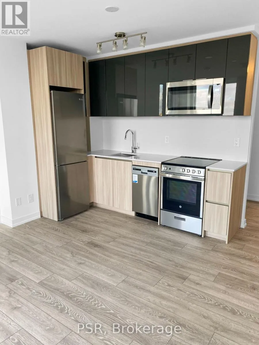 Keele St & Maryport Ave This 1-bedroom + den suite features a thoughtful layout with north-west facing views that fill the space with natural light, complemented by a balcony ideal for outdoor enjoyment. The suite features a modern kitchen, laminate flooring throughout, and a den perfect for a home office. Residents enjoy access to premium building amenities including a concierge, gym, party room, and a terrace with BBQs. Perfectly situated, this home is in close proximity to York University, Downsview Park, Humber River Hospital, Yorkdale Mall, and a wide selection of shops, grocery stores, and dining options. Convenient access to Highway 401, Highway 400, and public transit adds to the appeal of this prime location. *Landlord to repaint the property and install blinds prior to lease commencement* (id:27476)