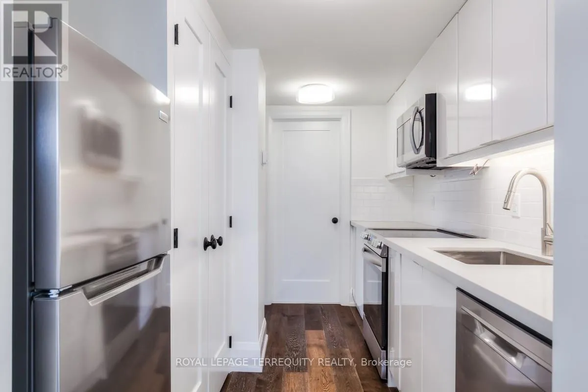 Eglinton and Bayview This bright and beautifully finished 1 bedroom lower level suite is located in Toronto's desirable Leaside neighbourhood and features a private entrance, efficient galley kitchen with stainless steel appliances including dishwasher, spacious living area with large windows for natural light, and an electric fireplace for added comfort. The bedroom offers double closets and an additional storage nook, along with a modern 3 piece bathroom and in suite laundry. Heated floors and ductless air conditioning provide year round comfort. Approximately 540 sq ft of well planned living space. Tenants pay gas and electricity separately metered. Snow removal and yard maintenance are included for added convenience. No parking available and no assigned outdoor space. Conveniently located steps to grocery stores including Metro and Whole Foods, restaurants, cafes, parks, schools, and hospital. Quick access to DVP and 401 within 15 minutes. (id:27476)