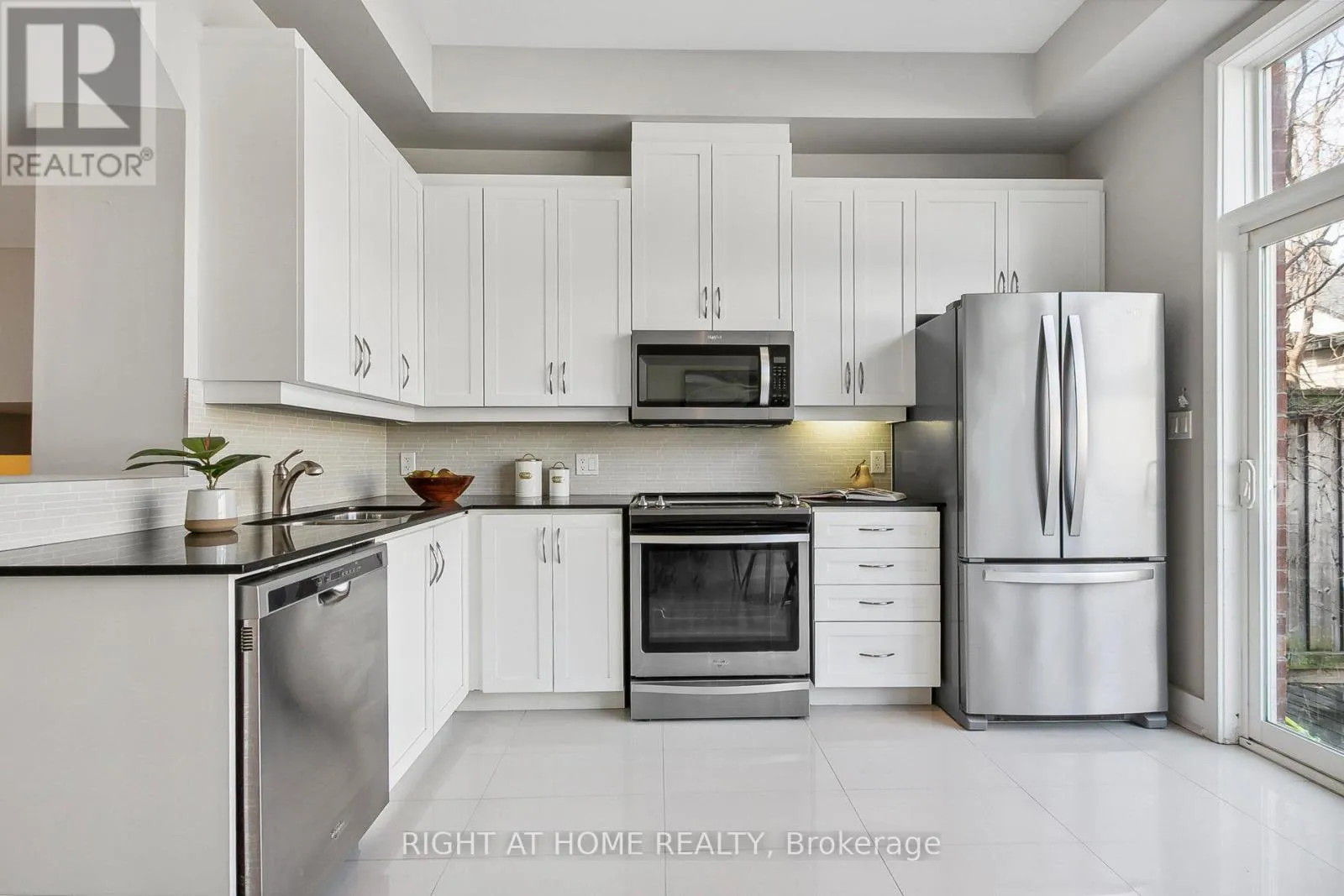 Cross Streets: King St E & Sumach. ** Directions: King St. East between Sumach St. and River St. The location is just one block south of Queen St. E. near the merging point of King and Queen Streets. Welcome home to your sanctuary in the heart of historic Corktown. This freehold Brownstone beauty built in 2003 offers timeless charm and contemporary luxury. With 2600+ square feet of living space across four levels and high ceilings on every floor, the home is spacious and comfortable. Sunlight spills in from the wall of windows in every room. The living/dining room provides an inviting entertaining space from which you can wander into the kitchen with its granite-topped counters, tailored cabinetry, and stainless steel appliances. Here you can enjoy your morning coffee while looking out to your perfect urban backyard. Or step out to the deck and patio, ideal for alfresco dining and barbecuing. Upstairs, spanning the entire third floor, the primary suite is pure retreat with a cozy fireplace and a walkout to a private balcony with a treed canopy view. A huge walk-in closet can handle your all-seasons wardrobe with aplomb. The 6-piece ensuite bath is pure indulgence with a soaker tub big enough for two people; a separate shower stall with a rainfall faucet; dual vanities with granite counters; toilet and bidet. The other two bedrooms on the second floor are just as spacious and sunlit and fitted with double closets. A second floor laundry provides convenience. Hardwood floors throughout with laminate in basement. The basement unit offers versatility to suit your needs. It is completely self-contained with its own entrance on King Street, and has a separate kitchen and laundry. You can use the space to generate rental income, as a nanny/in-law suite or a work-from-home office HQ. Rare for downtown Toronto, the property features a detached garage with a soaring ceiling for all your storage needs. Best of all, no condo fees or rules! Location-wise, you couldn't ask for better: a King Street address with easy access to the Distillery District, Canary District, St. Lawrence Market, Corktown Common, upcoming Ontario Line, Leslieville, the DVP & Gardiner Expressway. (id:27476)