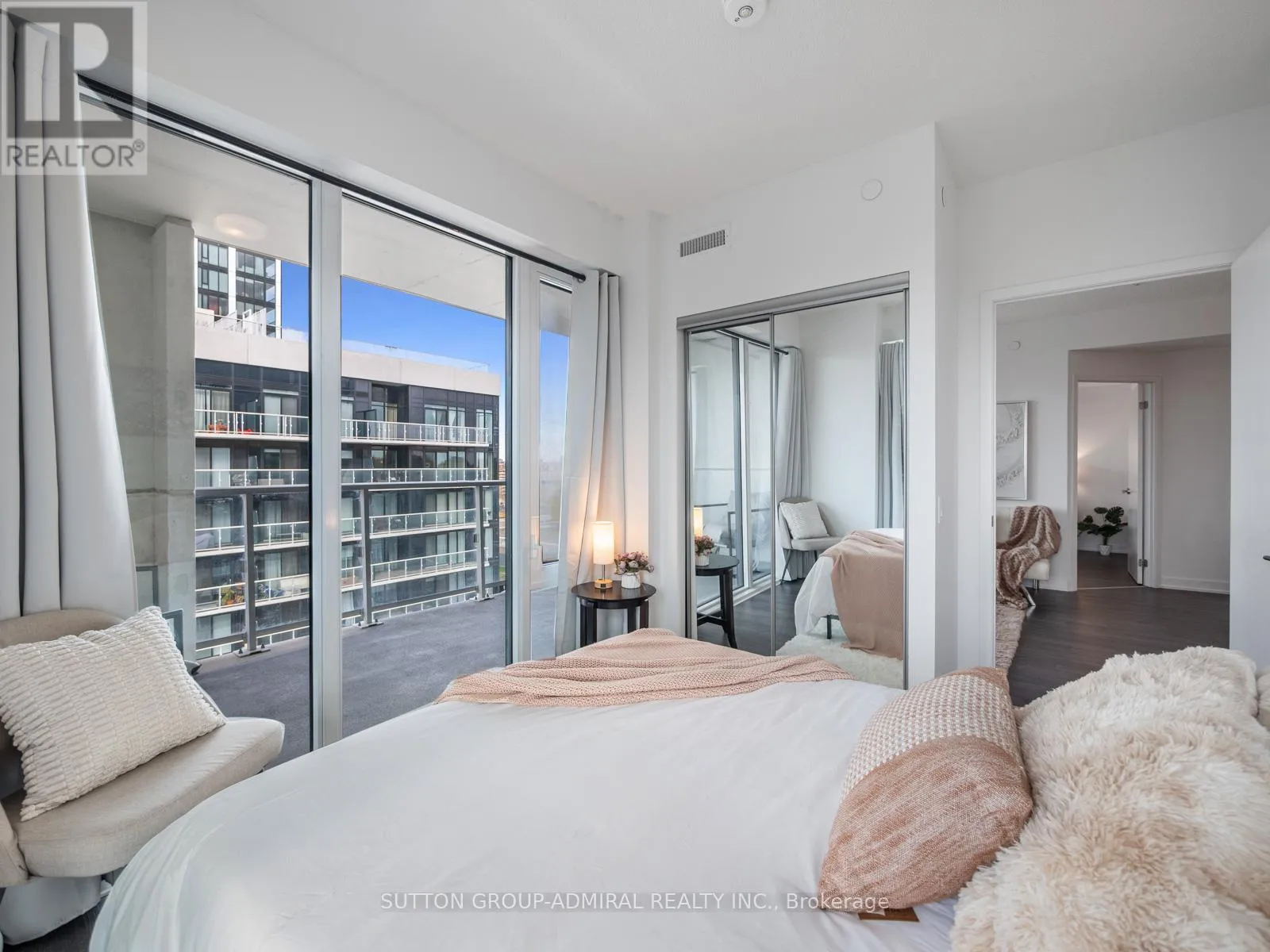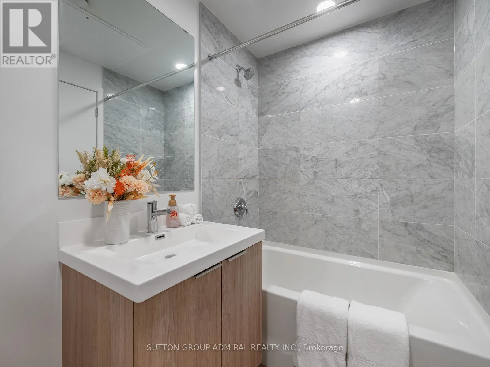 Cross Streets: Don Mills Rd & Lawrence Ave East. ** Directions: Travel North on Don Mills Rd, pass Eglinton Ave East, Turn West on O'Neil Rd. Welcome to Rodeo Drive Condos, located in the heart of the Shops at Don Mills-Toronto's premier open-air lifestyle destination. This corner unit offers a rare combination of modern elegance and convenience, featuring 2 bedrooms + den, 2 bathrooms, and two private balconies. The extra-large wraparound balcony spans the width of the suite, offering unobstructed panoramic city views, including the CN Tower and gorgeous sunsets. The second bedroom enjoys its own private balcony for a quiet retreat.Inside, this home is upgraded from the original builder finishes, showcasing Miele stainless steel appliances (built-in oven, cooktop, and fridge), marble countertops in both bathrooms, and laminate wood flooring throughout, including the bedrooms. The open-concept floor plan, floor-to-ceiling windows, and 9-foot ceilings create a bright, airy space ideal for entertaining or relaxing.Residents enjoy exceptional building amenities including a 24-hour concierge, fitness centre, outdoor pool, and beautifully designed social spaces. Free visitor parking and spacious resident parking spots add everyday convenience.The location is unbeatable-steps to Shops at Don Mills, with its mix of high-end restaurants, cafes, Metro grocery, LCBO, banks, boutiques, and free EV charging. This is one of midtown Toronto's most walkable neighbourhoods, offering an ideal blend of community feel and city energy. Just minutes to Highways 401, DVP, and 404, and with excellent TTC service nearby, commuting is easy. The Eglinton Crosstown LRT and subway connections at Fairview Mall and Lawrence East provide quick links across the city. A short 15-20-minute drive to downtown makes this location perfect for professionals and urban explorers alike. (id:27476)