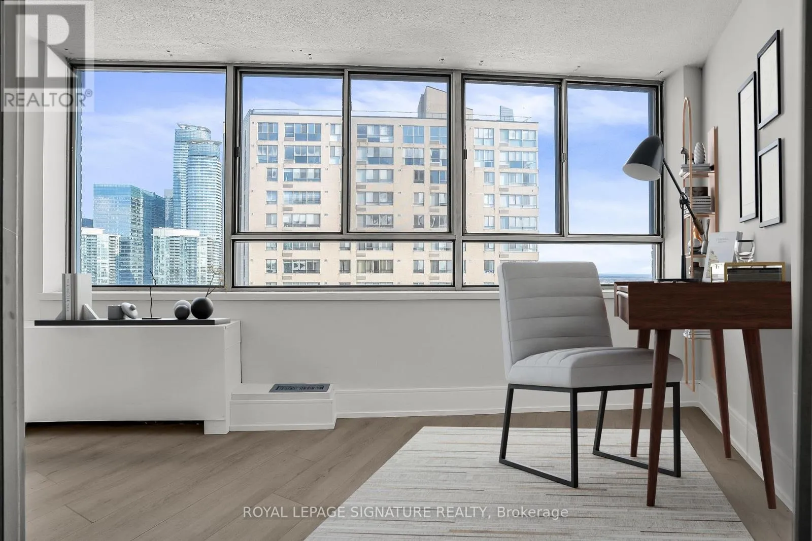 Cross Streets: Lower Simcoe/Queens Quay W. ** Directions: Rees/Queens Quay W. Experience breathtaking lake and city views from this beautifully updated waterfront residence at Harbourpoint Condos on Queens Quay. Perfectly situated just steps to Toronto's downtown core, enjoy unparalleled access to public transit, the Rogers Centre, CN Tower, HTO Park, the Entertainment District, and the Toronto Island ferries. This bright, open-concept suite features new laminate flooring and a spacious living area with sliding glass doors leading to a sun-filled solarium with wall-to-wall windows showcasing stunning lake views. The modern kitchen is finished with stone countertops, a glass backsplash, and tile flooring, and comes fully equipped with new stainless-steel appliances, including an LG refrigerator/freezer and Samsung dishwasher, built-in microwave, and stove. A convenient laundry closet includes a GE stacked washer and dryer. The primary bedroom offers pot lights and a sliding mirrored double-door closet. The updated 4-piece bathroom features a stone-top vanity with soft-close cabinetry and a deep soaker tub. Building amenities include a fully equipped gym, concierge service, party/meeting room, sauna, and a spectacular rooftop deck and garden with barbecues. An exceptional opportunity to enjoy waterfront living with the best of Toronto right at your doorstep. (id:27476)