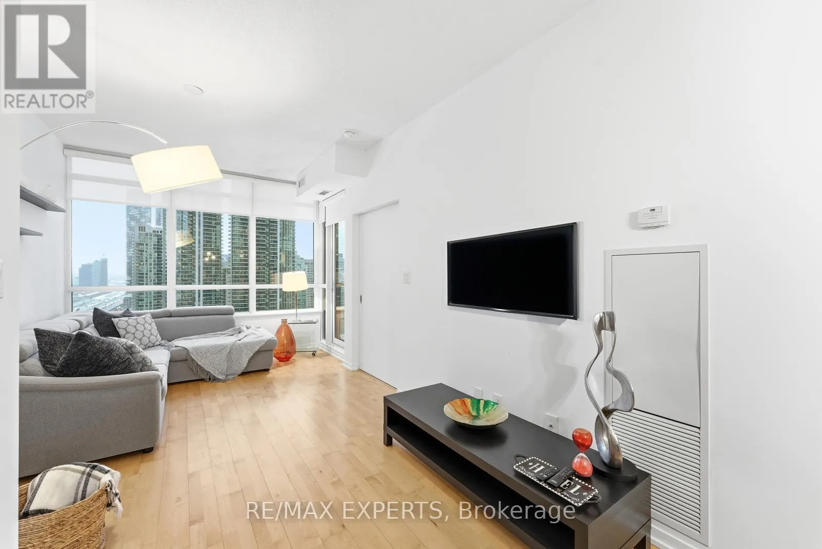Bremner Blvd. and York St. Excellent opportunity awaits at the highly sought after Maple Leaf Square Residences located in the heart of Downtown Toronto! This impeccably maintained 1 + Den, 1 Bath "Golden State Floor Plan" features a 610sf + balcony open concept layout with 9' ceilings, spacious den with a well thought out built in murphy bed that also serves as an office space once closed, spacious primary bedroom, ensuite laundry, 1 PARKING SPOT & 1 STORAGE LOCKER, and an East facing balcony offering exceptional views of the City as well as a direct line of sight to Scotiabanks jumbo screen! Watch the Leafs and Raptors from the comfort of your own Balcony! Excellent building amenities including party room, indoor/outdoor pools, fitness room, concierge and more! AAA location just steps to Scotiabank Arena, Rogers Centre, Ripleys Aquarium, Gardiner Expressway, Plenty of Restaurants, Retail Shops, PATH connection, LCBO, Longo's and many more of Toronto's finest Amenities! (id:27476)
