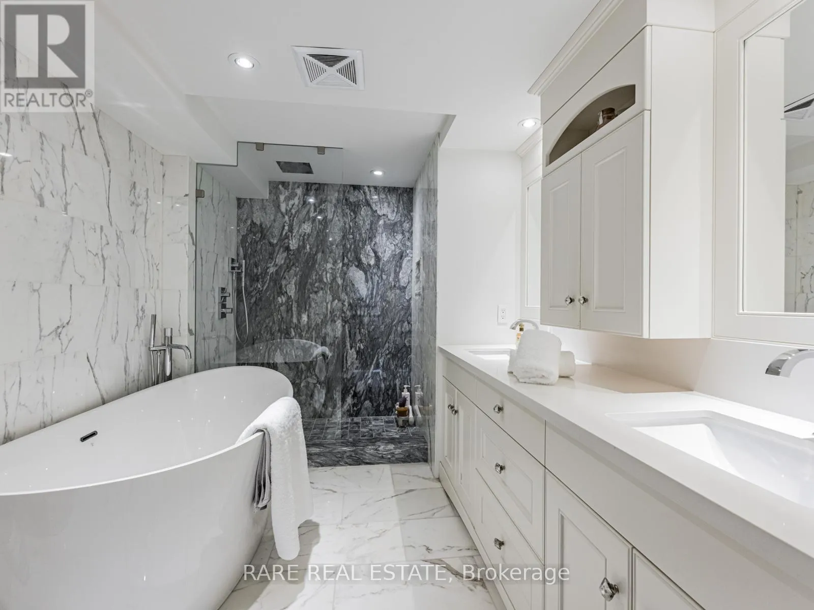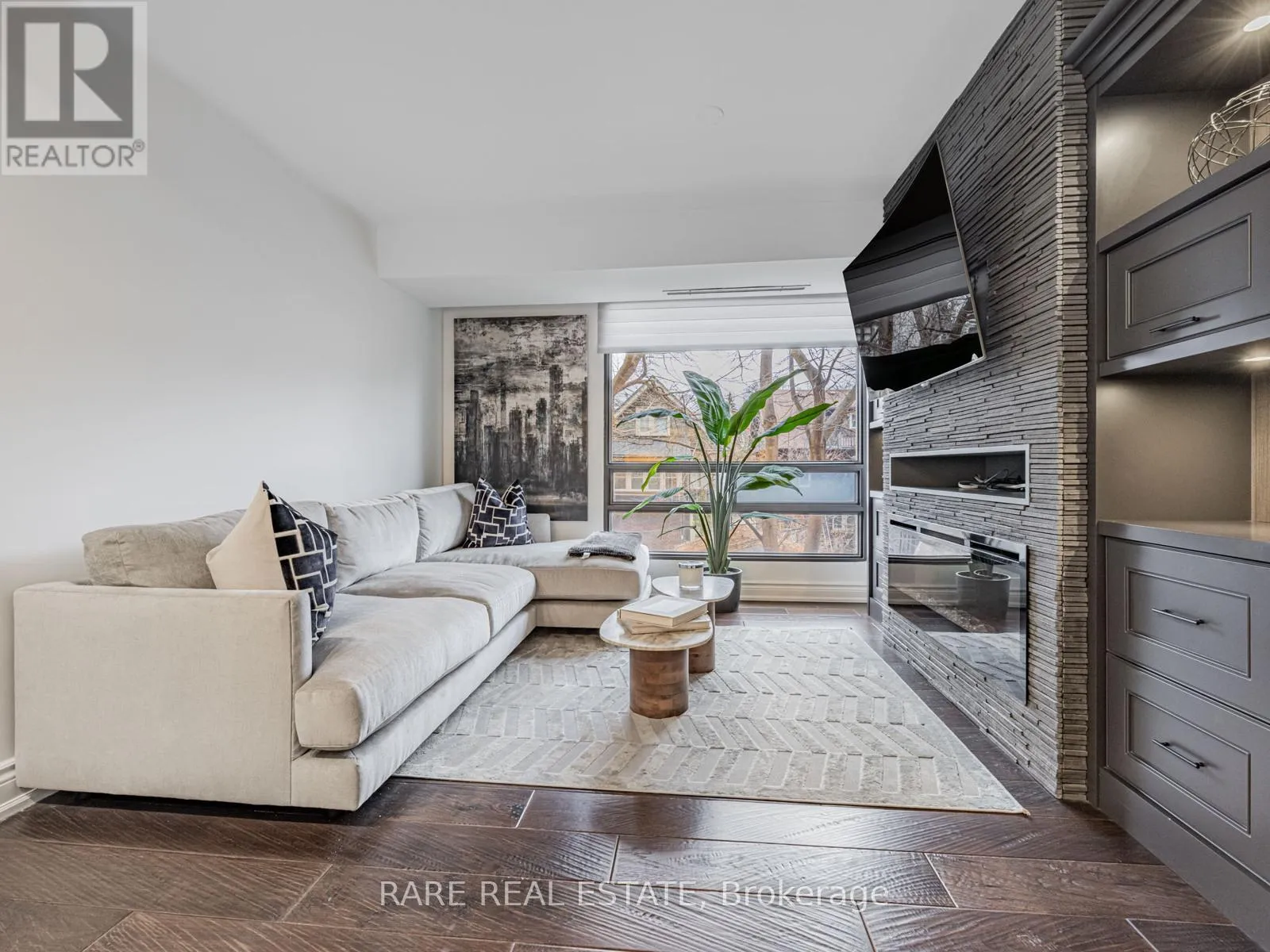St.Clair Avenue West & Spadina Welcome to this elegant, fully renovated, furnished 2-bed, 2-bath condo in the vibrant heart of Forest Hill Village. This 900 sq ft, condo designed open-concept residence offers contemporary comfort and stylish finishes. A custom kitchen features high-end appliances incl. full-size JennAir cooktop, oven, fridge, + Miele dishwasher, complemented by luxurious marble countertops and rich hardwood floors. Floor-to-ceiling windows + automatic blinds flood the space with natural light, creating a bright, welcoming atmosphere. The living area boasts custom built-ins, an elect. fireplace, + ample storage, ideal for entertaining or relaxing. The primary bdrm. incl. custom closets and an ensuite with a glass-enclosed shower, a soaking tub, & double sinks, offering a private retreat. In-suite laundry with full-size W/D makes daily living effortless. The suite includes 1 parking Spot + an oversized full walk in storage locker for convenience. Bi-weekly cleaning is included, providing a hassle-free lifestyle. Amenities: a beautifully renovated indoor pool, sauna, gym, stylish party room, and an expansive outdoor terrace with BBQs ideal for social gatherings or outdoor leisure + visitor parking, and 24/7 security. The location is perfect for outdoor enthusiasts: near Nordheimer Ravine, Beltline Path, and numerous parks, perfect for jogging, walking, or relaxing amidst nature. Enjoy the serenity of small parks in close proximity. Its walking distance from St. Clair West subway, grocery stores, trendy restaurants. The vibrant neighborhood offers a mix of urban amenities and peaceful green spaces, making it ideal for professionals, small families, or anyone seeking a premium lifestyle in Toronto's sought-after Forest Hill Village. Experience the best of city living with nature at your doorstep in this exceptional residence. (id:27476)