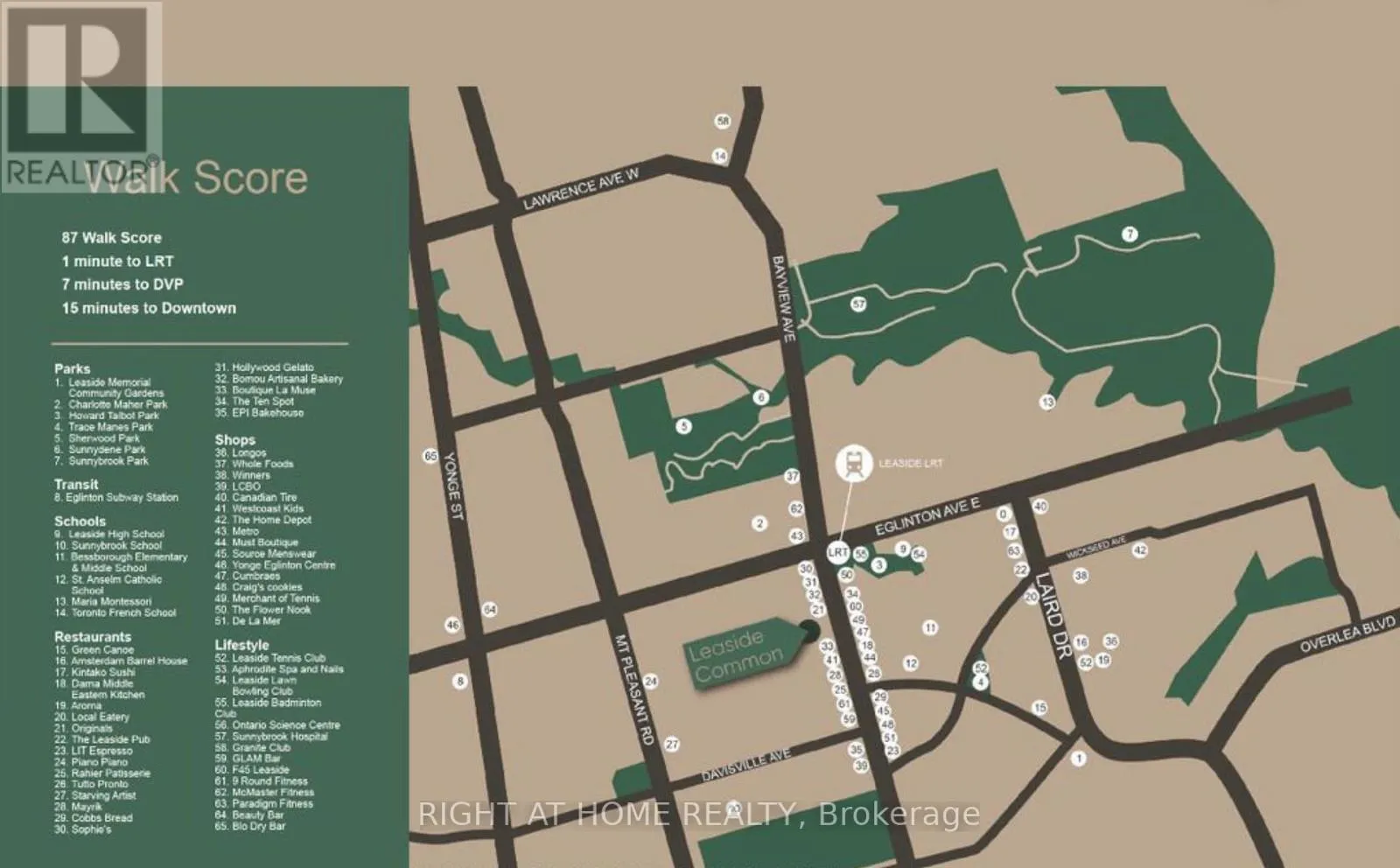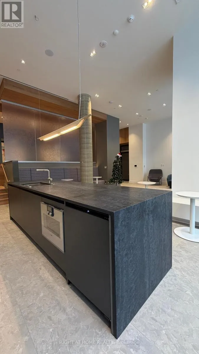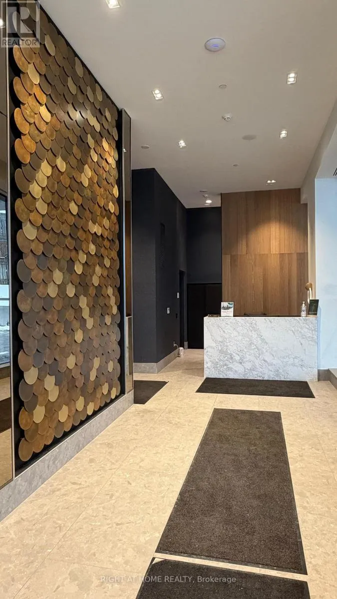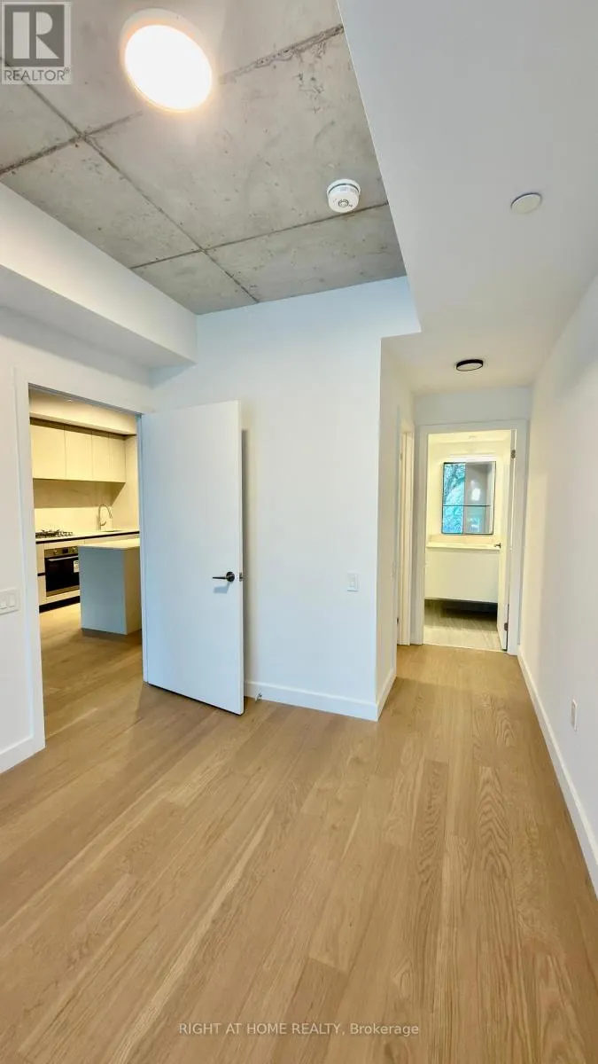 Cross Streets: Bayview&Eglinton. ** Directions: NW. Brand new, never-lived-in North-facing 2 Bedroom + Den, 2 Bathroom suite in the highly sought-after Leaside Common. Offering approx. 920 sq.ft. of thoughtfully designed living space with a rare and exceptional layout featuring a defined foyer and corridor entrance - providing privacy and separation rarely found in condo living (does not open directly into the living room).Features include 9' exposed concrete ceilings, premium engineered hardwood flooring throughout, smooth-finished walls, and a bright open layout with expansive windows and private terrace. Modern kitchen with custom Italian cabinetry, quartz countertops & backsplash, eat-in island, and integrated high-end appliances.Spacious primary bedroom with walk-in closet and spa-inspired ensuite. Den can easily function as a home office. Includes full-size in-suite laundry, smart thermostat, ERV system for improved air quality, and one parking space.Premium amenities: 24-hr concierge, fitness studio, co-working lounge, party room, outdoor terrace, children's playroom & pet spa. Perfectly positioned at Bayview & Eglinton, just steps to the new Leaside LRT Station, with quick access to Don Valley Parkway, Sunnybrook Hospital, boutique shops, cafes, restaurants, and some of Toronto's top-rated schools including Leaside High School and Toronto French School. (id:27476)