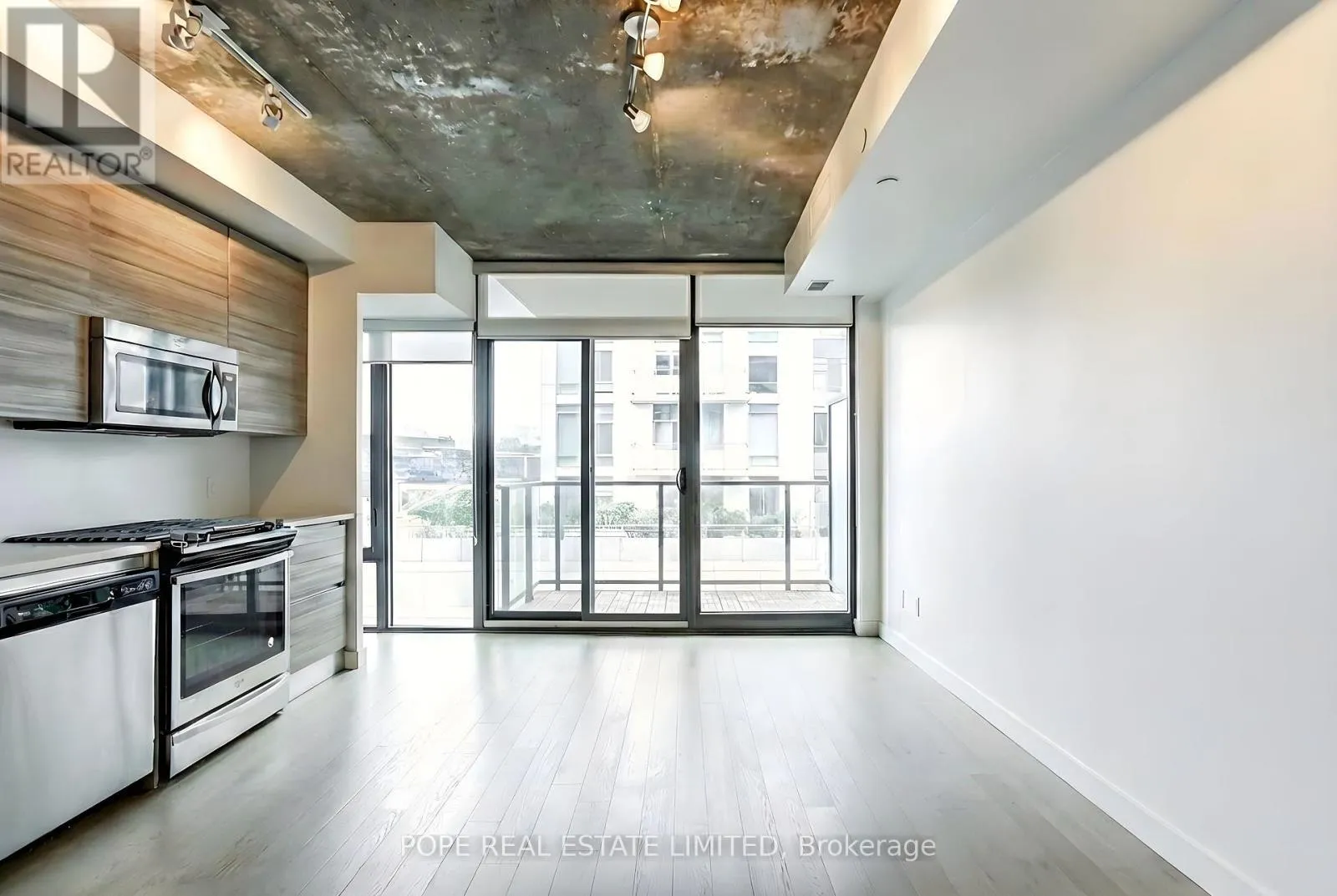 King St West & Bathurst St OneEleven Bathurst, completed by Harhay Developments in 2016, is a highly sought-after soft loft condominium ideally located in the heart of King West. Offering unbeatable urban convenience, the building boasts a Walk Score of 100, Transit Score of 100, and Bike Score of 99.Perfectly positioned at King and Bathurst, you're steps to TTC streetcars, some of the city's best restaurants and shops along King and Queen West, Farm Boy, Loblaws, Fort York, Trinity Bellwoods Park, and Stanley Park.This bright and spacious one-bedroom, one-bathroom suite offers approximately 505 sq. ft. of interior living space, plus a 58 sq. ft. northeast-facing balcony with a gas BBQ connection-ideal for outdoor dining and entertaining. The loft-inspired interior features 9-foot exposed concrete ceilings, concrete feature walls, and hardwood flooring throughout.The modern designer kitchen is beautifully finished with Italian millwork, quartz countertops, a tiled backsplash, and stainless steel appliances, including a gas range. The spa-like bathroom includes a walk-in shower with a rain showerhead, creating a relaxing retreat.Residents enjoy excellent building amenities, including 24-hour security, an on-site management office, guest suites, media room, outdoor terrace, party room, and visitor parking. (id:27476)