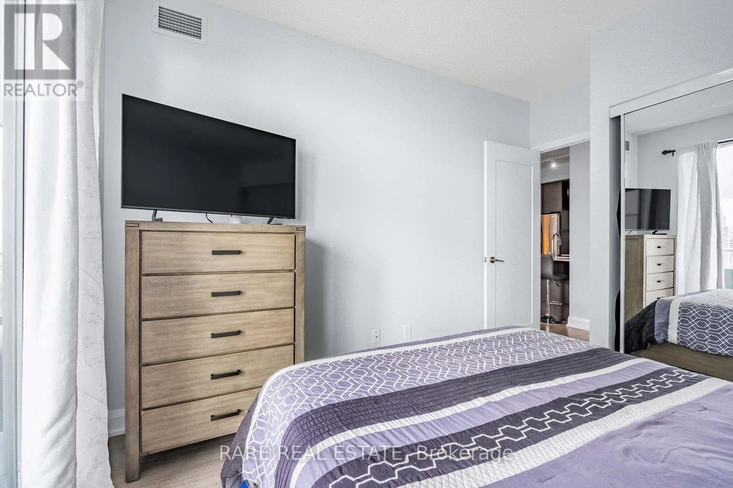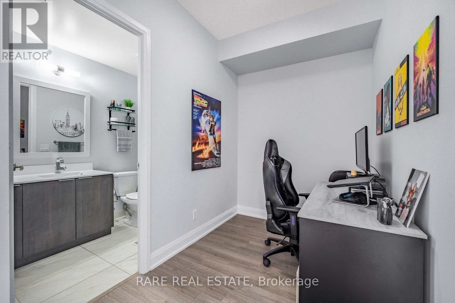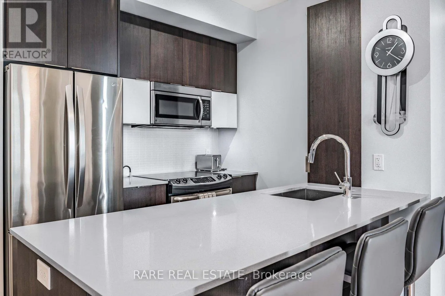 Cross Streets: Lakeshore & Parklawn. ** Directions: South of Lakeshore & East of Parklawn. Luxury Living at Lago at the Waterfront! Discover this stunning 1-bedroom + den condo offering 663 sq. ft. of modern elegance, paired with a spacious 105 sq. ft. balcony. This sun-filled unit features floor-to-ceiling windows, flooding the space with natural light and creating a warm, inviting ambiance.The open-concept layout showcases a sleek kitchen with quartz countertops, a breakfast bar, and stainless steel appliances, seamlessly connecting to the living and dining area. Step out onto the balcony from both the living room and primary bedroom to enjoy breathtaking water views and indoor-outdoor living. This condo includes the convenience of an owned parking spot and locker. Lago at the Waterfront is renowned for its exceptional amenities, including: An indoor pool, hot tub, and sauna for relaxation. A state-of-the-art gym to maintain your active lifestyle. A theatre room for private screenings. An outdoor entertaining area with BBQ facilities. A convenient dog washing station. Ample visitor parking, stylish party room, guest suites, and a 24-hour concierge. Located in the vibrant Humber Bay Shores community, this is your opportunity to experience the ultimate in waterfront living. Don't miss out your dream lifestyle awaits at Lago at the Waterfront! (id:27476)