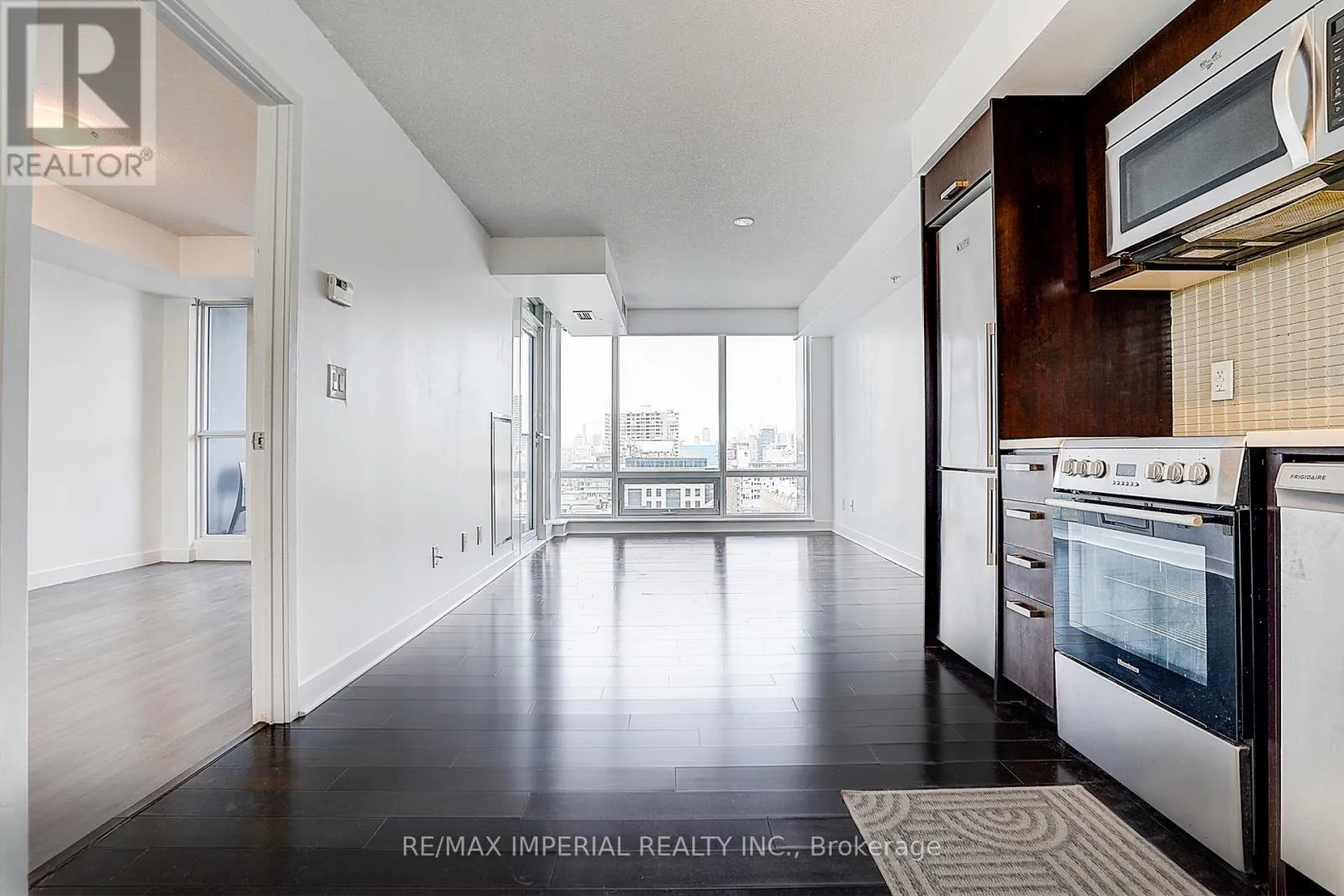 Cross Streets: Adelaide/John Street. ** Directions: SW of Adelaide/John Street. Newly painted and move-in ready, this bright northwest-facing one-bedroom suite features floor-to-ceiling windows with unobstructed city views and abundant natural light. The open-concept layout offers a spacious living and dining area, an extra-large laundry room with additional storage, and an additional space beside the entrance suitable for a closet or shoe storage (not shown on the attached floor plan). Enjoy a 40 sq. ft. balcony extending the living space. The bedroom includes an oversized closet. Located in the heart of downtown, steps to transit, dining, entertainment, and the Financial District. Full amenities including 24/7 concierge, gym, pool, sauna, party room, and Plenty of visitor parking One parking space included (id:27476)