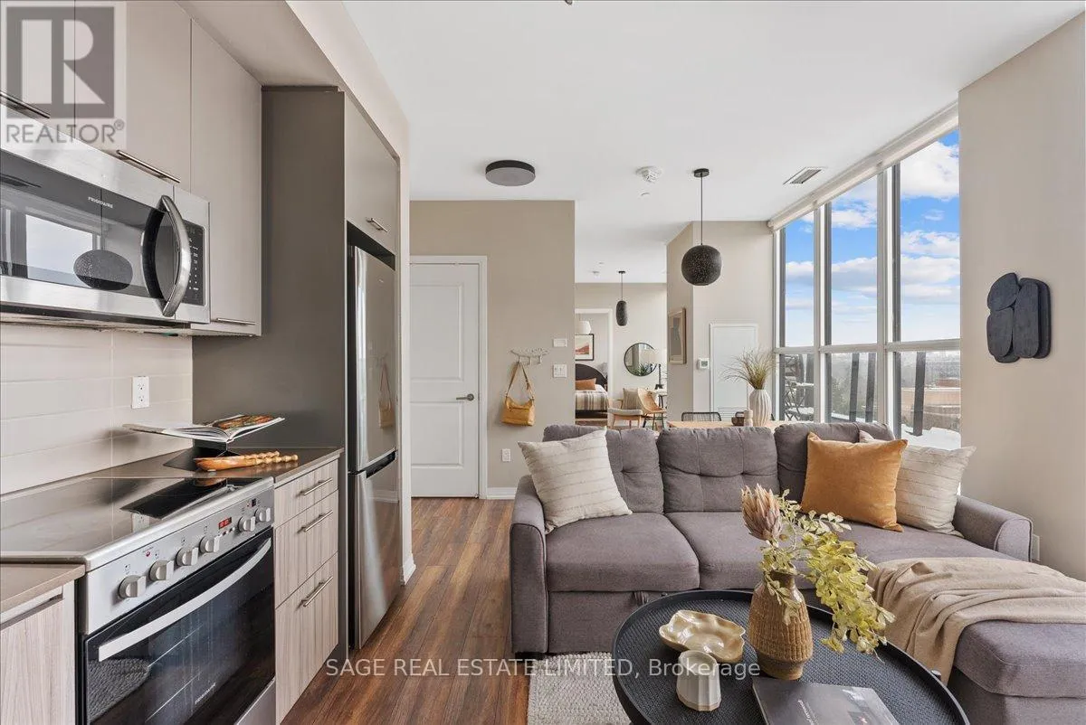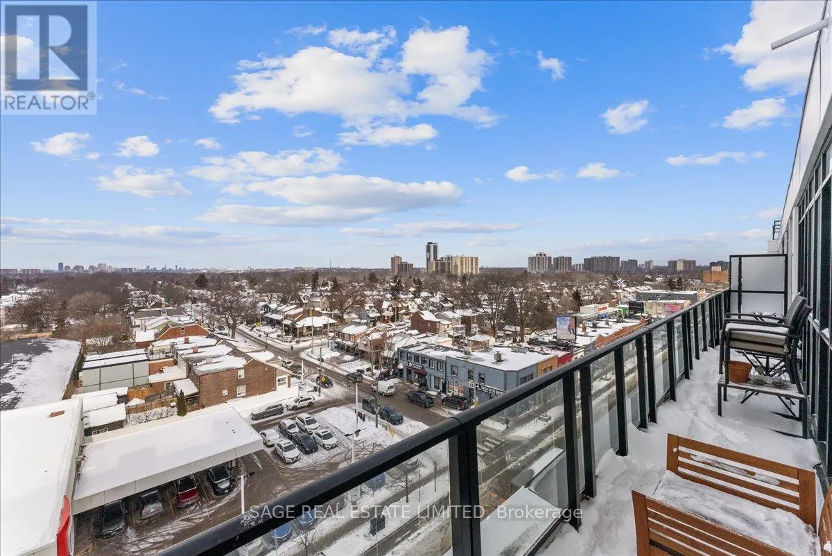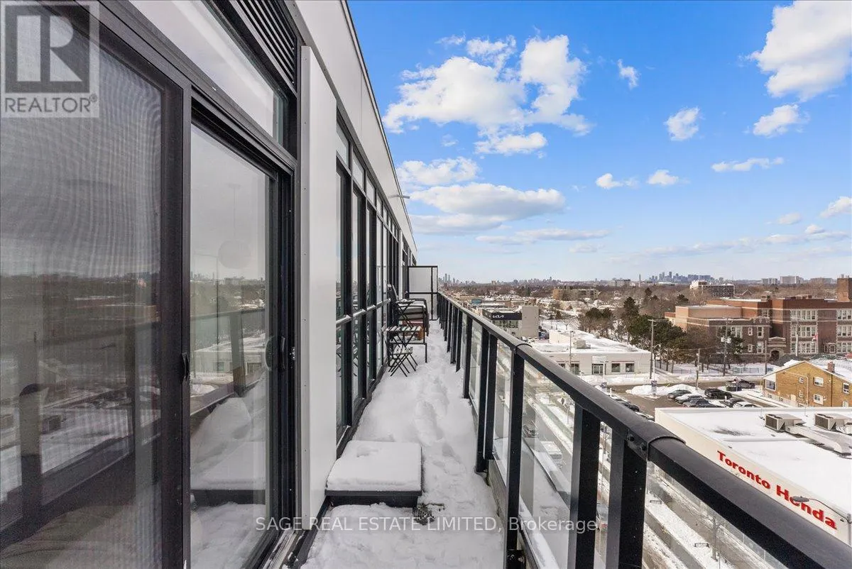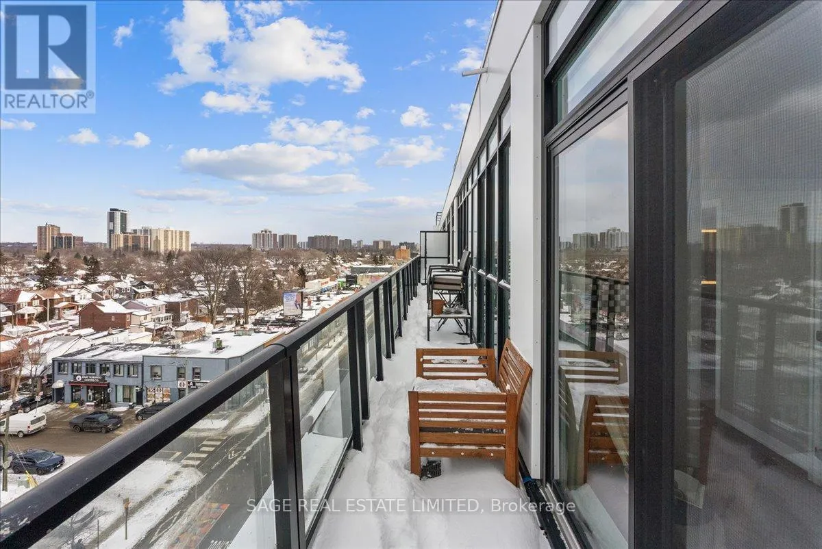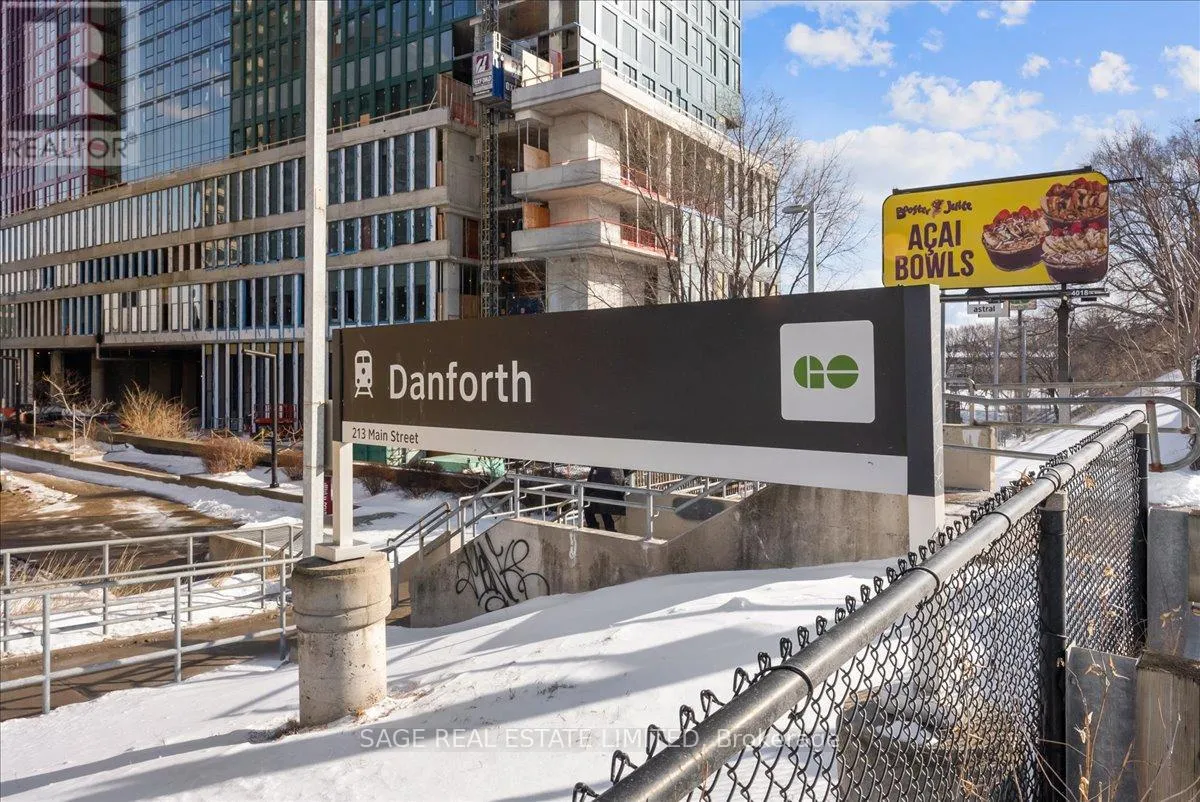 Danforth Ave & Woodbine Dreaming of Danforth.Suite 810 introduces a refreshingly wide one bedroom plus den sub-penthouse designed for the way you actually live. Floor-to-ceiling windows draw natural light deep into the space, while tall ceilings and an intuitive layout create a sense of openness and scale rarely found at this price point. Every room feels connected yet distinct, offering a home that lives larger and more effortlessly than expected.Inside, light oak engineered hardwood floors, recessed lighting, and contemporary finishes set a warm, modern tone throughout. Wall-to-wall windows frame sweeping north views, while two walk-outs lead to a private 174 sq. ft. terrace that stretches the full width of the suite, blurring the line between indoors and out. This becomes your daily backdrop: quiet mornings with coffee, relaxed dinners under open skies, evenings unwinding above the treetops.The bedroom is thoughtfully placed at the opposite end of the broad floor plan, creating a rare sense of separation and privacy from the main living space. Panoramic views and terrace access make it feel calm and expansive, paired with a modern, generously sized four-piece bath. A versatile den completes the layout, offering an inspiring space for remote work, creative projects, or simply carving out a corner of your own. Whether you're building a career, launching something new, or finding your rhythm, this home supports focus, flow, and flexibility.Step outside and you're instantly connected. Located directly on the subway line and a short walk to the GO Station, downtown is minutes away. Local cafés, neighbourhood favourites, parks, and everyday essentials surround you, offering the perfect balance of city access and community living.Whether you're buying your first place or planting roots in Toronto's vibrant east end, Suite 810 is more than a home. It's where your next chapter begins. (id:27476)