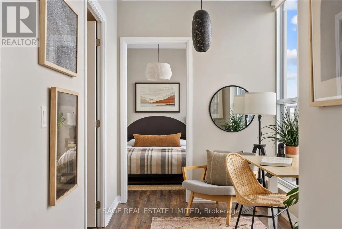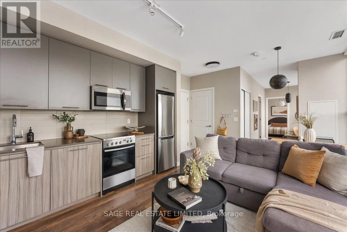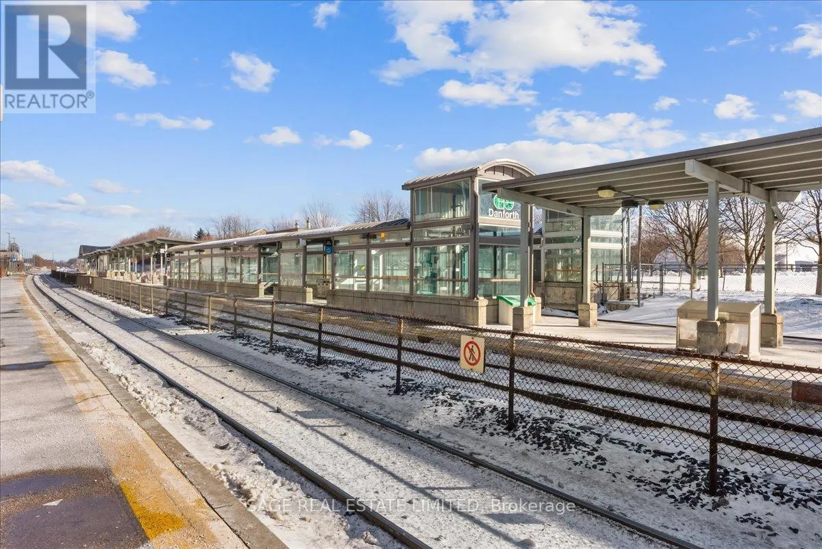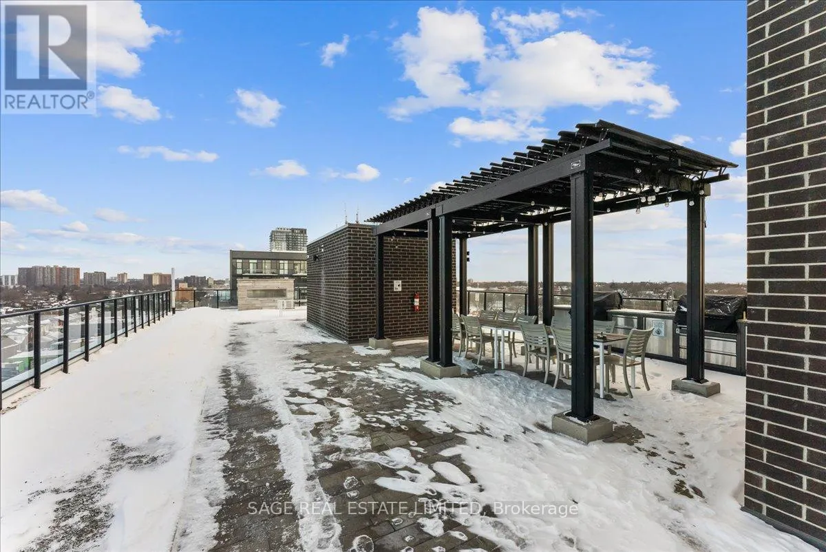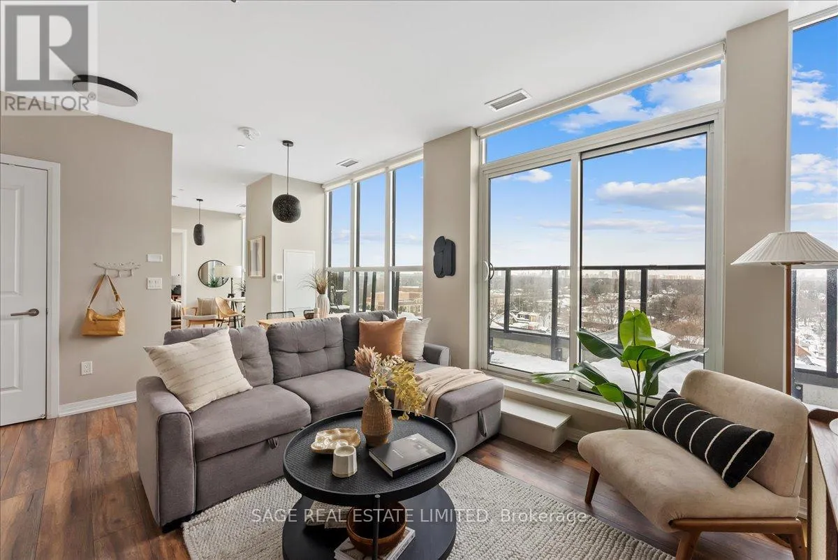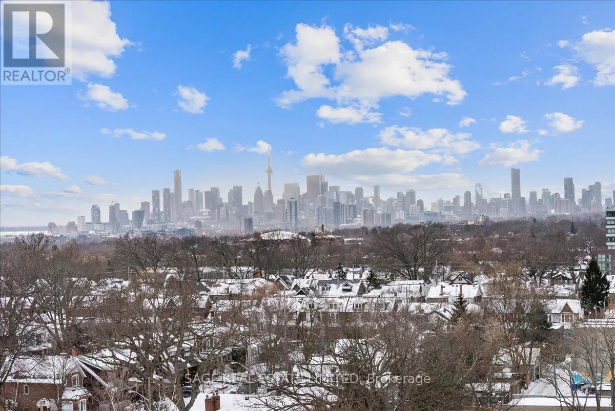 Danforth Ave & Woodbine Dreaming of Danforth.Suite 810 introduces a refreshingly wide one bedroom plus den sub-penthouse designed for the way you actually live. Floor-to-ceiling windows draw natural light deep into the space, while tall ceilings and an intuitive layout create a sense of openness and scale rarely found at this price point. Every room feels connected yet distinct, offering a home that lives larger and more effortlessly than expected.Inside, light oak engineered hardwood floors, recessed lighting, and contemporary finishes set a warm, modern tone throughout. Wall-to-wall windows frame sweeping north views, while two walk-outs lead to a private 174 sq. ft. terrace that stretches the full width of the suite, blurring the line between indoors and out. This becomes your daily backdrop: quiet mornings with coffee, relaxed dinners under open skies, evenings unwinding above the treetops.The bedroom is thoughtfully placed at the opposite end of the broad floor plan, creating a rare sense of separation and privacy from the main living space. Panoramic views and terrace access make it feel calm and expansive, paired with a modern, generously sized four-piece bath. A versatile den completes the layout, offering an inspiring space for remote work, creative projects, or simply carving out a corner of your own. Whether you're building a career, launching something new, or finding your rhythm, this home supports focus, flow, and flexibility.Step outside and you're instantly connected. Located directly on the subway line and a short walk to the GO Station, downtown is minutes away. Local cafés, neighbourhood favourites, parks, and everyday essentials surround you, offering the perfect balance of city access and community living.Whether you're buying your first place or planting roots in Toronto's vibrant east end, Suite 810 is more than a home. It's where your next chapter begins. (id:27476)
