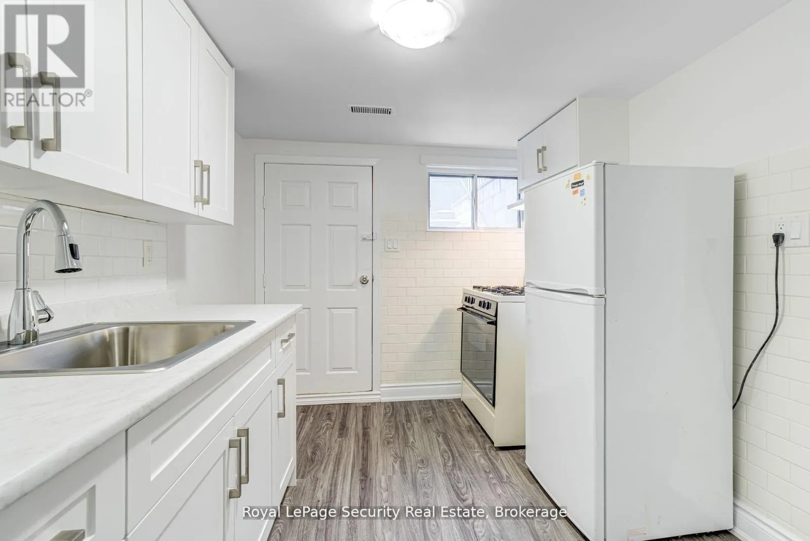 Dufferin & Bloor Newly renovated lower 1+1 bedroom unit in Dovercourt Village. Steps to Dovercourt Park, 5 minute walk to Dufferin TTC station and Bloor bike lanes. Brand new kitchen and bath. Freshly painted. Access to large shared backyard. Ensuite laundry included. Close to all amenities! **EXTRAS: Gas stove, range hood, Fridge, washer & dryer, laundry sink.** (id:27476)