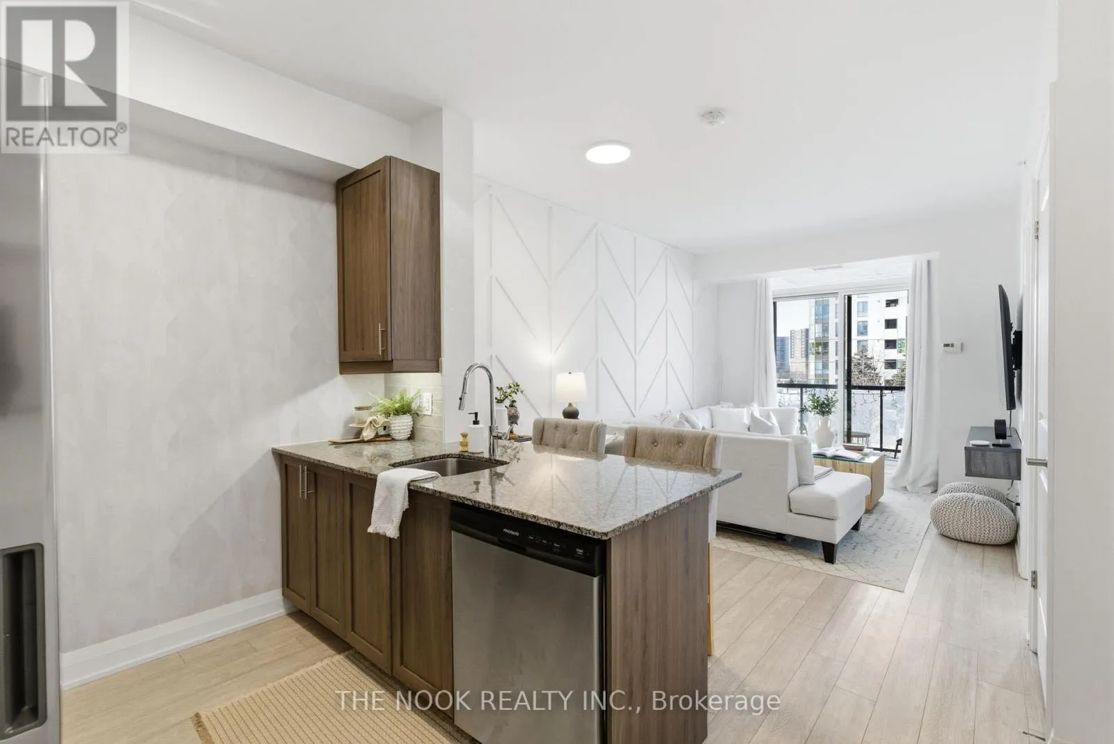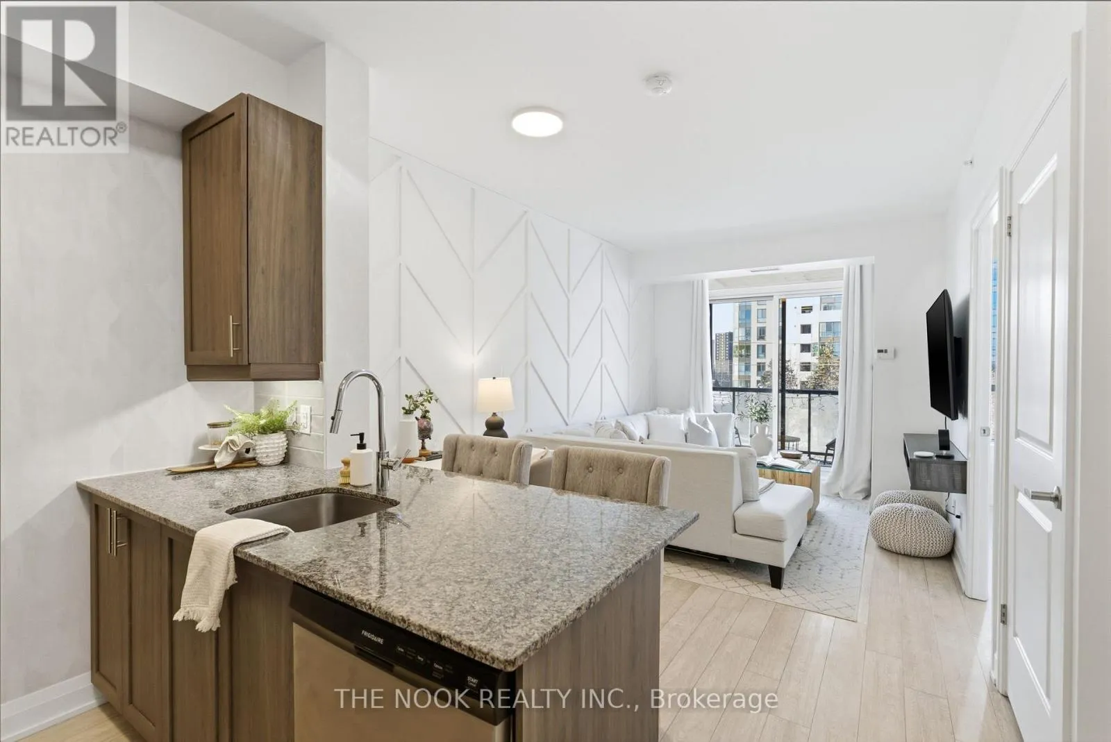 Markham Rd & Kingston Rd Guildwood Condos In Scarborough Village Deliver Boutique Living With A Lifestyle-First Feel. Walking Distance To The Waterfront, This Sixth-Floor Suite Is Meticulously Maintained And Completely Move-In Ready, Making It A Smart Choice For First-Time Buyers, Downsizers, Or Investors. A Rare Bonus For Condo Living, The Unit Includes 2 Underground Parking Spaces And A Locker. Getting Around The City Is Easy, With 24-Hour Transit Steps From The Building, Quick Access To Guildwood GO Station, And A Direct Route Downtown In Approximately 30 Mins. The University Of Toronto Scarborough Is Under 10 Minutes Away, And Everyday Essentials Are All Close By, Including Grocery Stores, Restaurants, Parks, And The Bluffs! The Open-Concept Interior Has Been Freshly Painted And Finished With Luxury Vinyl Plank Flooring And Modern Lighting Throughout. The Kitchen Features Granite Countertops, Stainless Steel Appliances, And A Breakfast Bar That Works Just As Well For Morning Coffee As It Does For A Work-From-Home Setup. The Living Room Offers Space For An Office Nook And Is Anchored By A Bold Chevron Wainscoting Feature Wall That Adds Personality And Texture, With A Walkout To A Spacious Balcony. The Bedroom Is Well Sized With A Large Walk-In Closet, And The Four-Piece Bathroom Completes The Layout. Wider Doorways And Lower Light Switches Also Make The Unit Suitable For Accessible Living. This Quiet Building Offers Concierge Service, A Gym, Newly Renovated Party And Entertaining Room, Games Room, And An Impressive Rooftop Terrace. A Standout Condo In A Location That Continues To Attract Attention For All The Right Reasons. (id:27476)