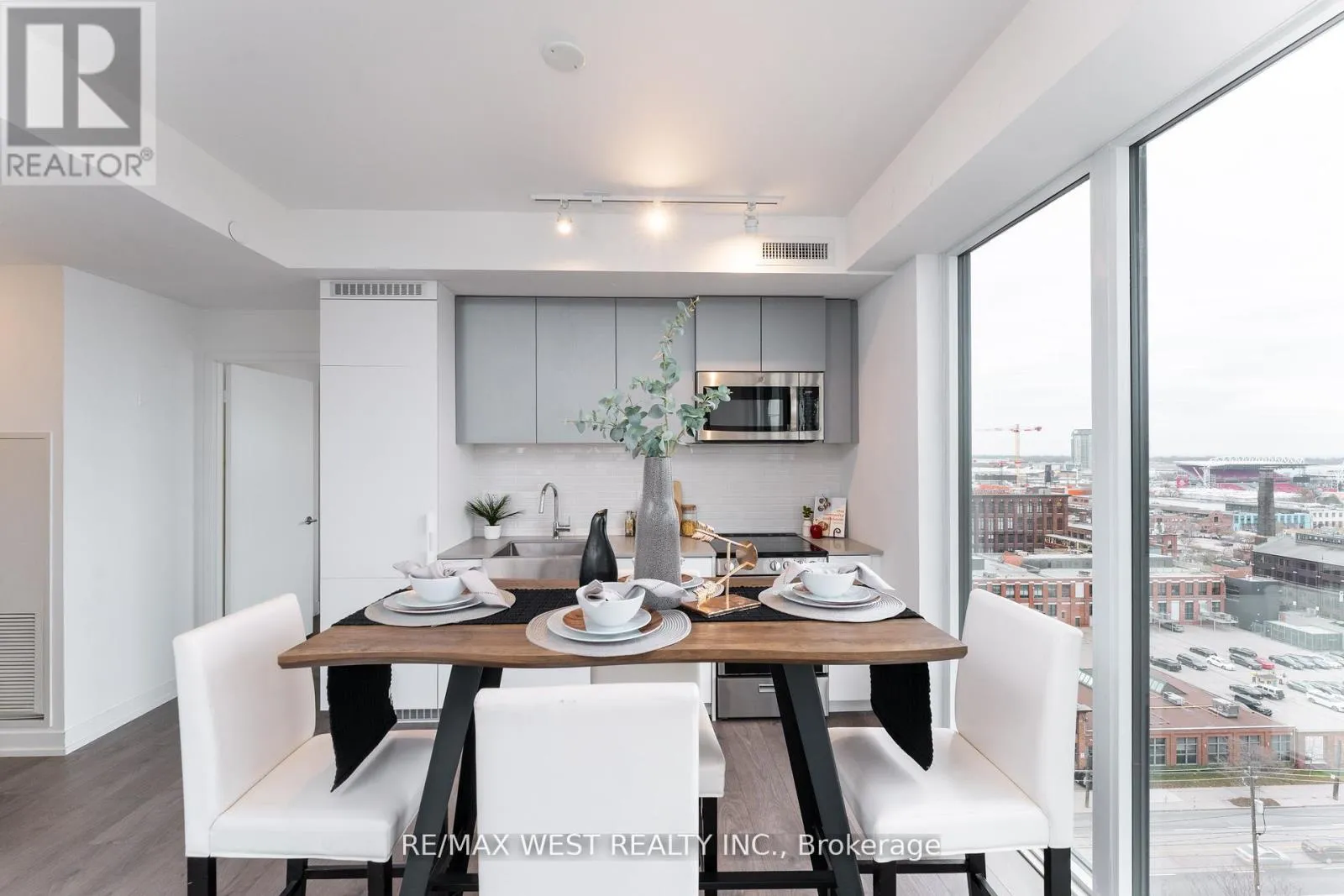 King & Dufferin Brand New XO Condo! Stunning 2-bedroom, 2-bath suite featuring an exceptional 640+ sq.ft. private terrace with unobstructed, breathtaking lake and skyline views of Etobicoke and Mississauga. The primary bedroom offers a 4-piece ensuite, walk-in closet, and direct views of the lake. The open-concept kitchen, living, dining, and tamily areas showcase continuous panoramic views, creating a bright and captivating space ideal for both everyday living and entertaining. The second bedroom also enjoys a beautiful skyline outlook. This suite features 9 ft ceilings and a highly functional, contemporary layout.Building amenities include: 24-hour concierge, fitness centre, outdoor terraces, pet spa, and more. Conveniently located with TTC at your doorstep, and just steps to King Street shops and restaurants, GO Station, CNE, Liberty Village, nightlife, the Financial District, and universities. (id:27476)