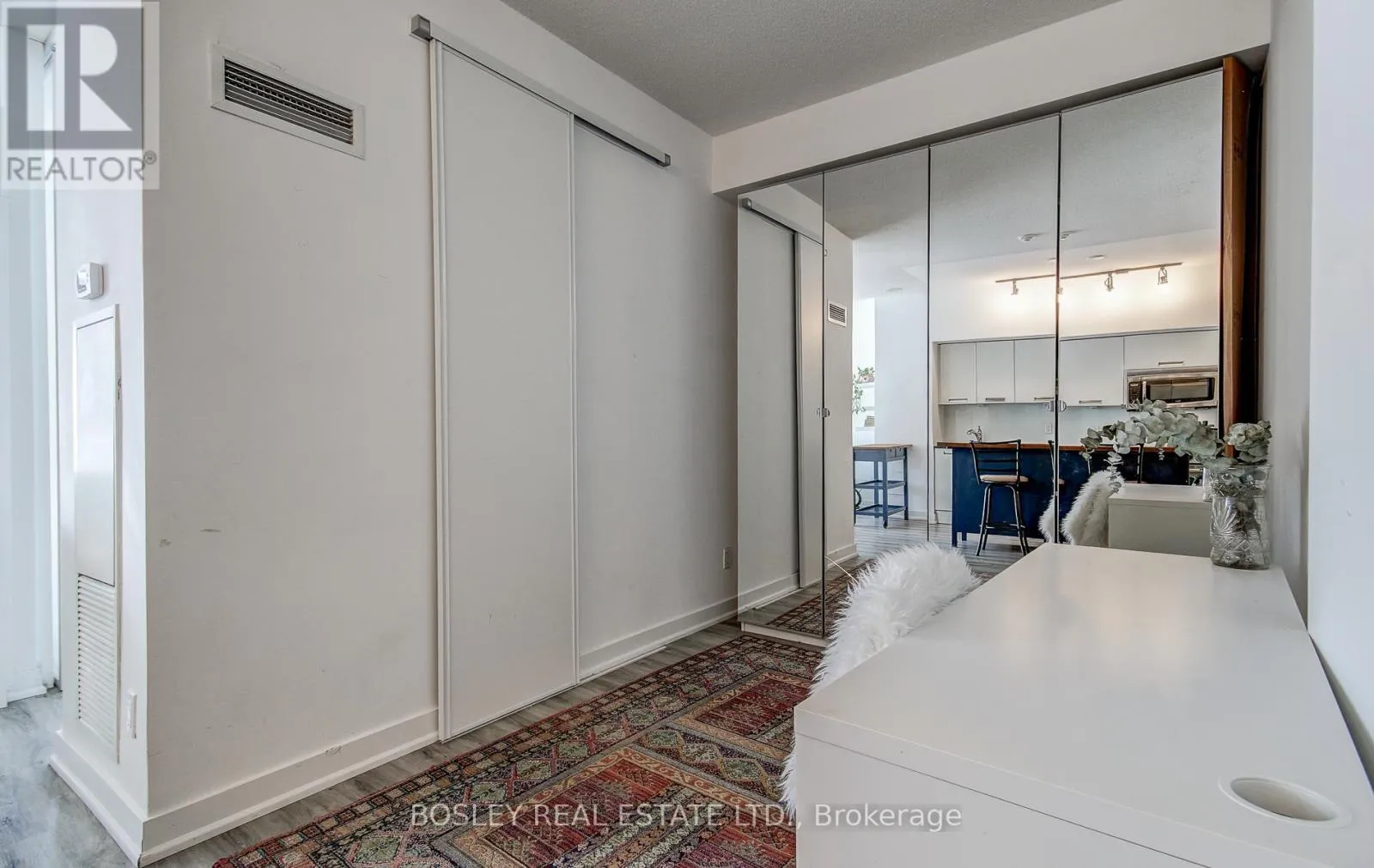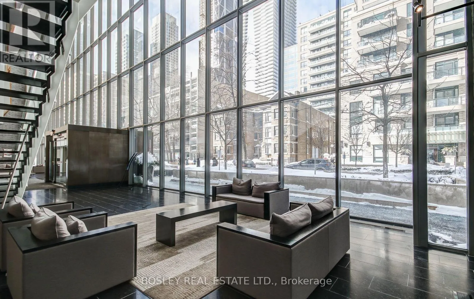 Yonge & Bloor Bright and well-maintained 1+1 bedroom condo on the 6th floor with unobstructed west-facing views, tons of natural light, and a large balcony spanning the width of the unit overlooking the pool. Functional layout with a separate den ideal for a home office or nursery, making this an excellent starter home for couples or those starting a family. Recent updates include new retractable roller blinds, new piping under the kitchen sink, new dryer vent filter, new HVAC condensation sensor, and new thermostat for added comfort and efficiency. Well-managed, quiet building with 24-hour concierge, regular exterior security patrols, secure fob access to entrances, elevators and interior doors, parcel holding, and garbage/recycling on common rooms, outdoor BBQ and party area, guest suites, visitor parking and EV charging in the visitor area. Suite includes in-unit laundry, dishwasher, microwave, large-capacity fridge, parking space and storage locker. Unbeatable location close to Yonge & Bloor subway, Yorkville, shopping district, Longo's, No Frills, running trails and quick access to the Don Valley Parkway. No short-term rentals allowed, supporting a stable and community-focused environment. (id:27476)