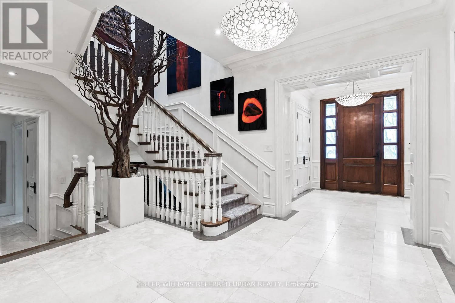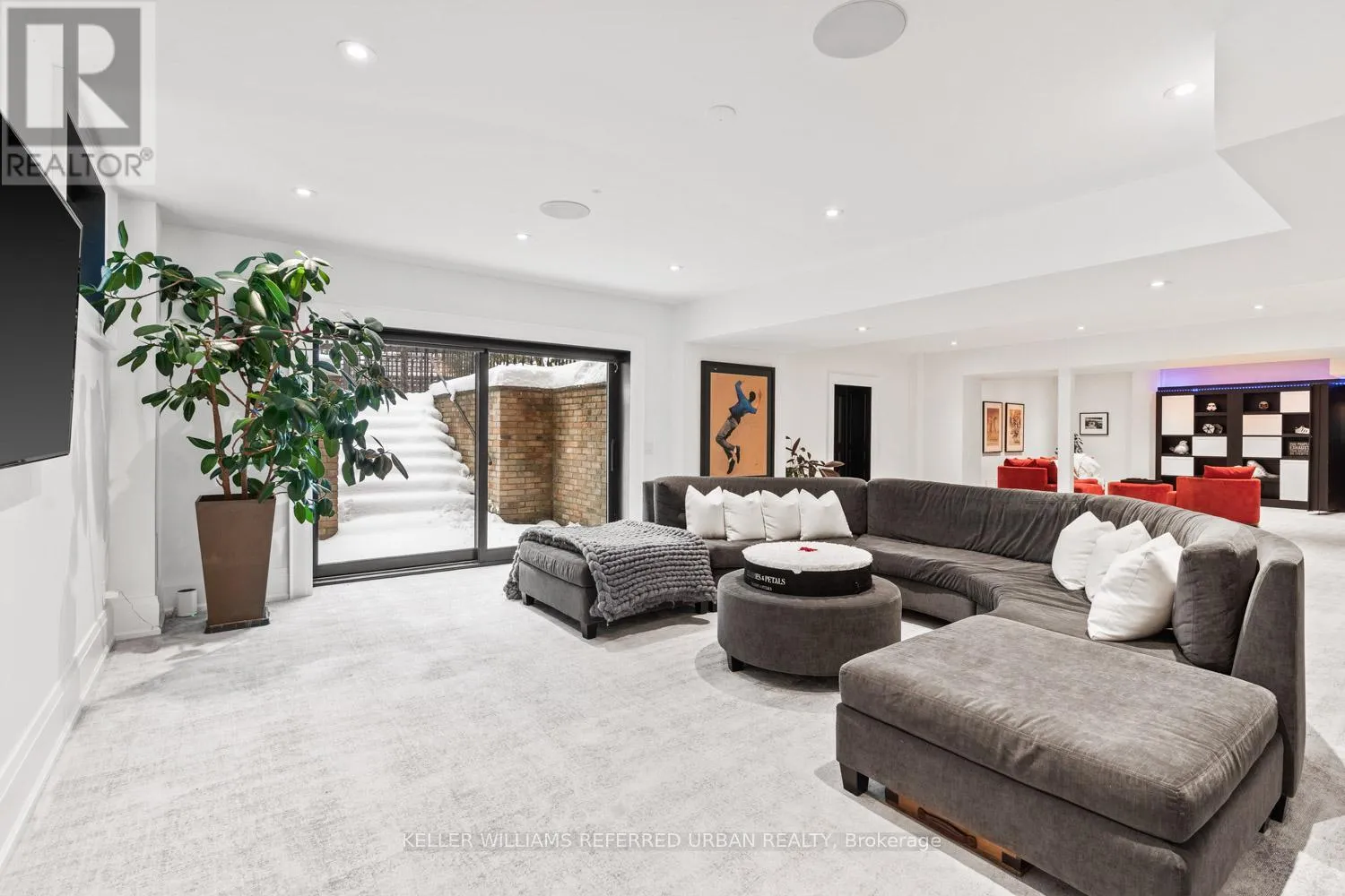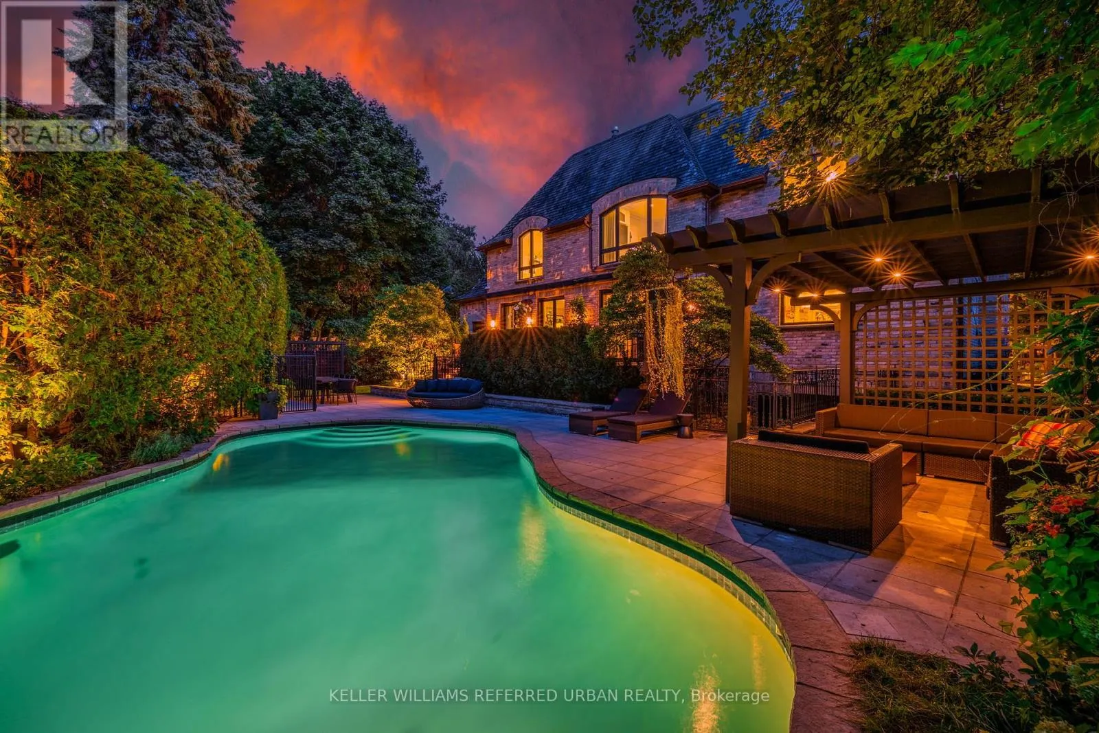 Cross Streets: Lawrence Ave E and Bayview Ave. ** Directions: Bayview to Lawrence Ave E to Milddenhall Rd to Bayview Wood. An exceptionally rare opportunity to acquire one of the largest and most distinguished residences in Lawrence Park, set on a coveted 82-foot-wide lot offering remarkable space, privacy, and presence. This Indiana limestone and reclaimed brick estate features a heated circular driveway, landscape lighting, and a three-car tandem garage with built-in cabinetry. Offering nearly 9,000 sq. ft. of total finished living space, the home delivers an outstanding, family-friendly layout with 5+2 generously sized bedrooms. The upper level includes a family lounge ideal as a children's study or additional office, while each bedroom enjoys its own ensuite with radiant in-floor heating. Inside, a grand foyer welcomes you with a formal living and dining room, a custom mahogany office, and an expansive rear living area complete with a chef's kitchen, servery, breakfast room, and a spacious family room with gas fireplace and built-in library, all seamlessly connected to the backyard. The private outdoor oasis is beautifully landscaped and centred around a heated saltwater pool with cascading stone waterfall, pergola with gas fire pit, irrigation system, and ambient lighting, perfect for both everyday enjoyment and entertaining. The true showstopper lies below a hidden speakeasy-style bar and private, fully soundproofed cinema, concealed behind custom millwork, designed for unforgettable movie nights, sophisticated soirées, and legendary kids' birthday parties. The lower level also includes a rec room, private gym, wine cellar with tasting area (awaiting customization), and two additional bedrooms ideal for guests or in-laws. Steps to Toronto French School, Cheltenham Park, and the Granite Club, homes of this caliber in this exclusive Lawrence Park enclave are rarely offered. (id:27476)