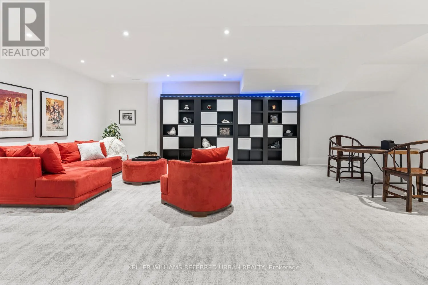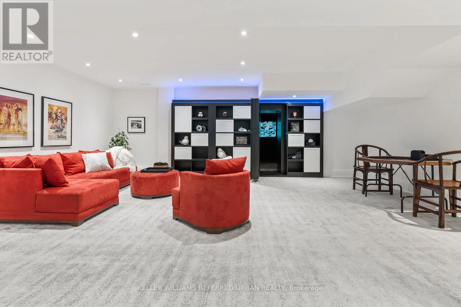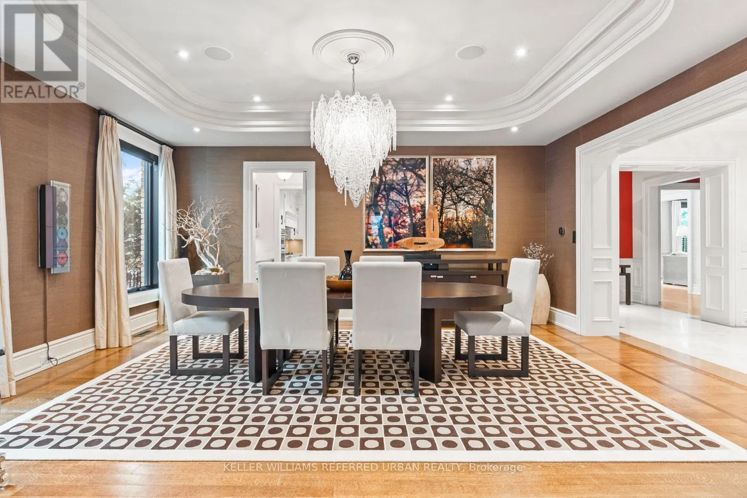 Cross Streets: Lawrence Ave E and Bayview Ave. ** Directions: Bayview to Lawrence Ave E to Milddenhall Rd to Bayview Wood. An exceptionally rare opportunity to acquire one of the largest and most distinguished residences in Lawrence Park, set on a coveted 82-foot-wide lot offering remarkable space, privacy, and presence. This Indiana limestone and reclaimed brick estate features a heated circular driveway, landscape lighting, and a three-car tandem garage with built-in cabinetry. Offering nearly 9,000 sq. ft. of total finished living space, the home delivers an outstanding, family-friendly layout with 5+2 generously sized bedrooms. The upper level includes a family lounge ideal as a children's study or additional office, while each bedroom enjoys its own ensuite with radiant in-floor heating. Inside, a grand foyer welcomes you with a formal living and dining room, a custom mahogany office, and an expansive rear living area complete with a chef's kitchen, servery, breakfast room, and a spacious family room with gas fireplace and built-in library, all seamlessly connected to the backyard. The private outdoor oasis is beautifully landscaped and centred around a heated saltwater pool with cascading stone waterfall, pergola with gas fire pit, irrigation system, and ambient lighting, perfect for both everyday enjoyment and entertaining. The true showstopper lies below a hidden speakeasy-style bar and private, fully soundproofed cinema, concealed behind custom millwork, designed for unforgettable movie nights, sophisticated soirées, and legendary kids' birthday parties. The lower level also includes a rec room, private gym, wine cellar with tasting area (awaiting customization), and two additional bedrooms ideal for guests or in-laws. Steps to Toronto French School, Cheltenham Park, and the Granite Club, homes of this caliber in this exclusive Lawrence Park enclave are rarely offered. (id:27476)