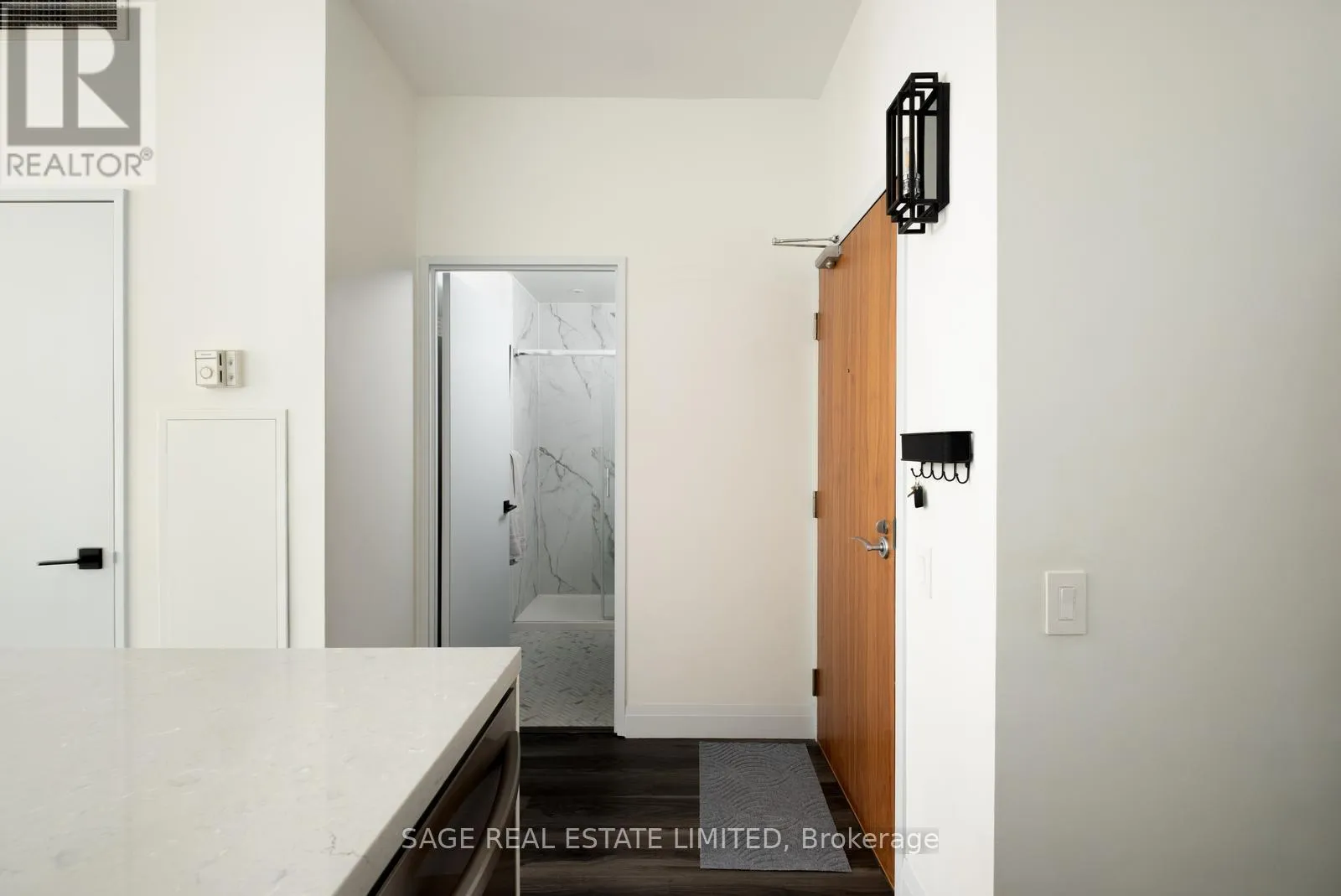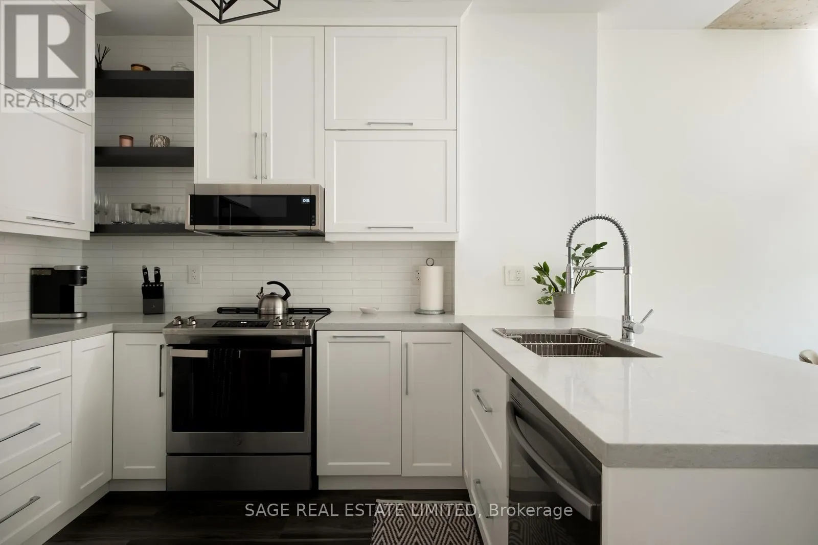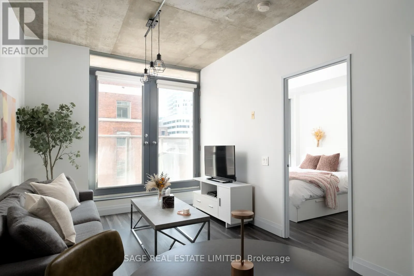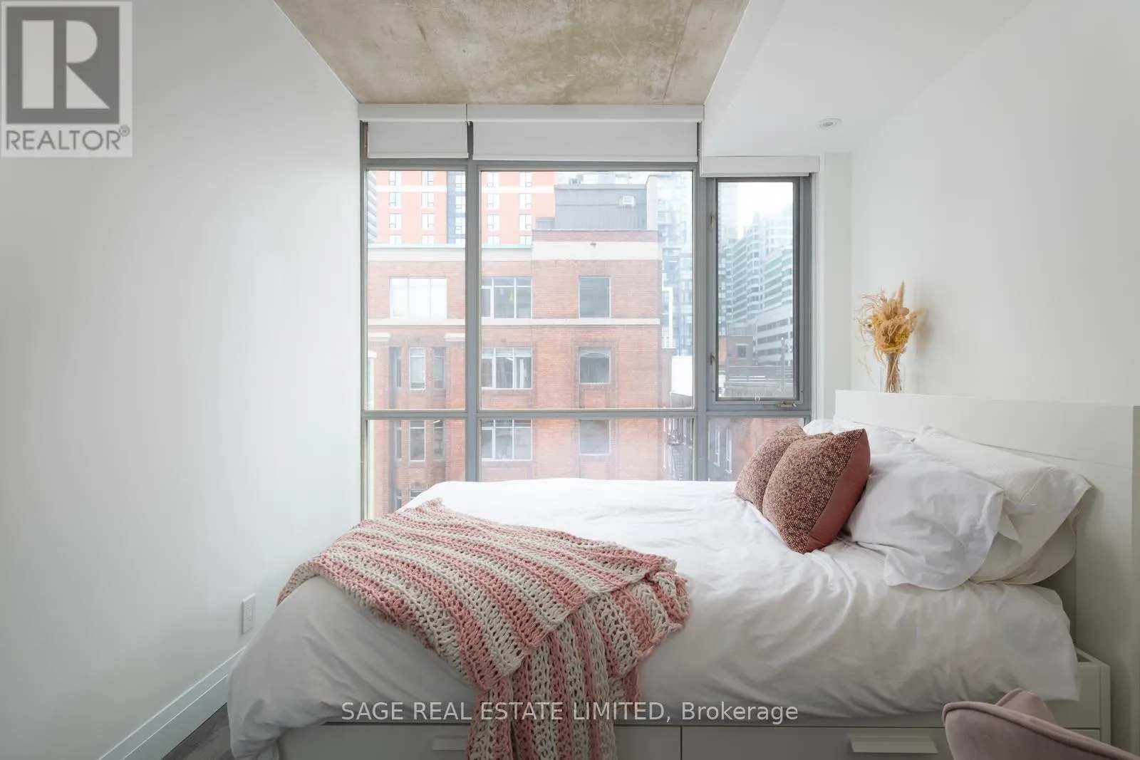 Cross Streets: King and Spadina. ** Directions: Google maps. Intimate, design-forward suite in the epicentre of Toronto's King West Village. Completely reimagined/renovated in 2020 with thoughtful upgrades throughout. Oversized chef's kitchen with extra counter space to entertain and exercise your culinary flair. Quality custom soft-close cabinetry is well-positioned and surrounded by quartz countertops and a durable subway tile backsplash. New appliances, including a full-sized fridge, to support your healthy habits. Dine in kitchen with space for 3 stools and a dining table! Efficient, wide and bright with a soaring 10-foot-high exposed concrete ceiling + plenty of natural light pouring into every room. The custom washroom offers plenty of storage, including herringbone-pattern tile, a shower with a waterfall rain head + sliding door, a soap niche, and a custom vanity with shelves for additional storage. Primary bedroom retreat with space for a work station + a custom-fitted walk-in closet featuring hanging rods, storage drawers, and thoughtful configuration (a real treat!!). A quiet retreat from the vibrant and bustling downtown core with all of your favourite food, coffee, transit, shopping and more. A perfect pied-a-terre or space to grow into rather than grow out of. (id:27476)