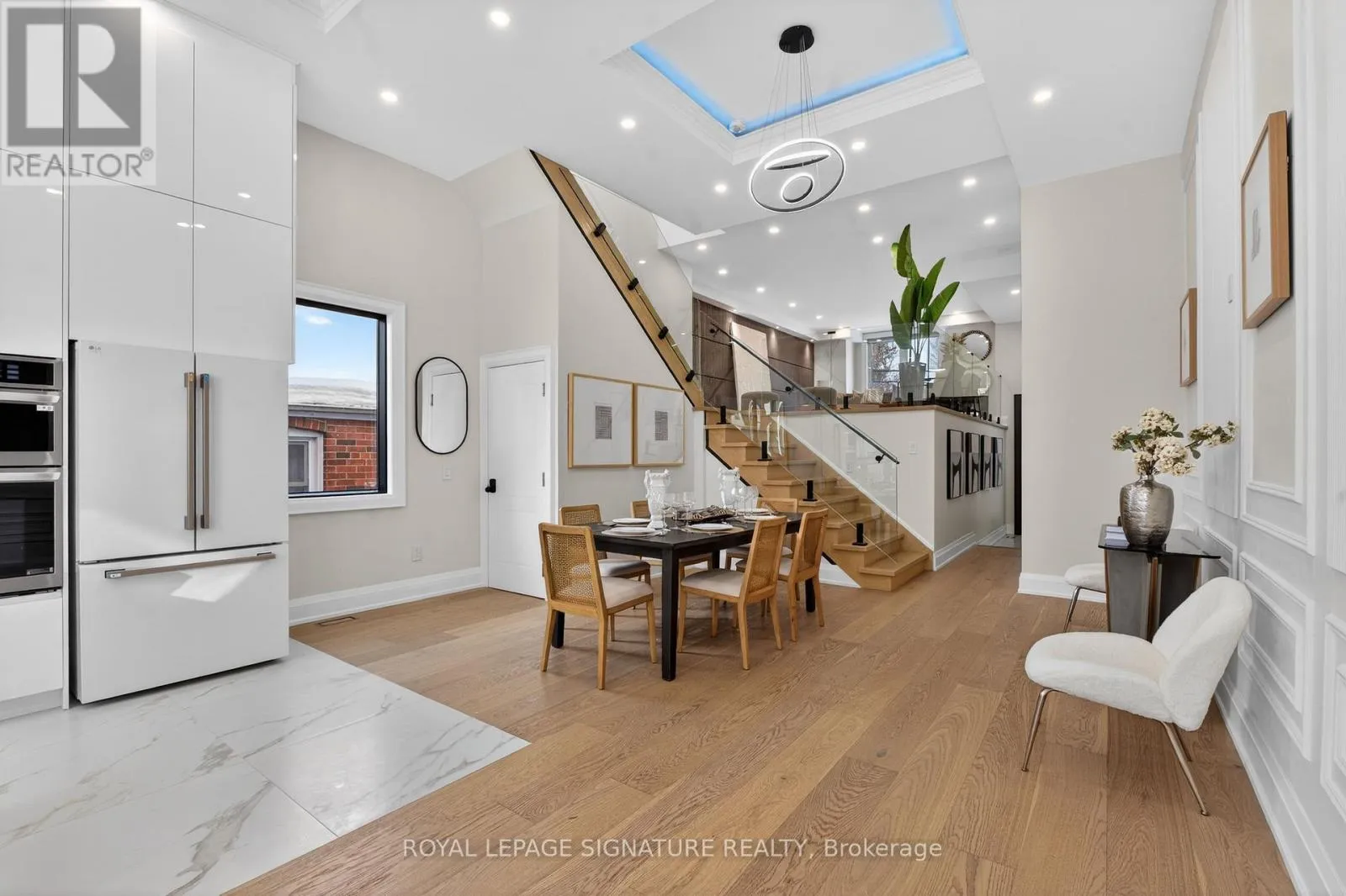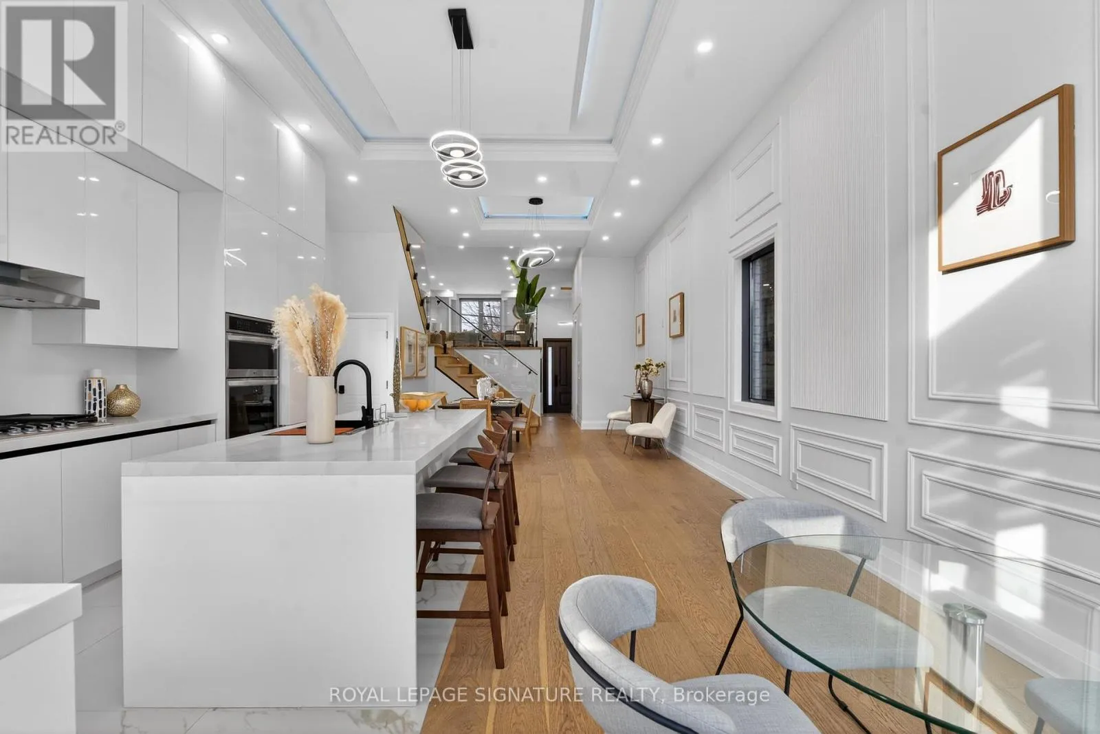 Victoria Park Ave. & St. Clair Ave. E Stunning custom-built 4-bedroom home with a separate legal 2-bedroom basement suite set on a rare 30x194ft lot sought-after O'Connor-Parkview neighbourhood! This gorgeous home offers an exceptional design, space, and versatility, including an outstanding income potential! The welcoming main floor foyer features porcelain flooring, large closet and soaring 12 ft ceilings that carry through the main floor accented by refined European-inspired contemporary fluted paneling. The open-concept main level is bathed in natural light from expansive windows and showcases gorgeous engineered hardwood flooring and wainscoting throughout. The large dining area is perfect for entertaining, while the show-stopping kitchen impresses with abundant storage, top-of-the-line appliances along with sleek quartz countertops and backsplash. Sliding glass doors extend the living space outdoors to an expansive deck and a fully fenced back yard. The spacious living room overlooks the main floor, creating an ideal setting for everyday living and family gatherings. Oak stairs with glass railings lead to the second level highlighted by a large skylight and convenient upper-floor laundry. The serene primary suite is a luxurious retreat featuring a private balcony, walk-in closet, and spa-like 7-piece ensuite with double vanity, glass shower with body sprays, and a soaker jacuzzi tub. Three additional spacious bedrooms offer generous closet space, abundant natural light, and direct access to bathrooms each with glass shower with body spray. The bright, legal basement apartment includes large above-grade windows, two bedrooms each with direct walkouts to a large patio, a full kitchen, laundry, and a 4-piece bath, ideal for rental income or extended family. Set on an exceptionally deep 194-foot lot, the backyard is a rare offering with tremendous future potential for a massive garden suite. This home is ideally located near TTC and GO Transit, walk to local shops, supermarket, parks and schools! (id:27476)